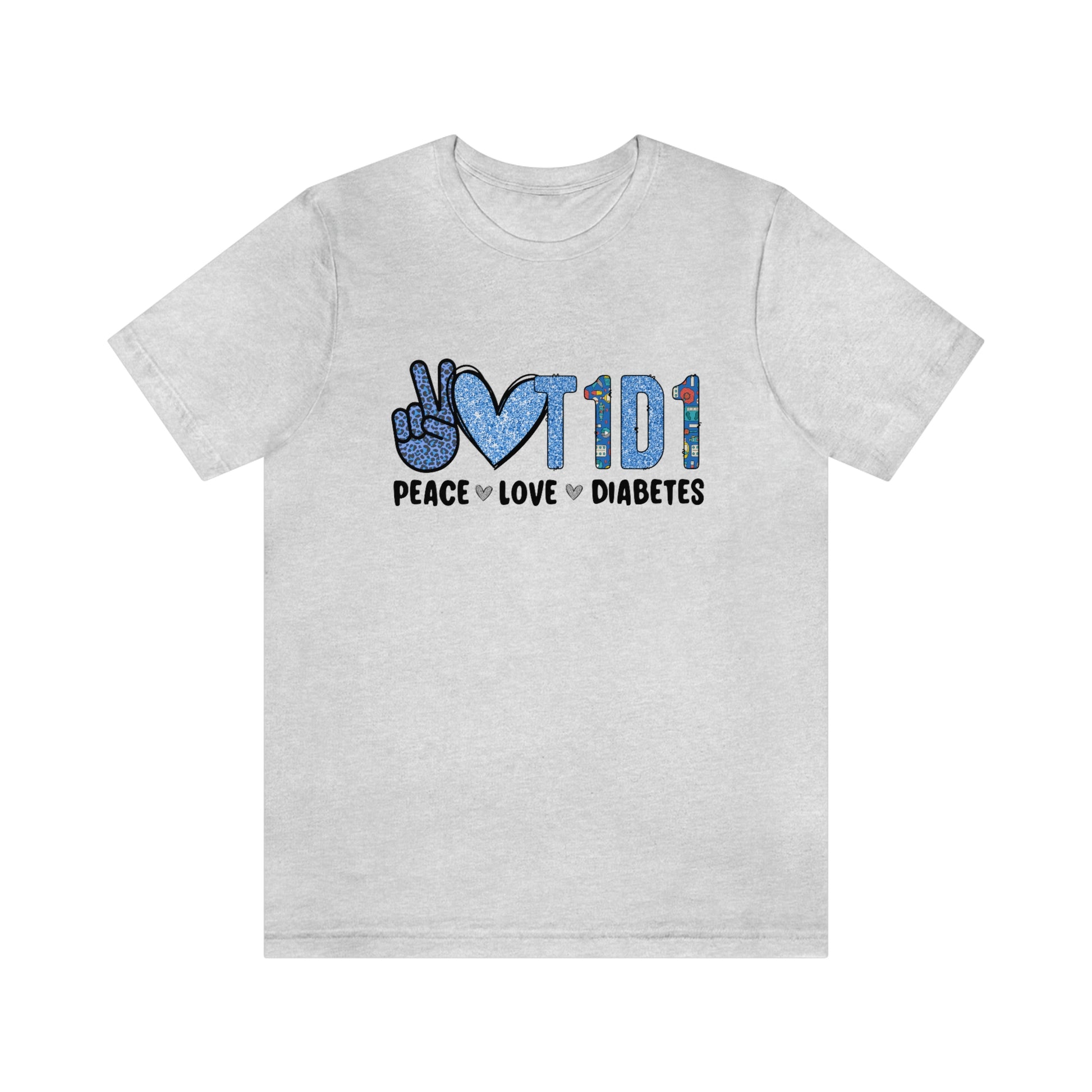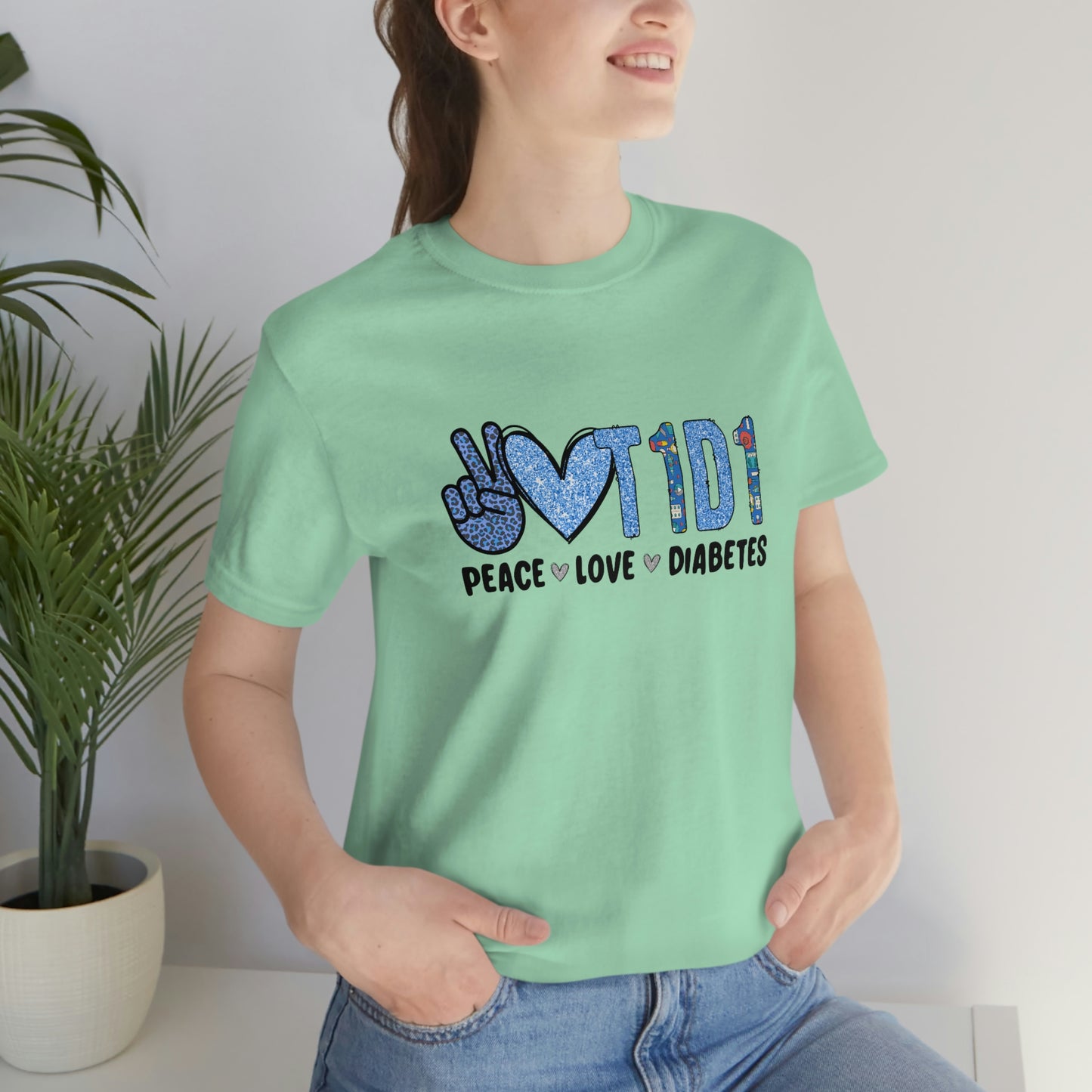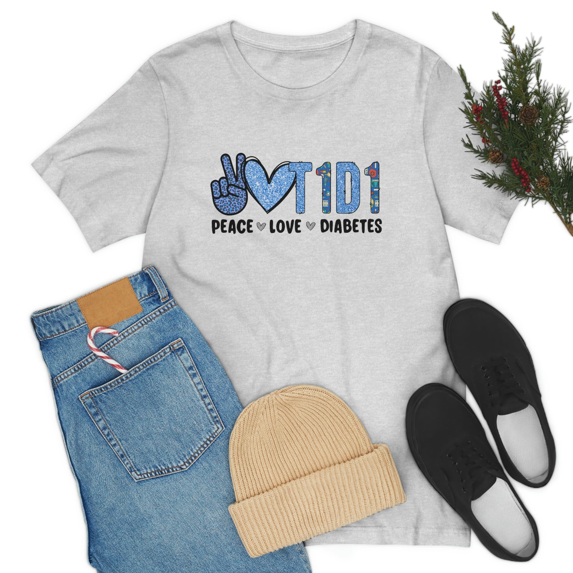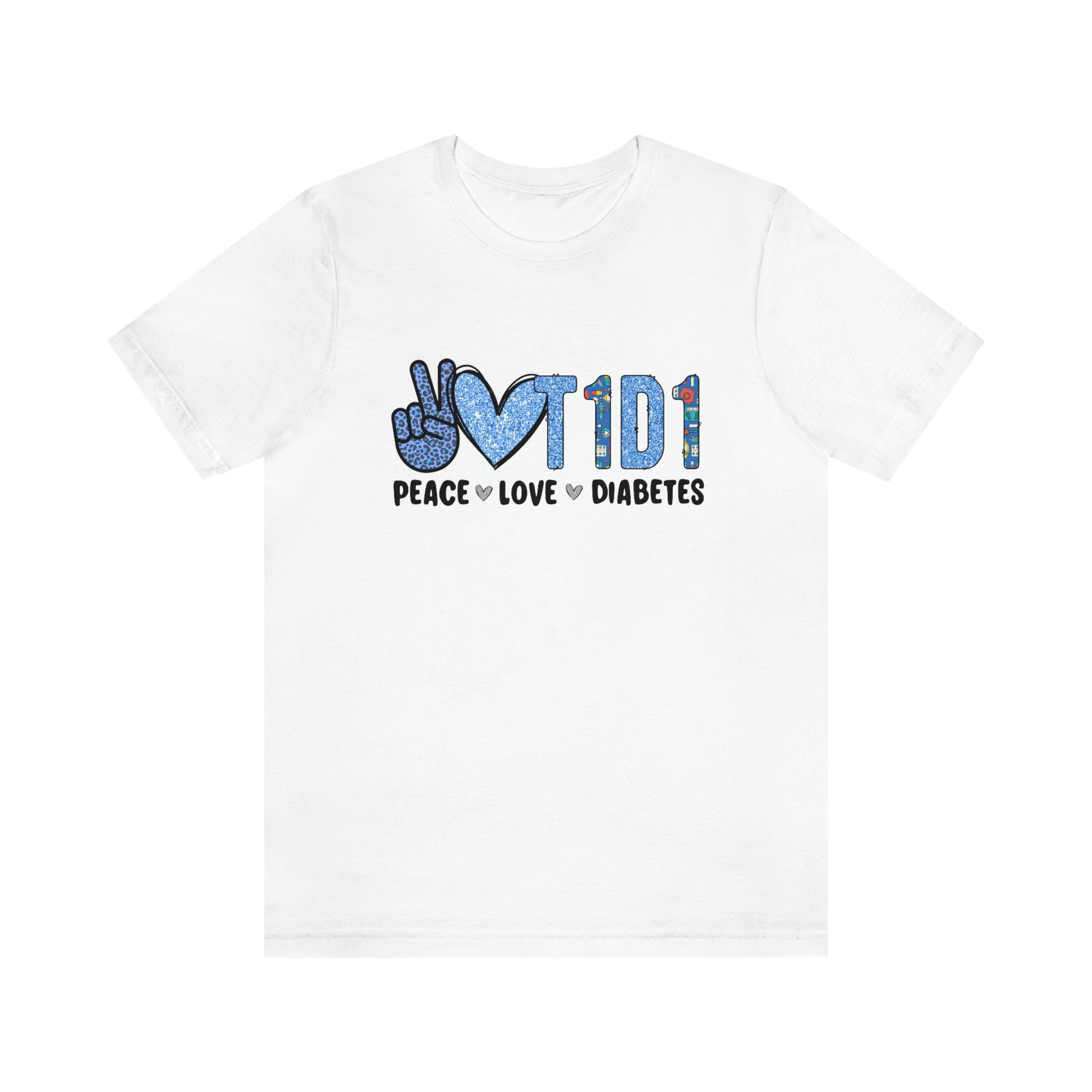 Peace Love T1D1 Diabetes Awareness Print Unisex Jersey Short Sleeve Tee