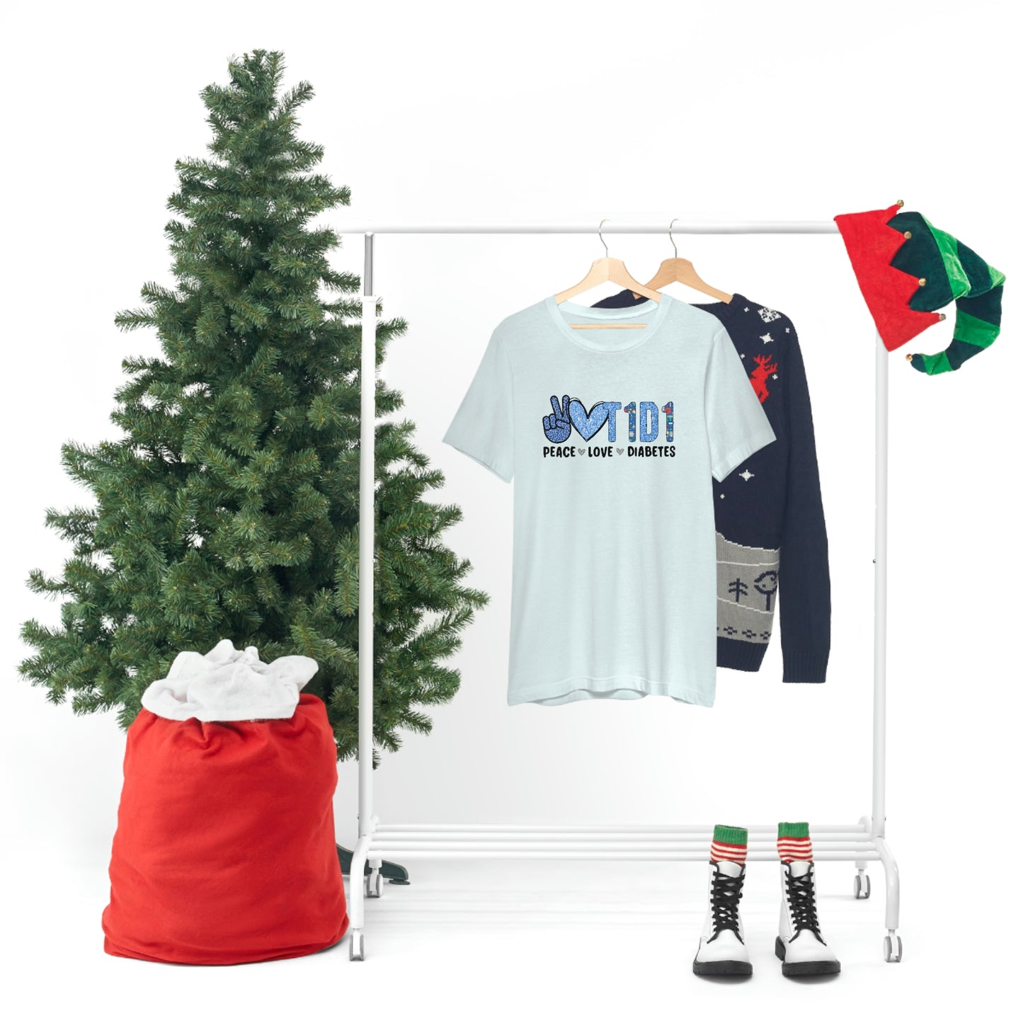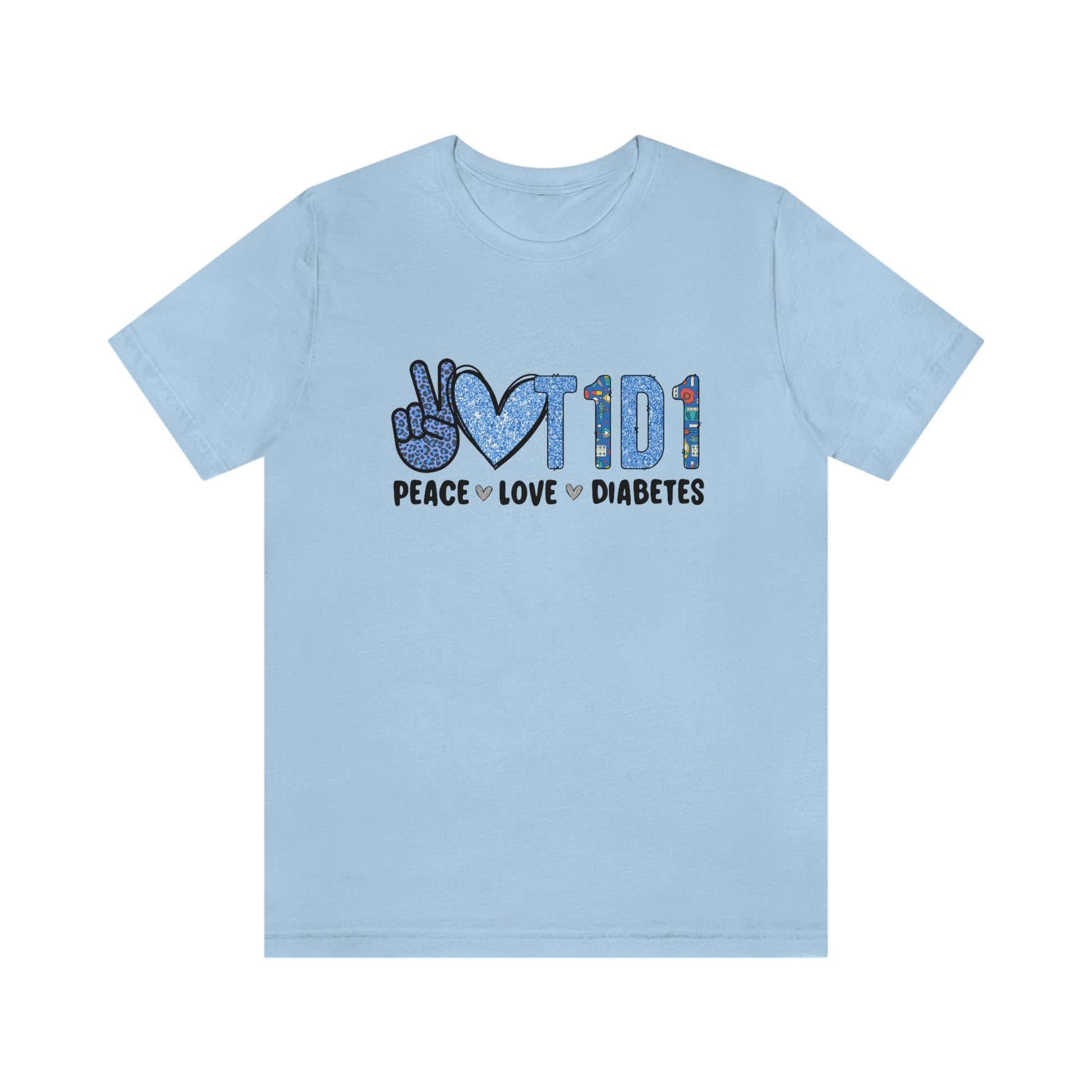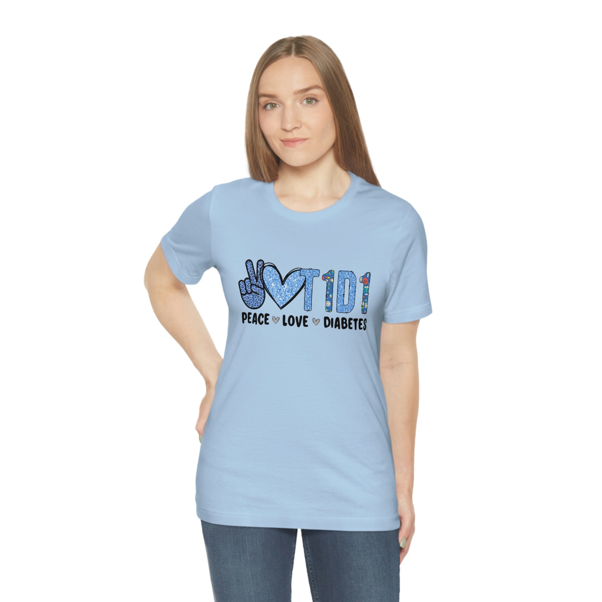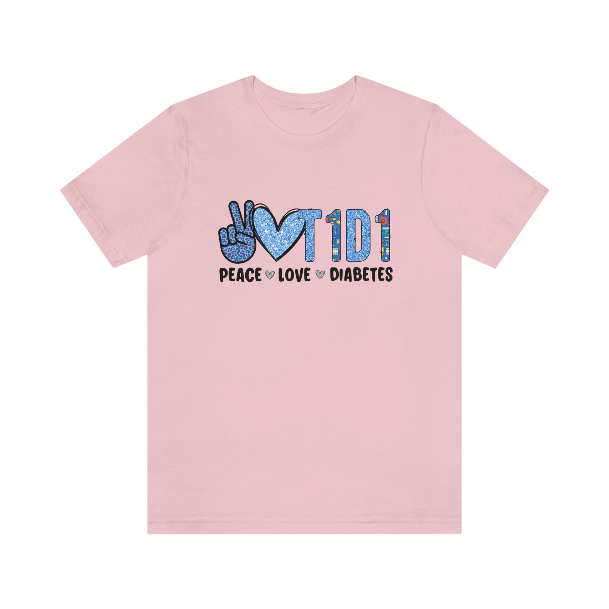 Peace Love T1D1 Diabetes Awareness Print Unisex Jersey Short Sleeve Tee