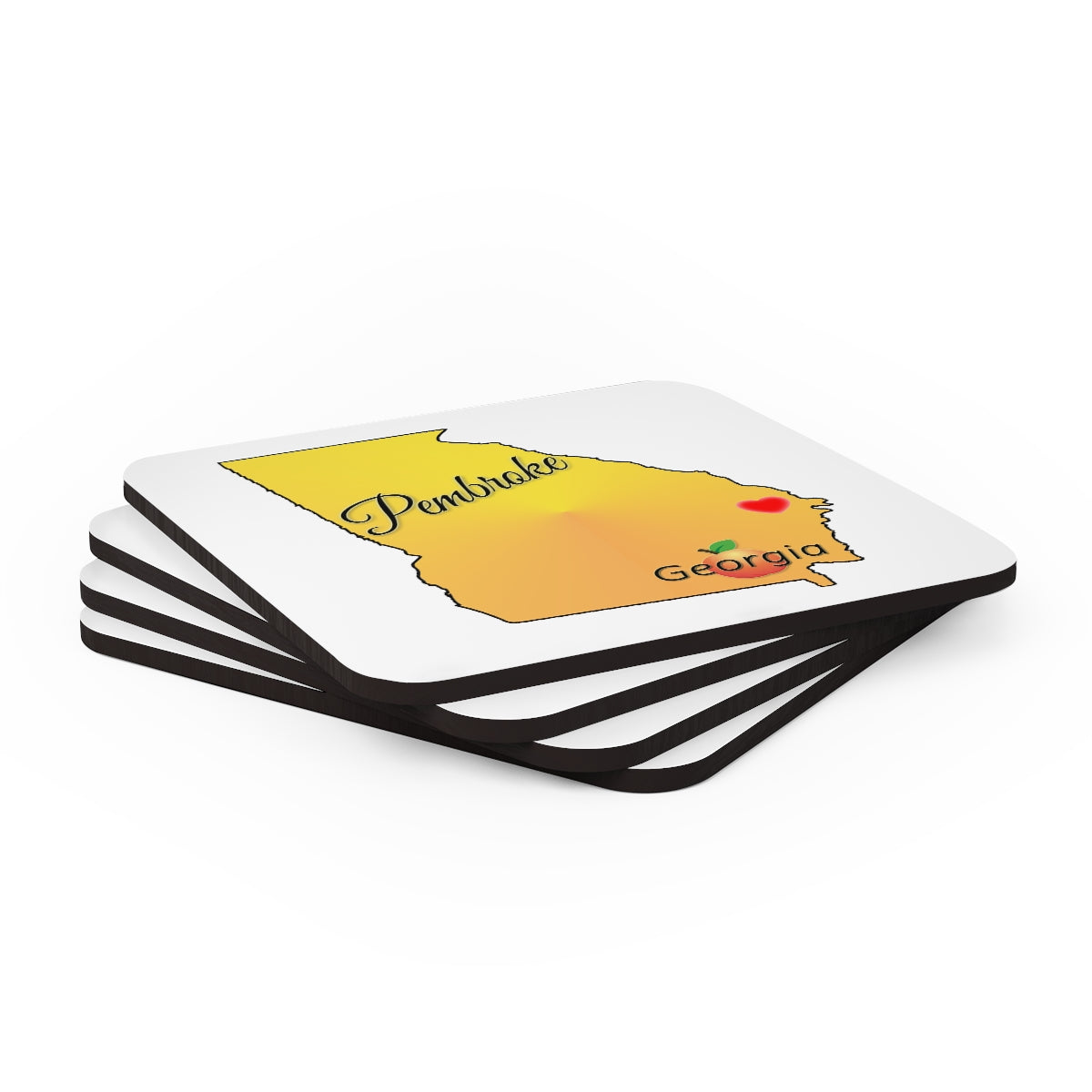 This coaster set comes with 4 coasters in one size.  They are made with a high-gloss top and feature a cork back to prevent sliding.