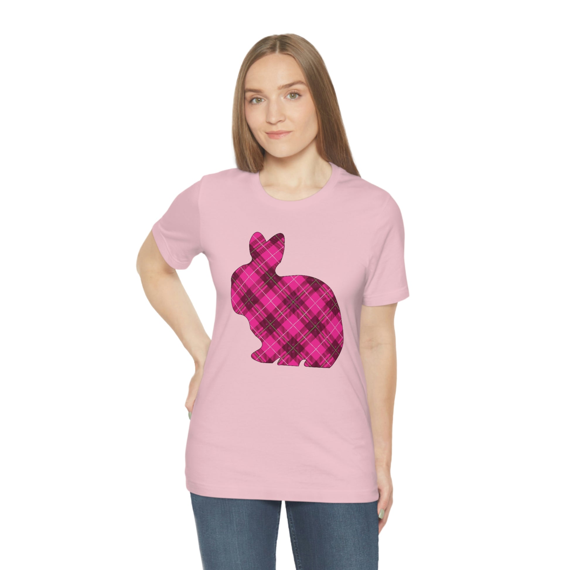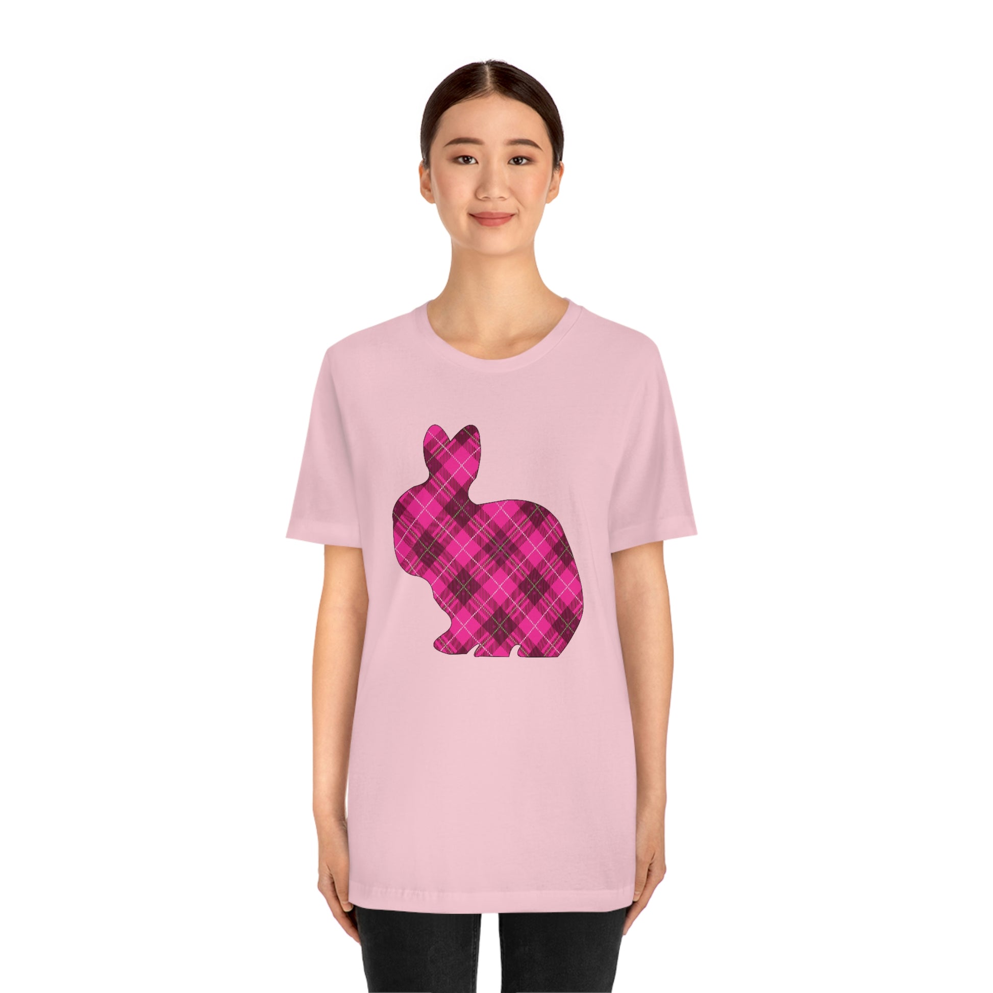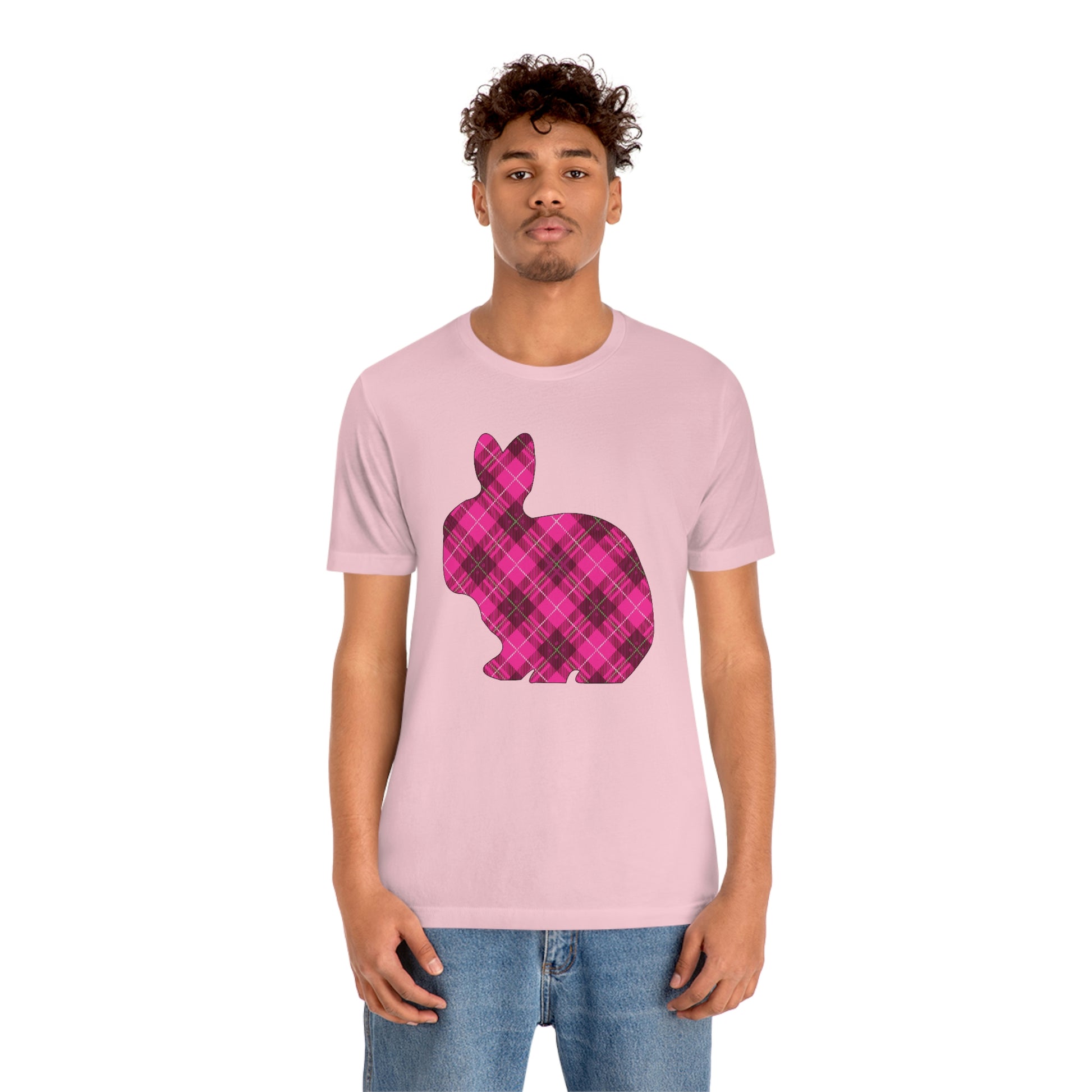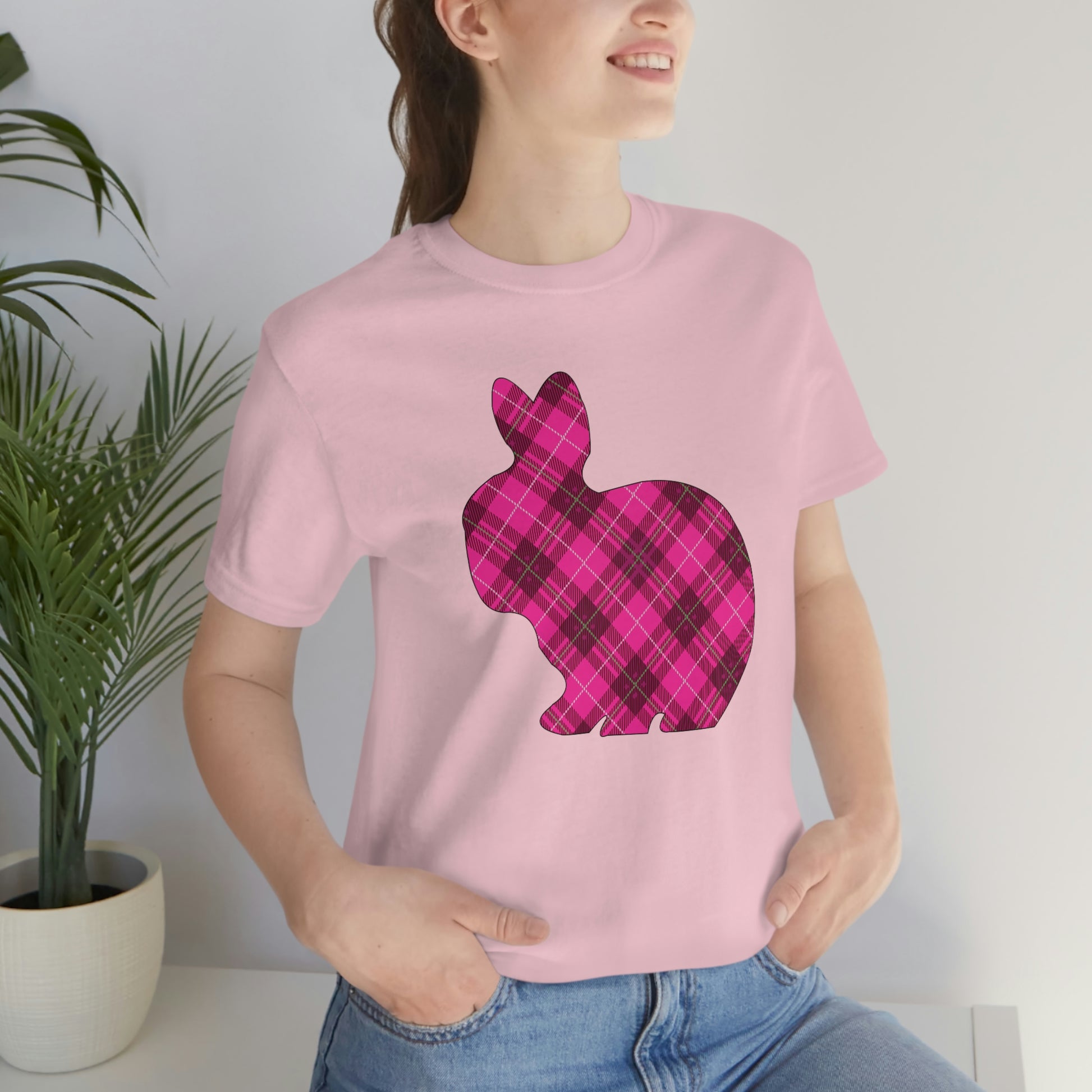 Pink Plaid Bunny Spring Easter Unisex Jersey Short Sleeve Tee