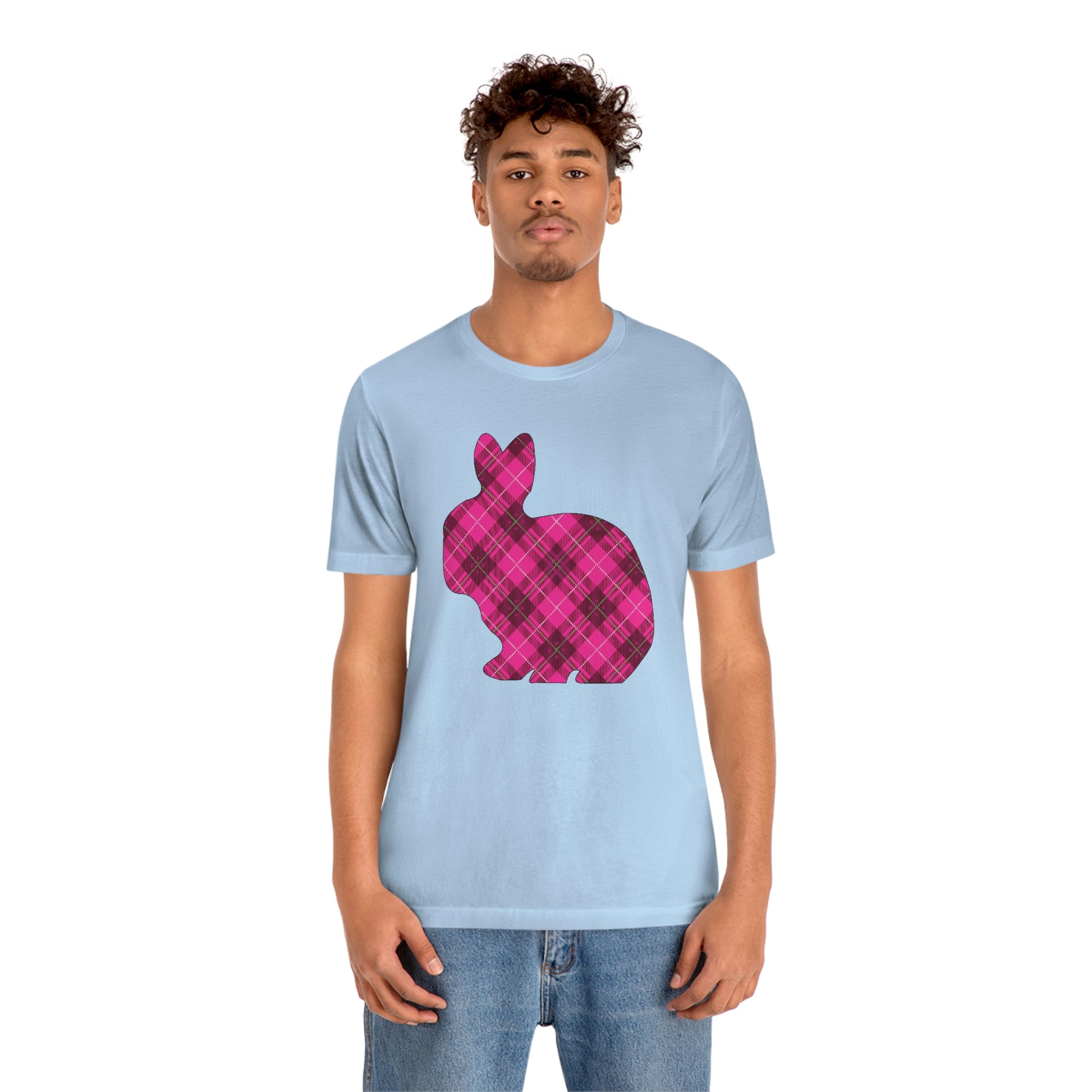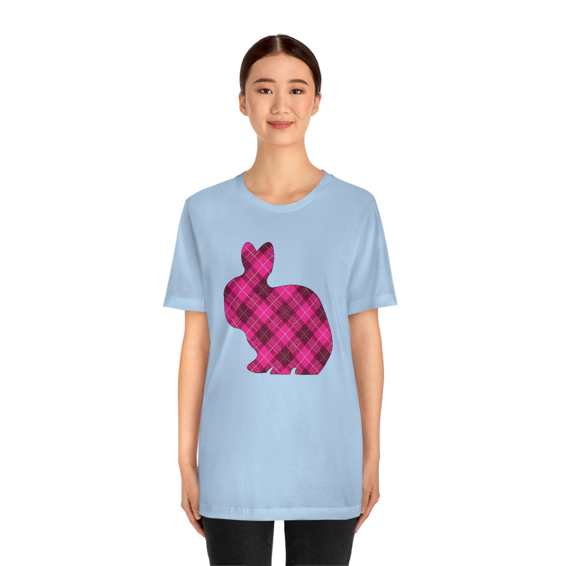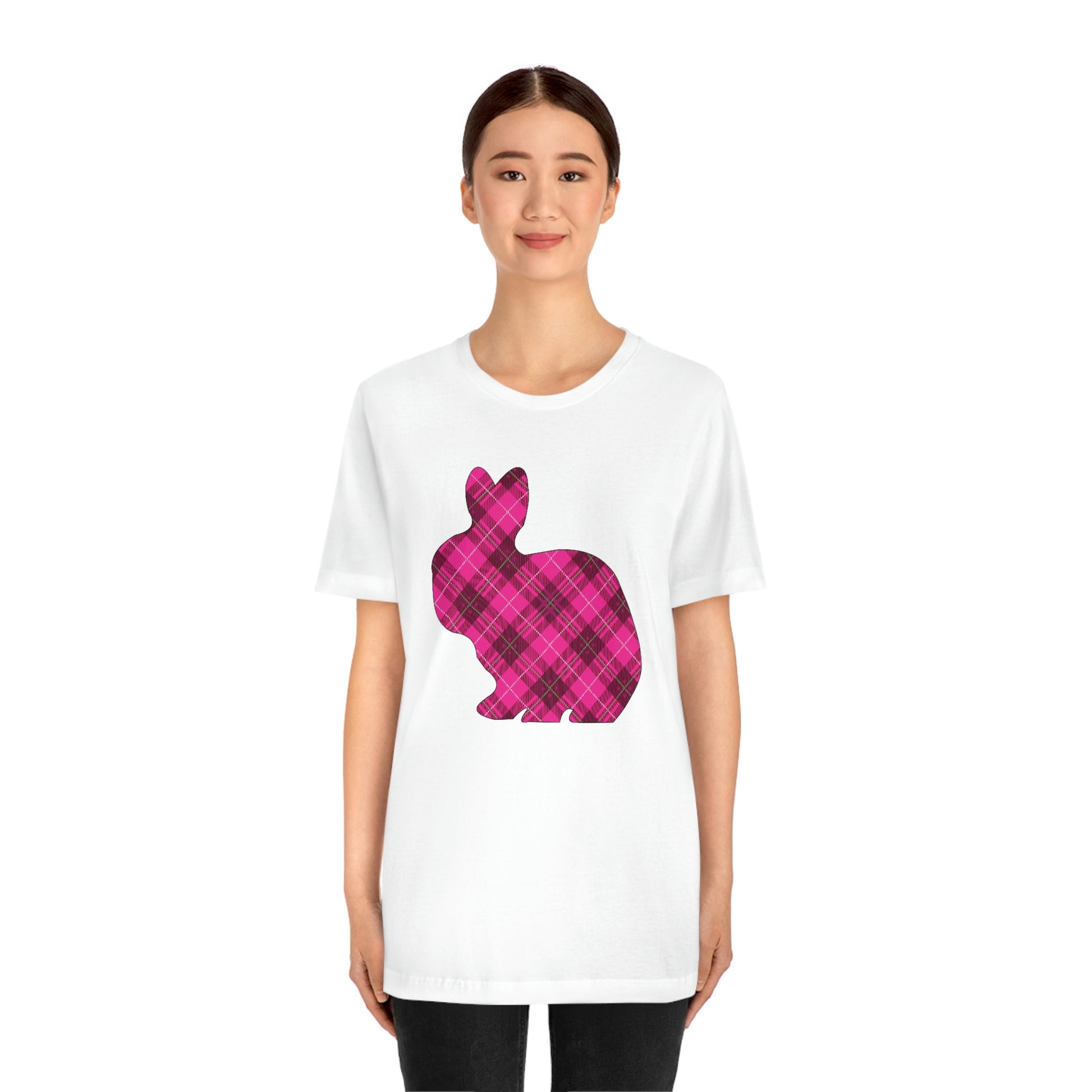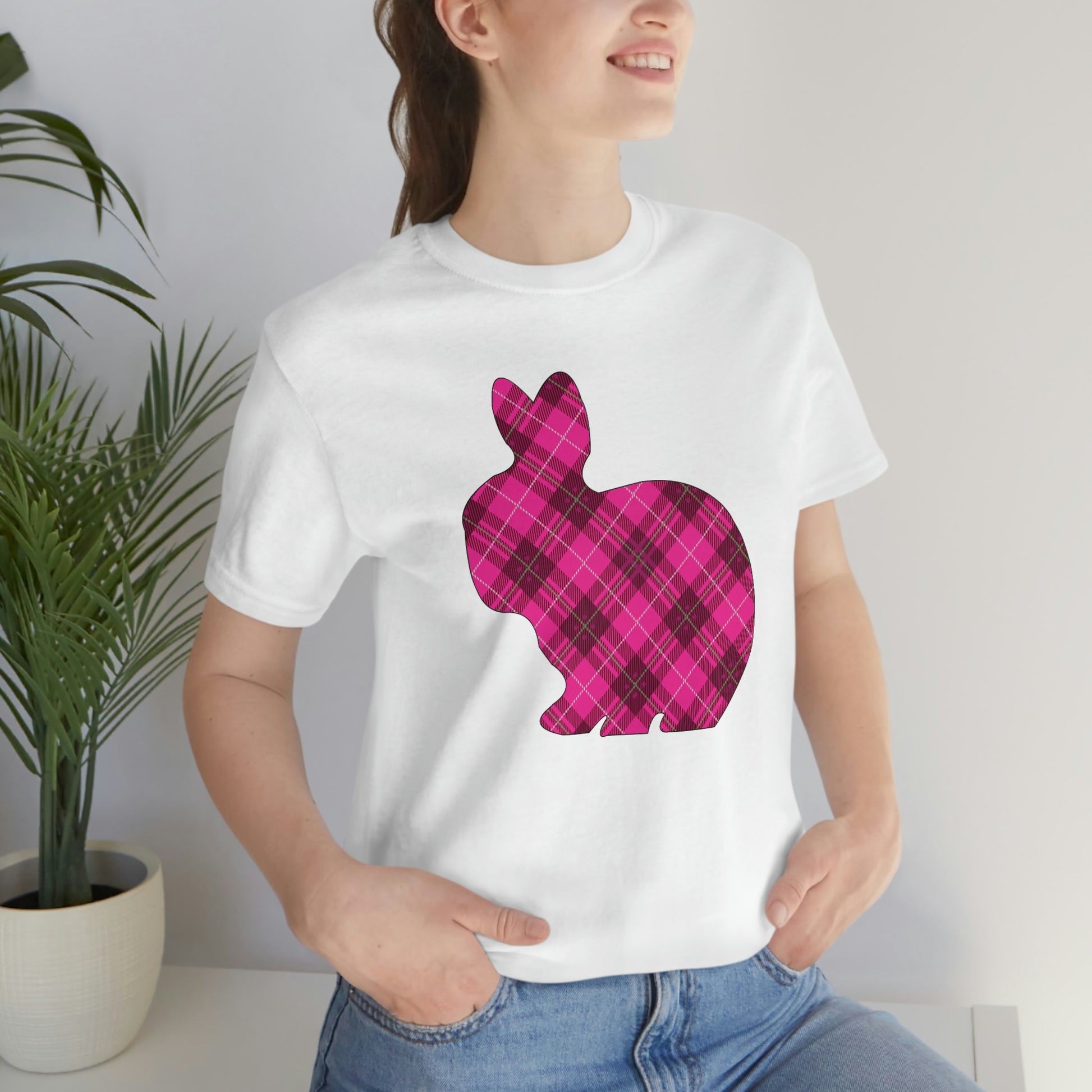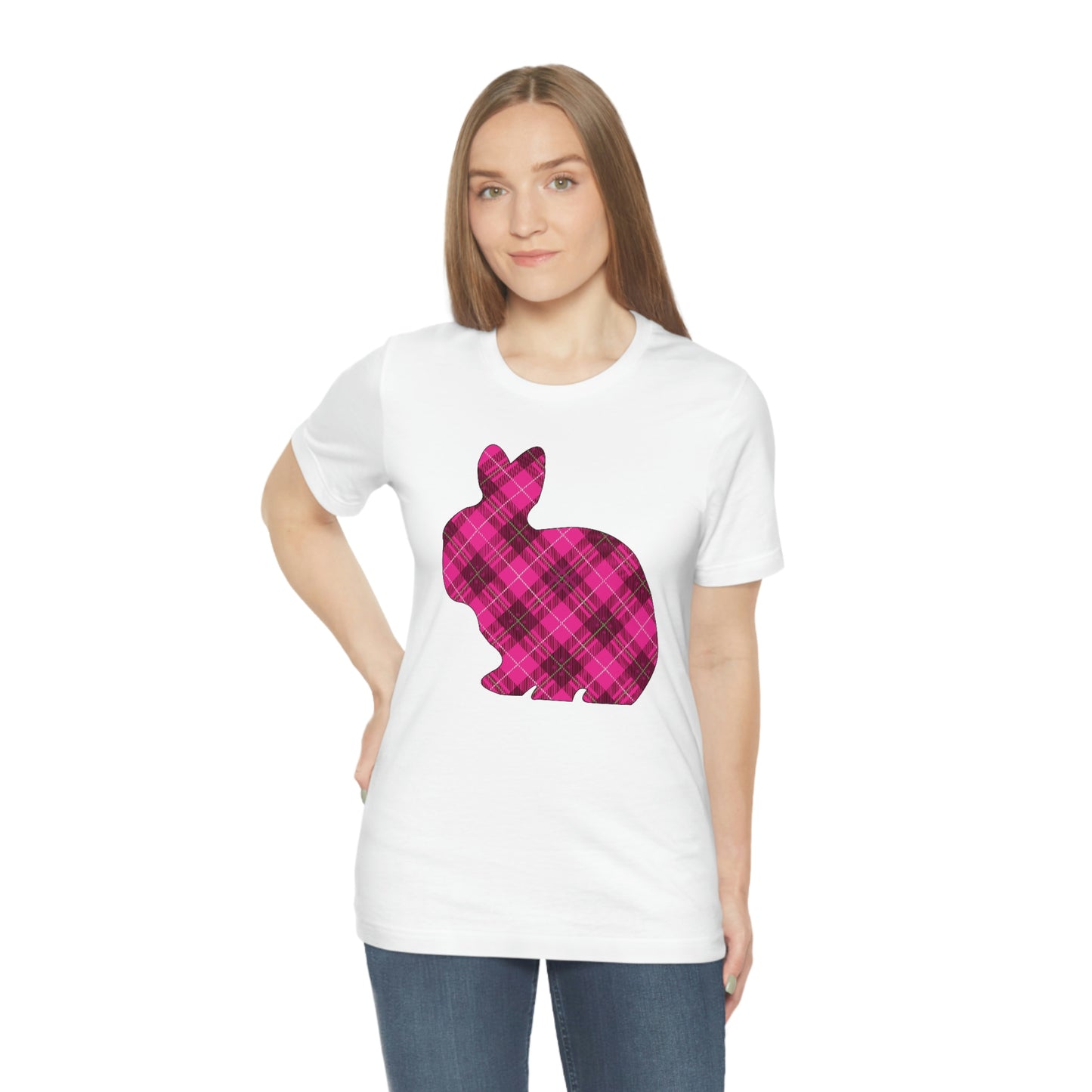 Pink Plaid Bunny Spring Easter Unisex Jersey Short Sleeve Tee