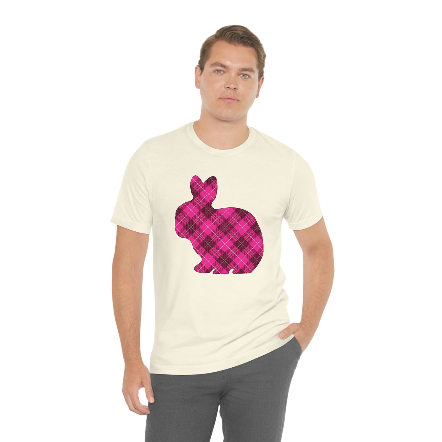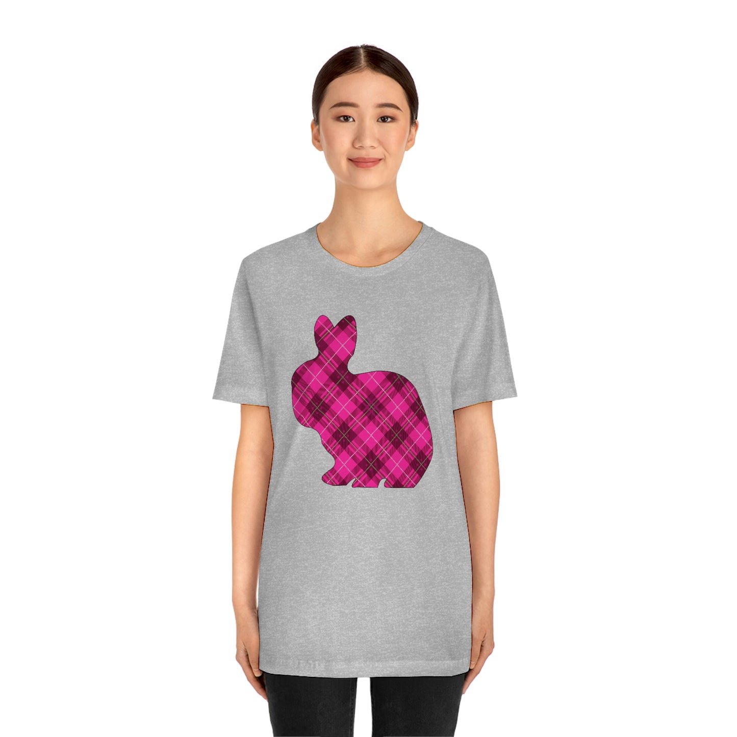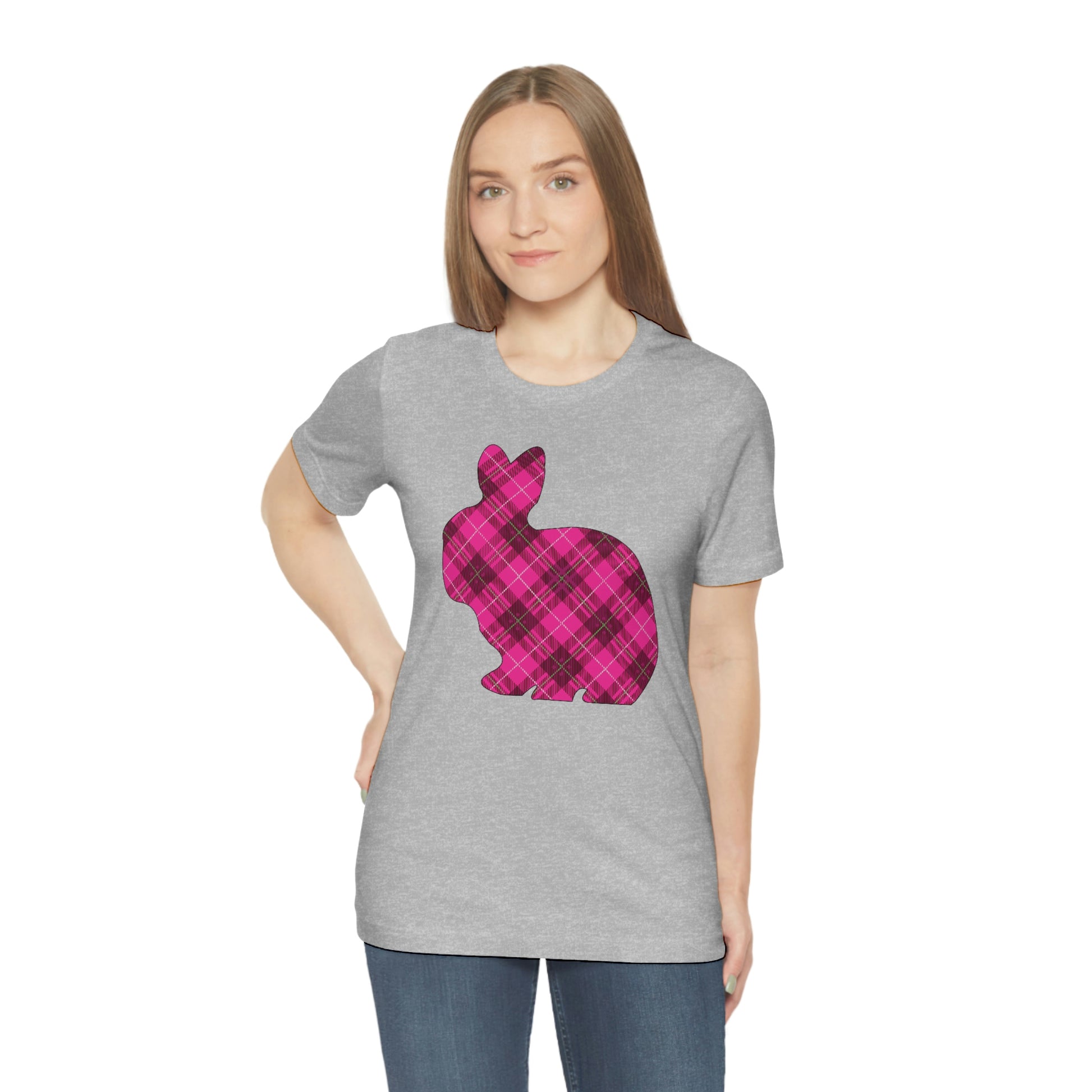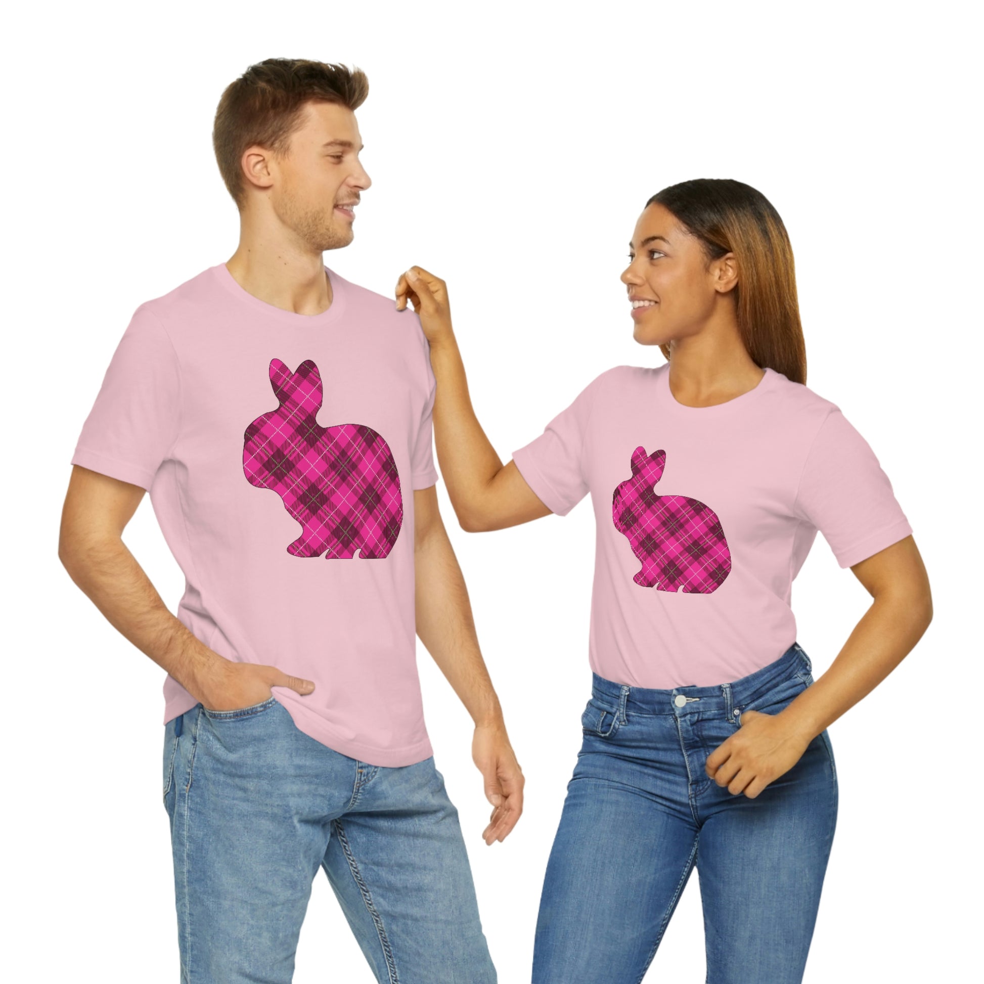 Pink Plaid Bunny Spring Easter Unisex Jersey Short Sleeve Tee