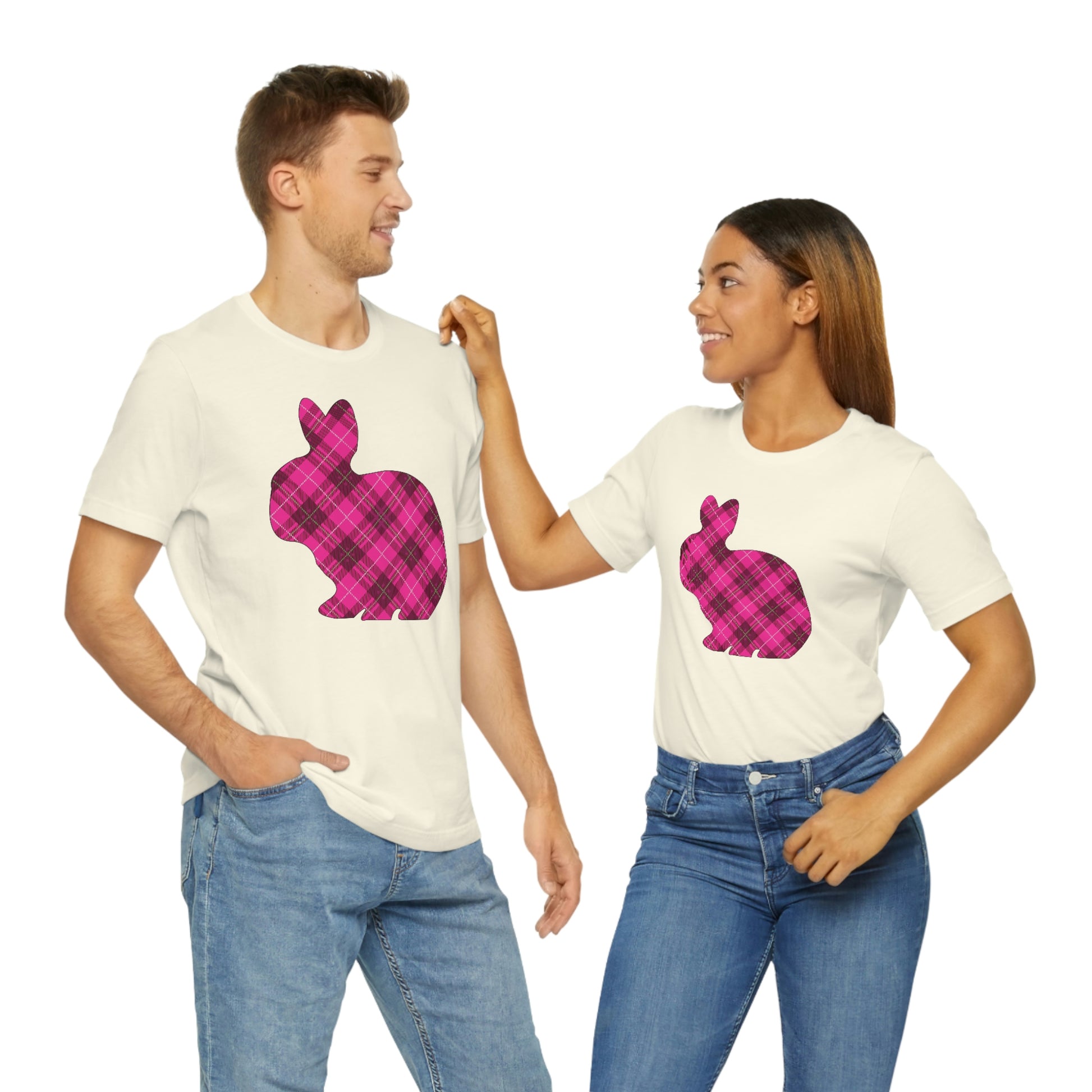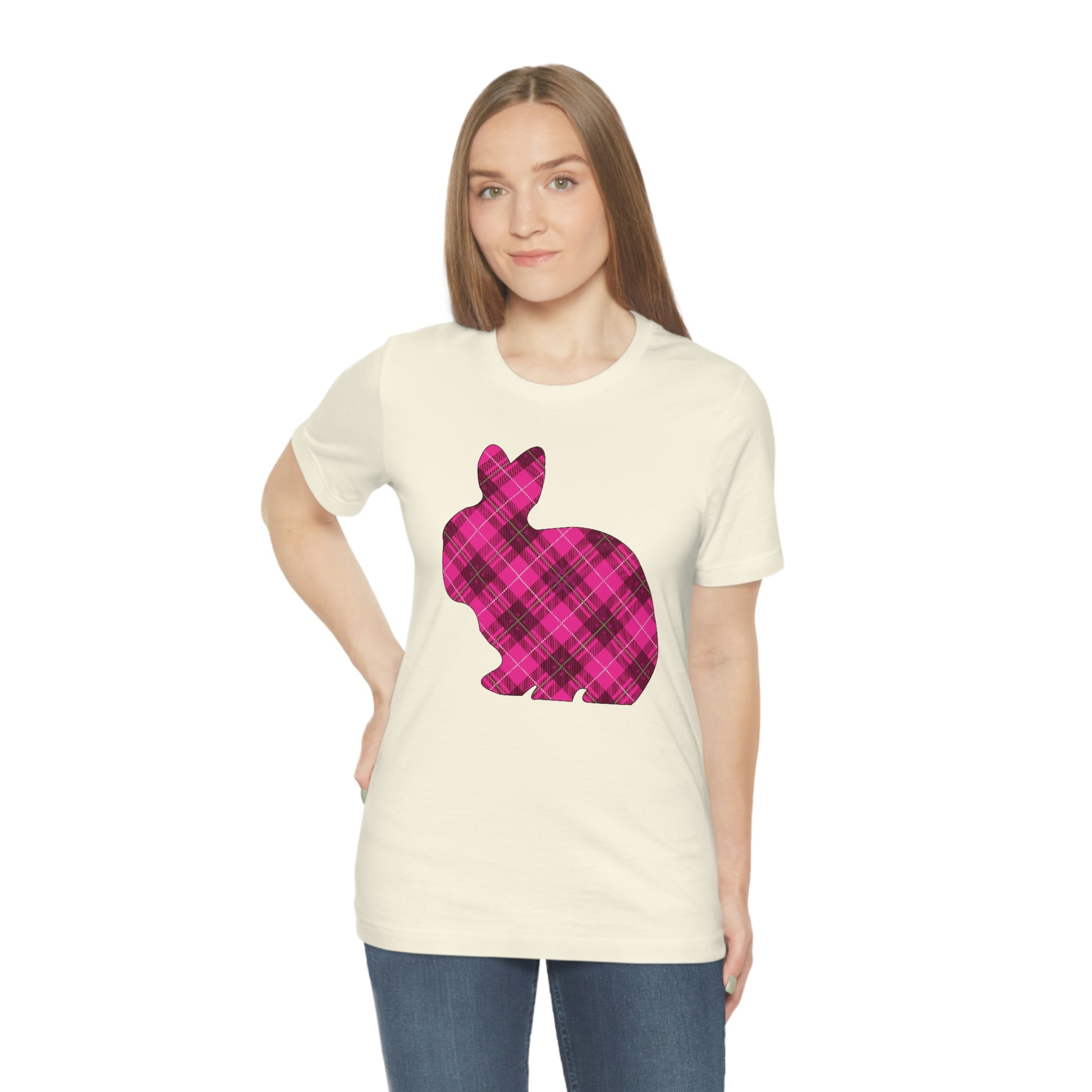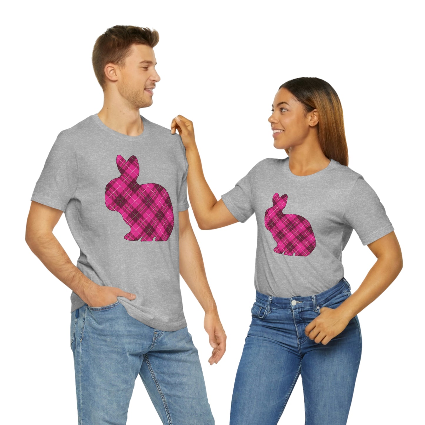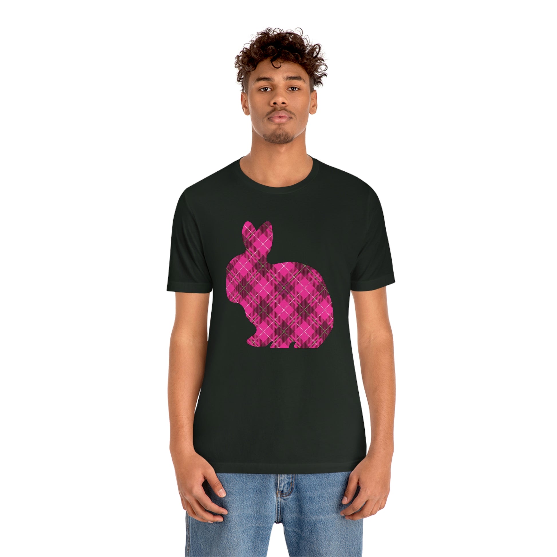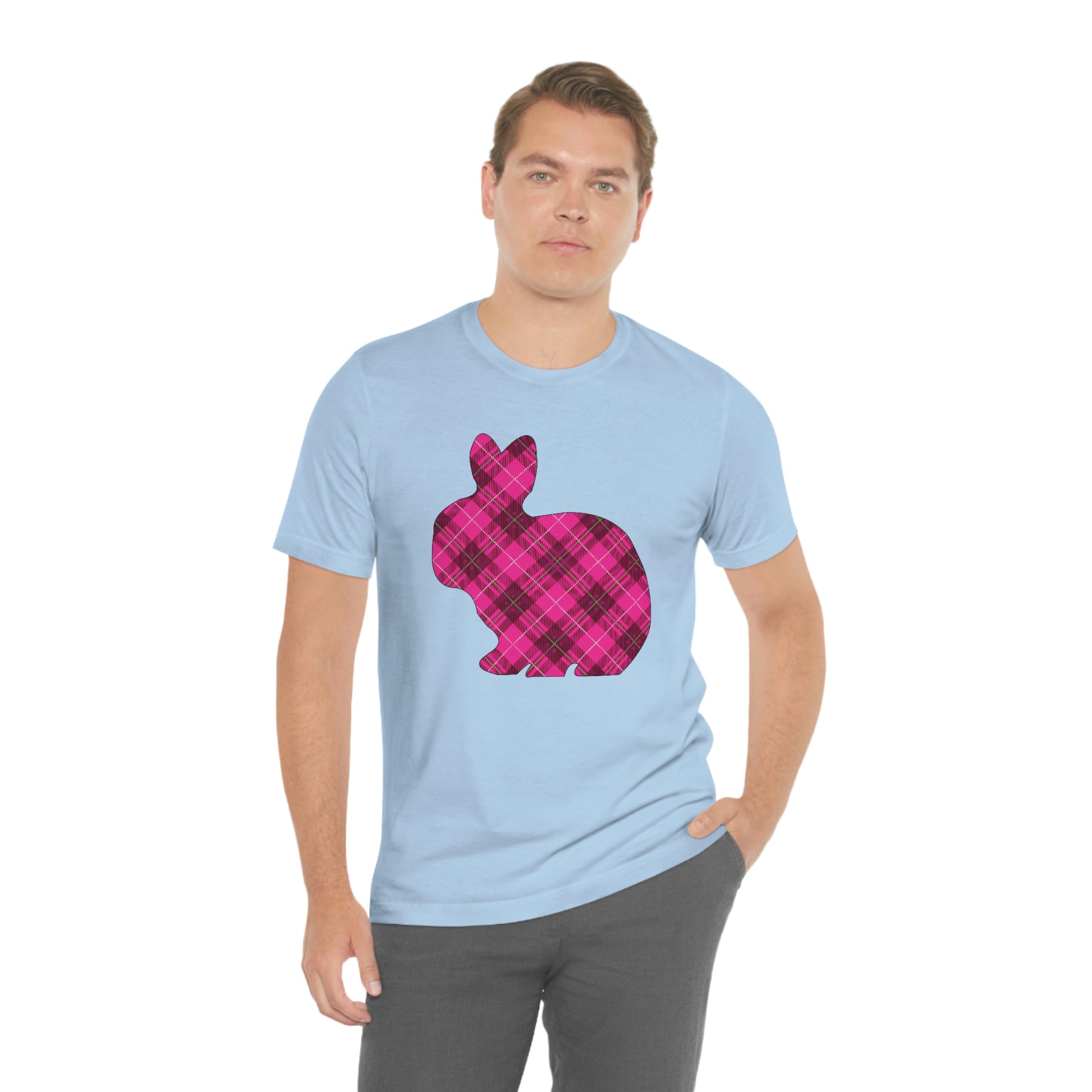 Pink Plaid Bunny Spring Easter Unisex Jersey Short Sleeve Tee