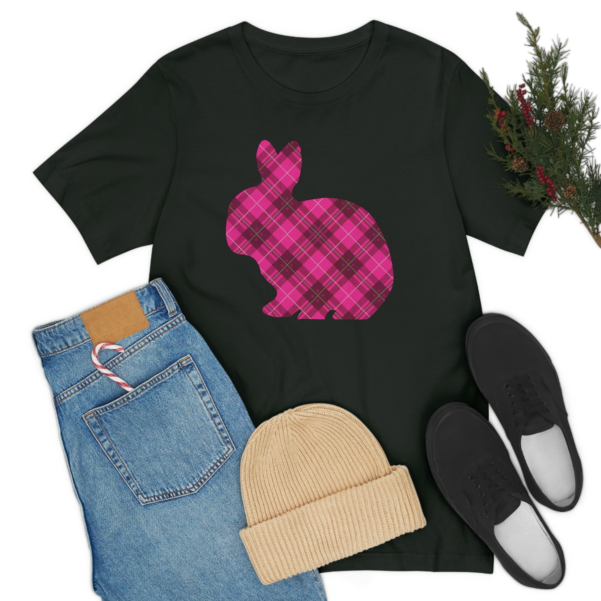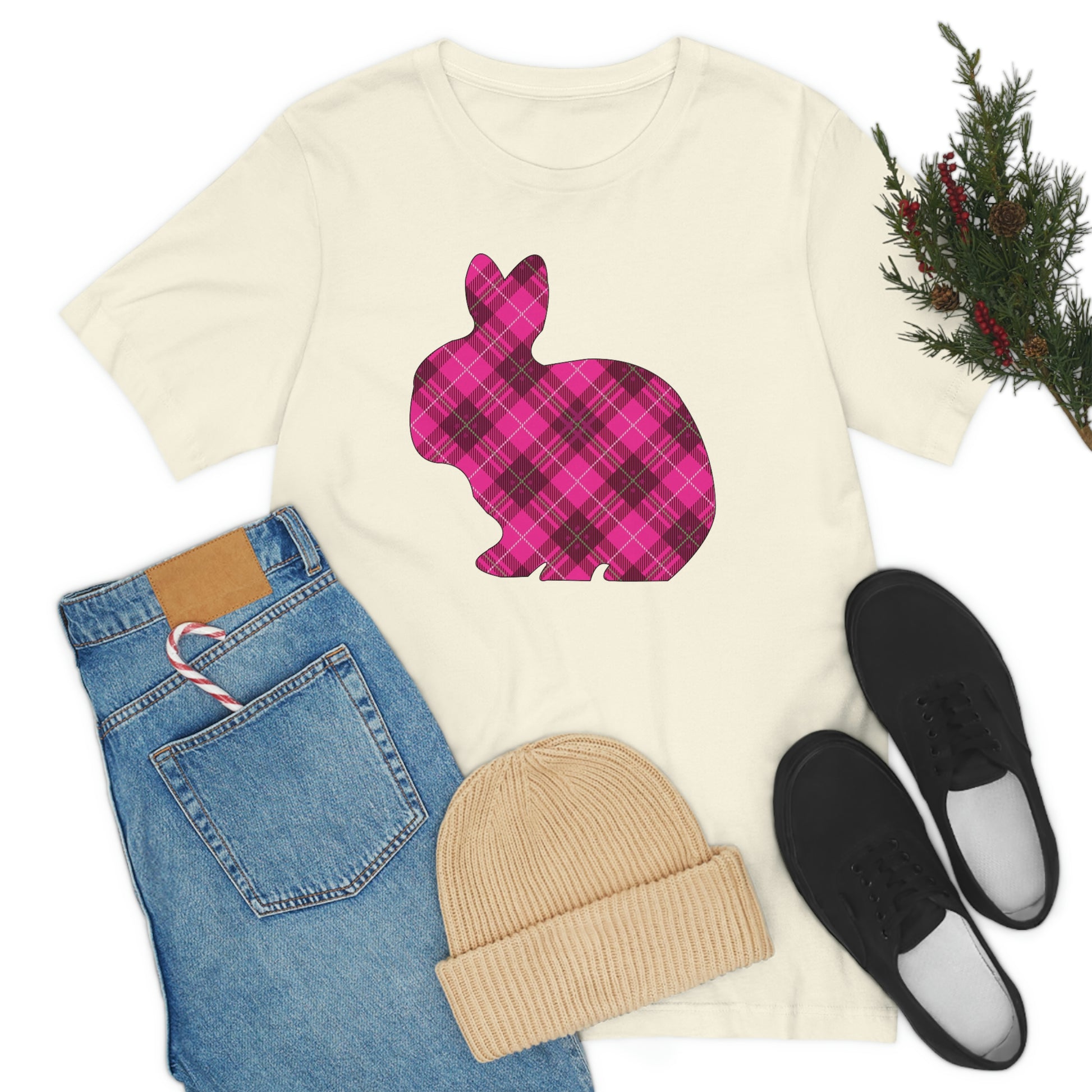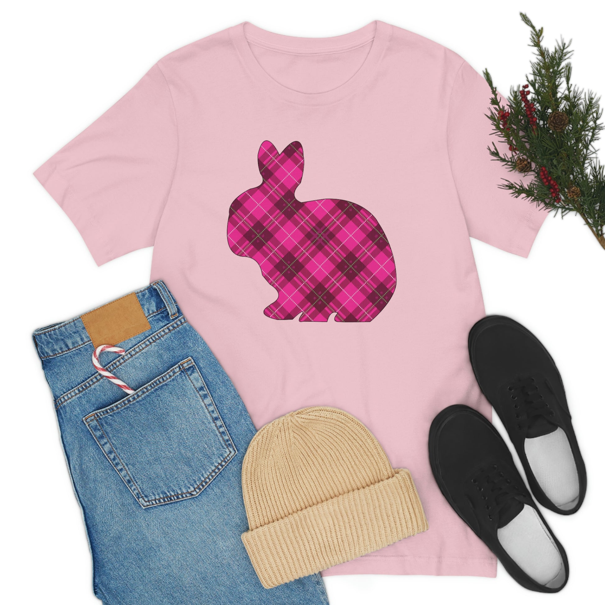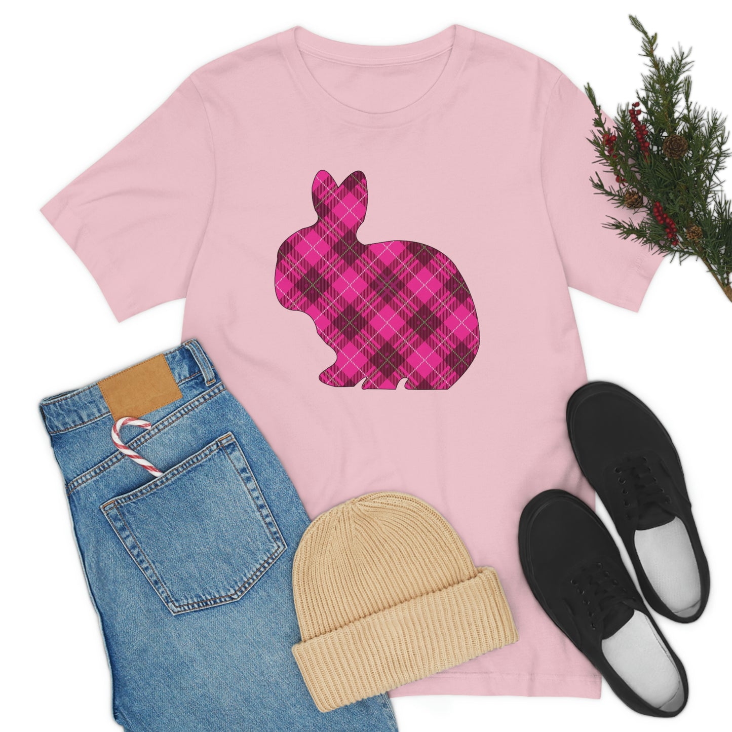 Pink Plaid Bunny Spring Easter Unisex Jersey Short Sleeve Tee