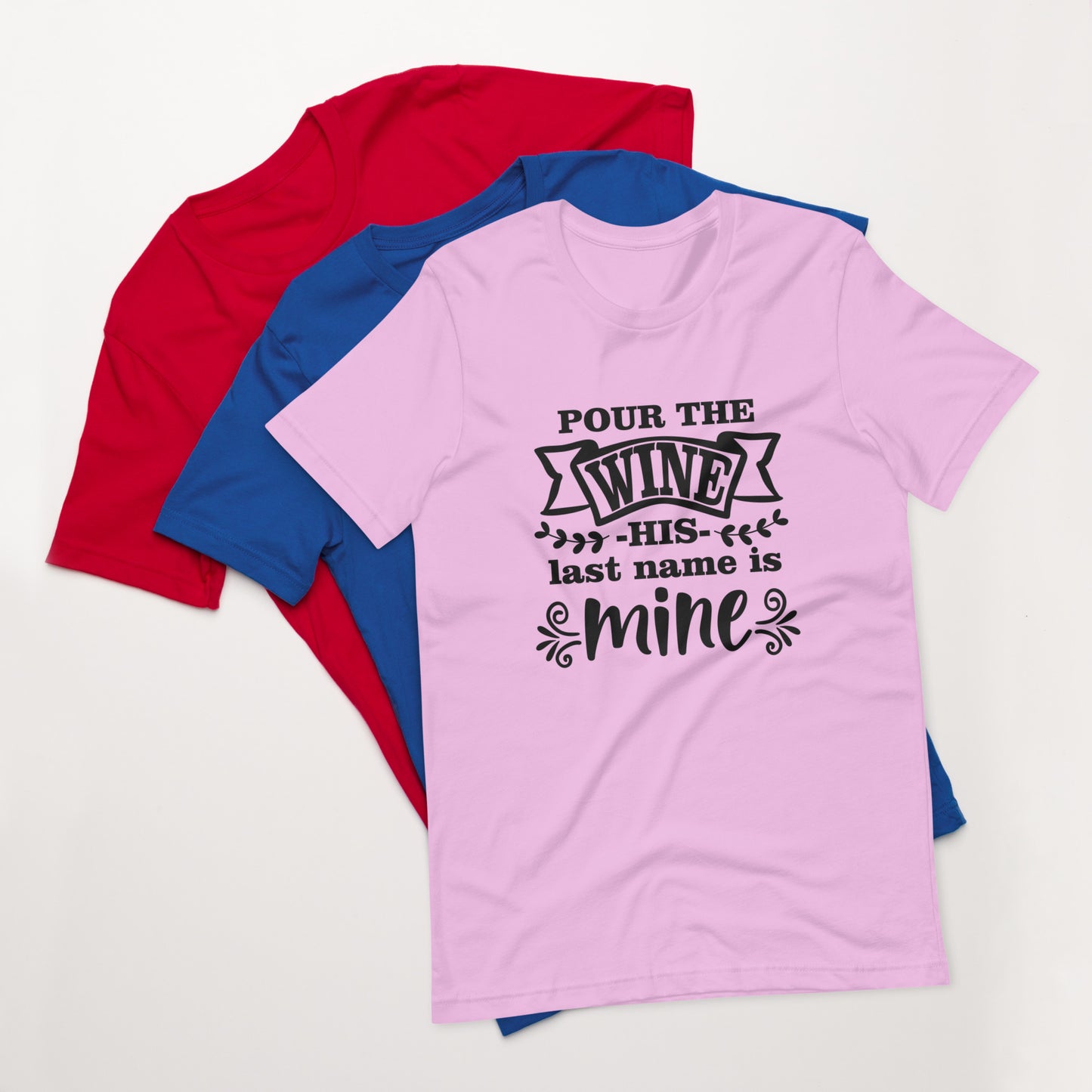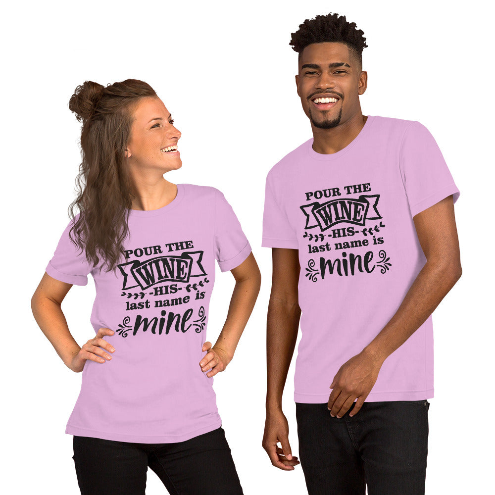 Pour the Wine His Last Name is Mine Unisex t-shirt