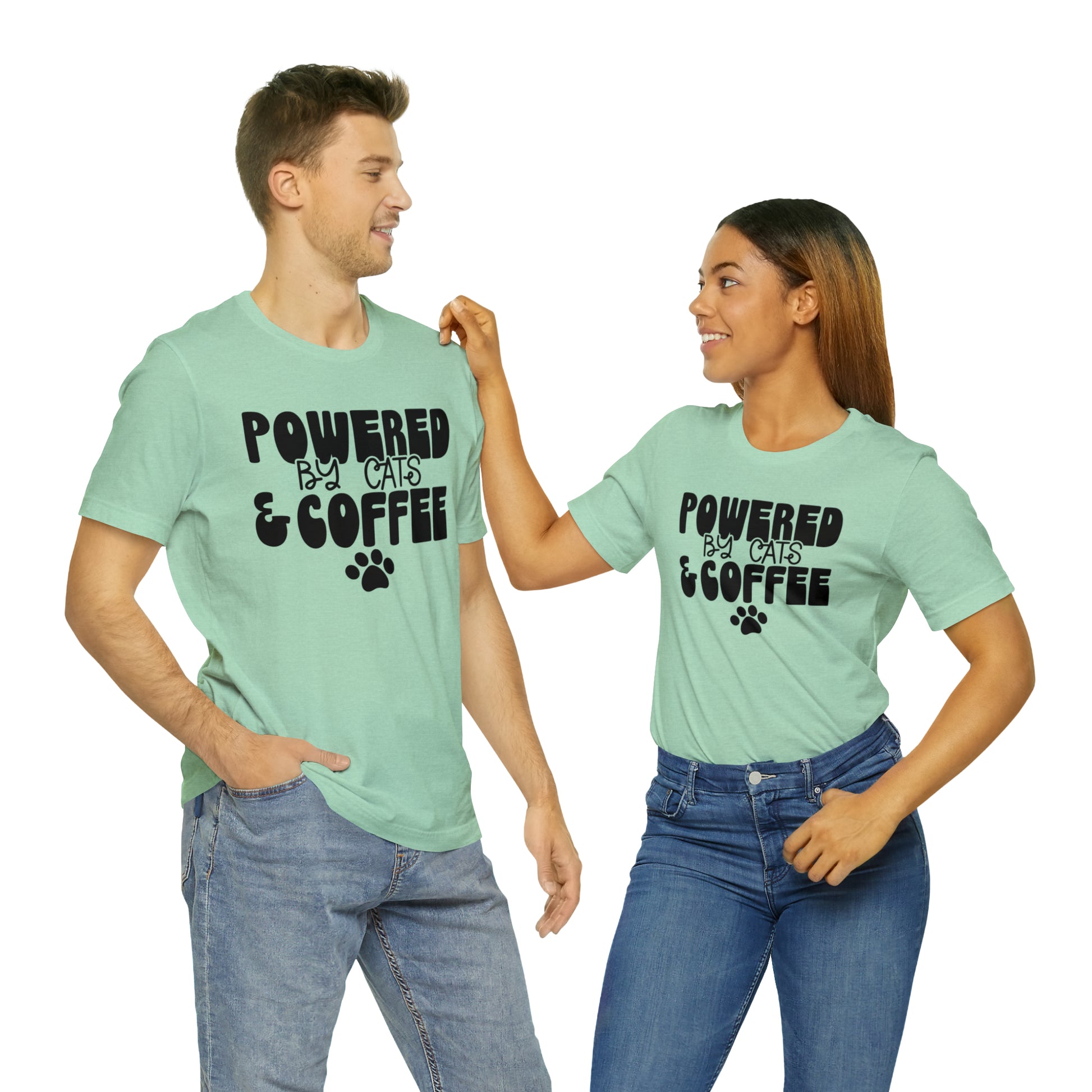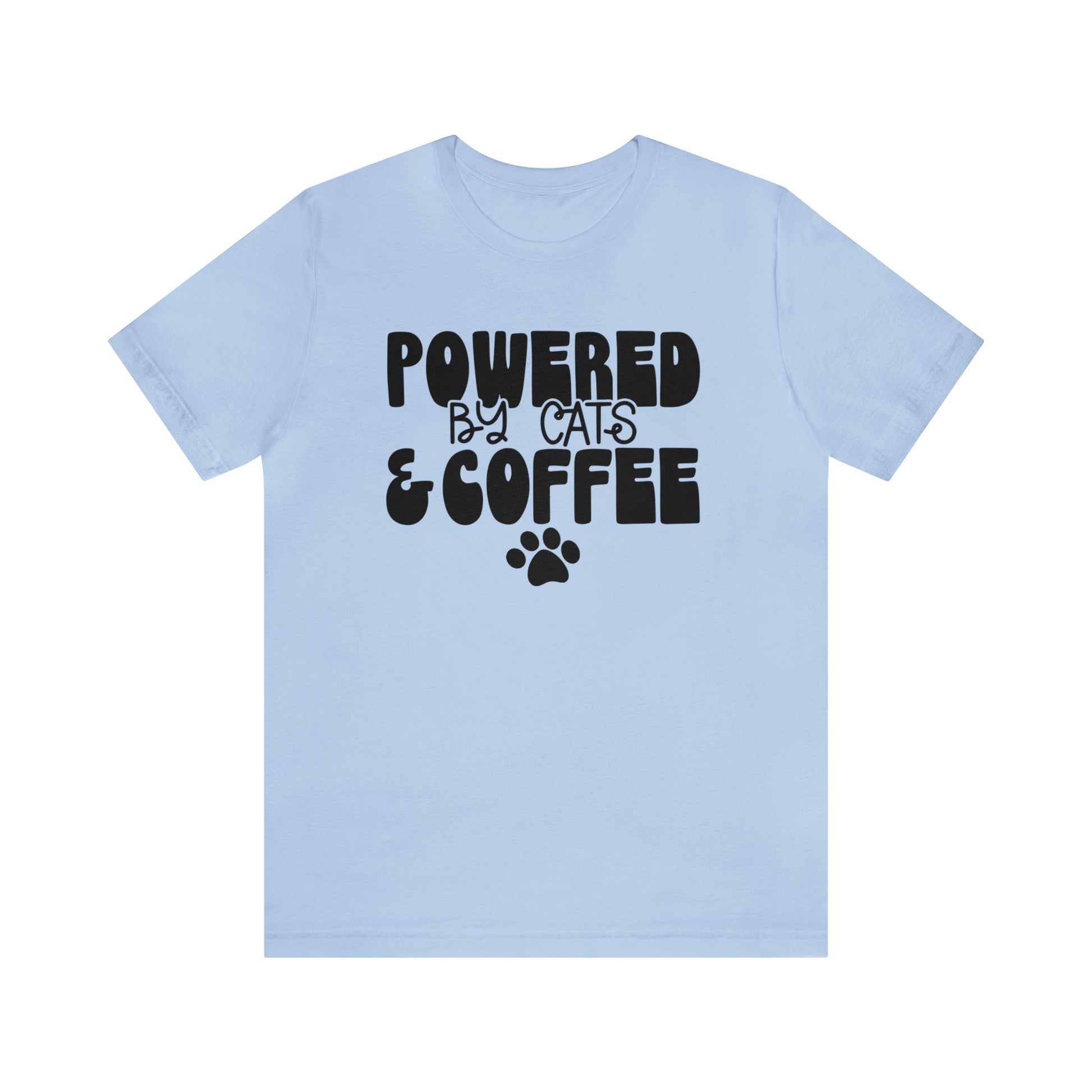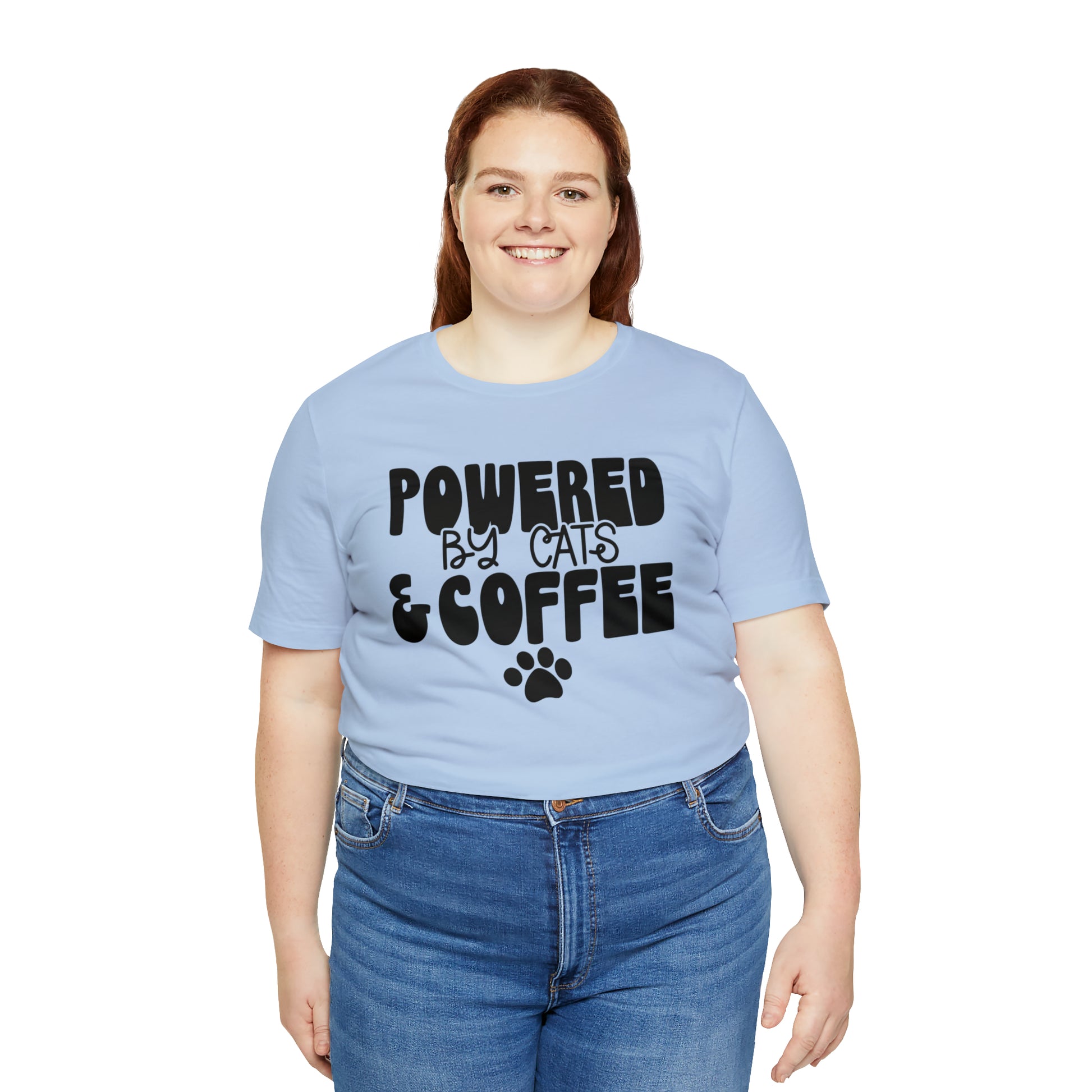 This classic unisex short sleeve cat t-shirt reads Powered by Cats & Coffee. This tee fits like a well-loved favorite. Soft cotton and quality print make you fall in love with it over and over again. These t-shirts have ribbed knit collars to bolster shaping. The shoulders have taping for better fit over time. Dual side seams hold the garment's shape for longer.