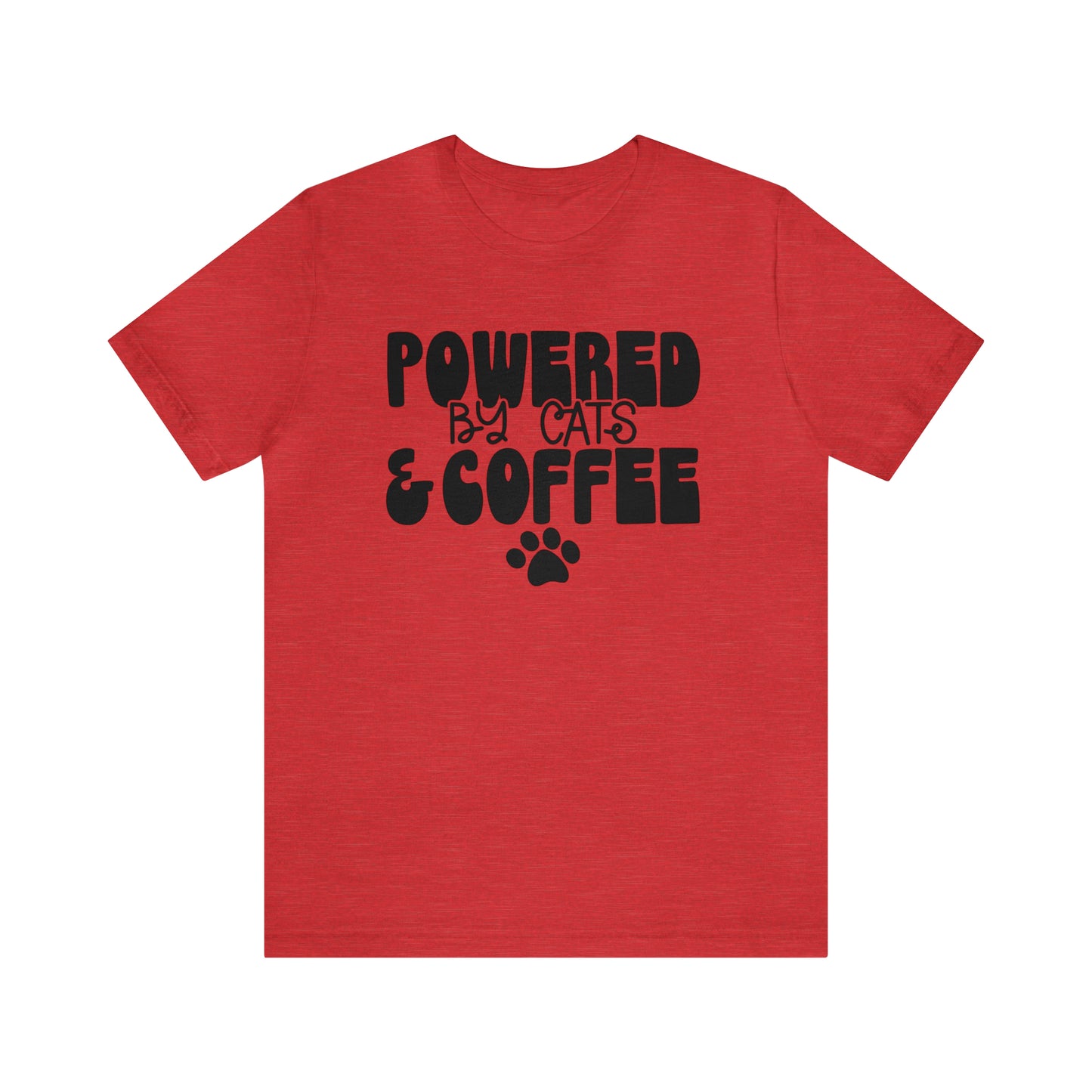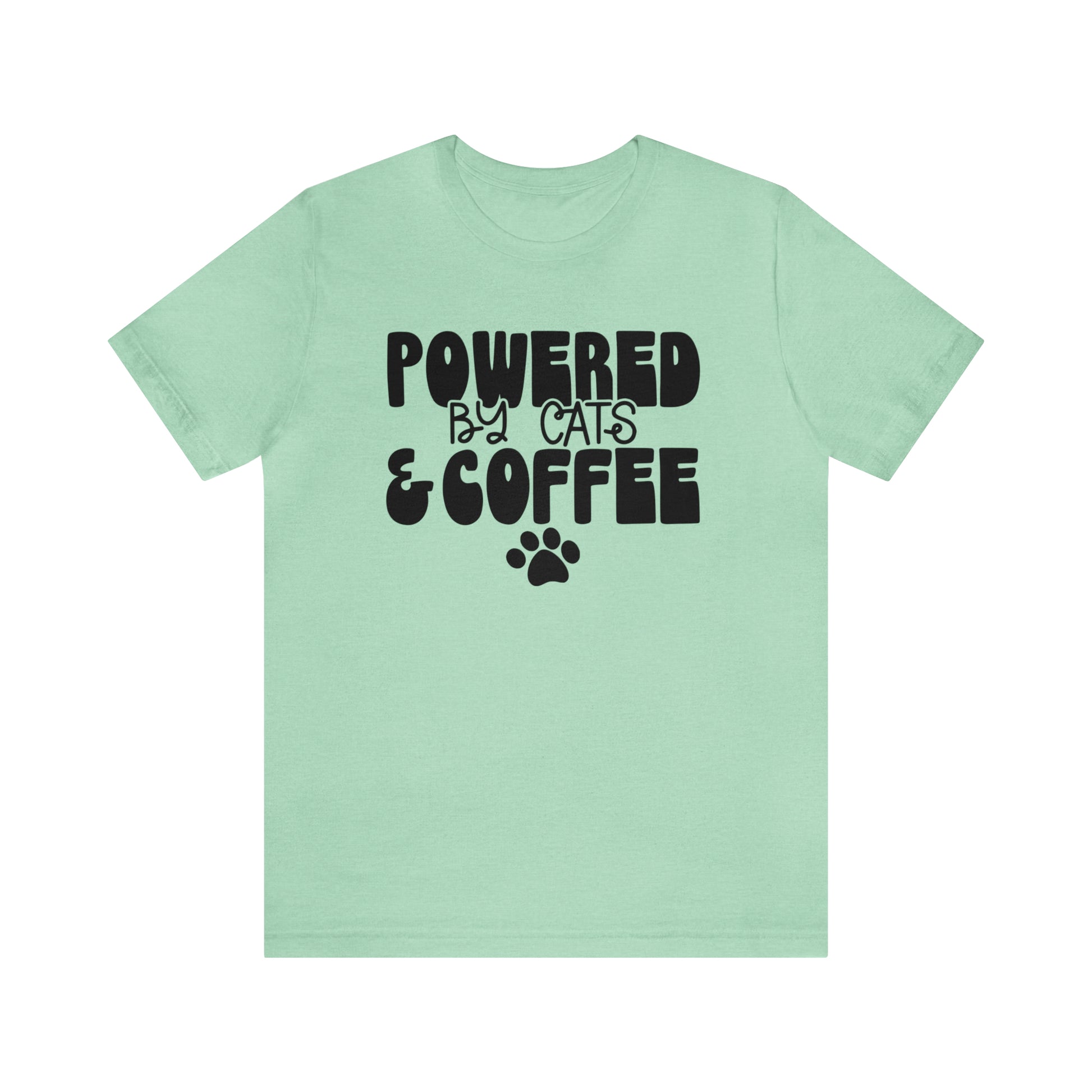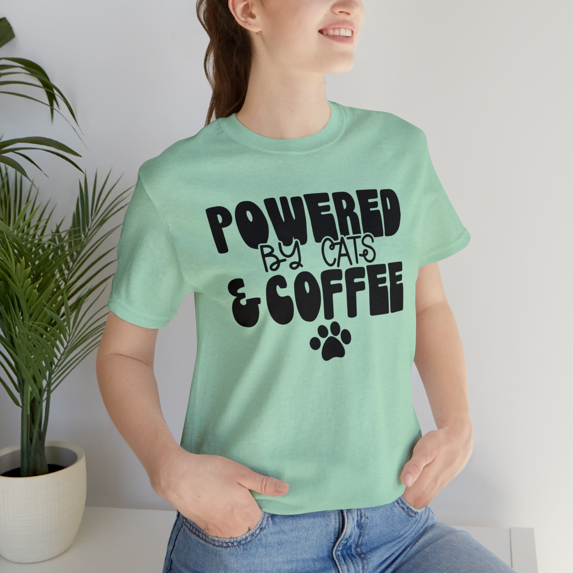 This classic unisex short sleeve cat t-shirt reads Powered by Cats & Coffee. This tee fits like a well-loved favorite. Soft cotton and quality print make you fall in love with it over and over again. These t-shirts have ribbed knit collars to bolster shaping. The shoulders have taping for better fit over time. Dual side seams hold the garment's shape for longer.
