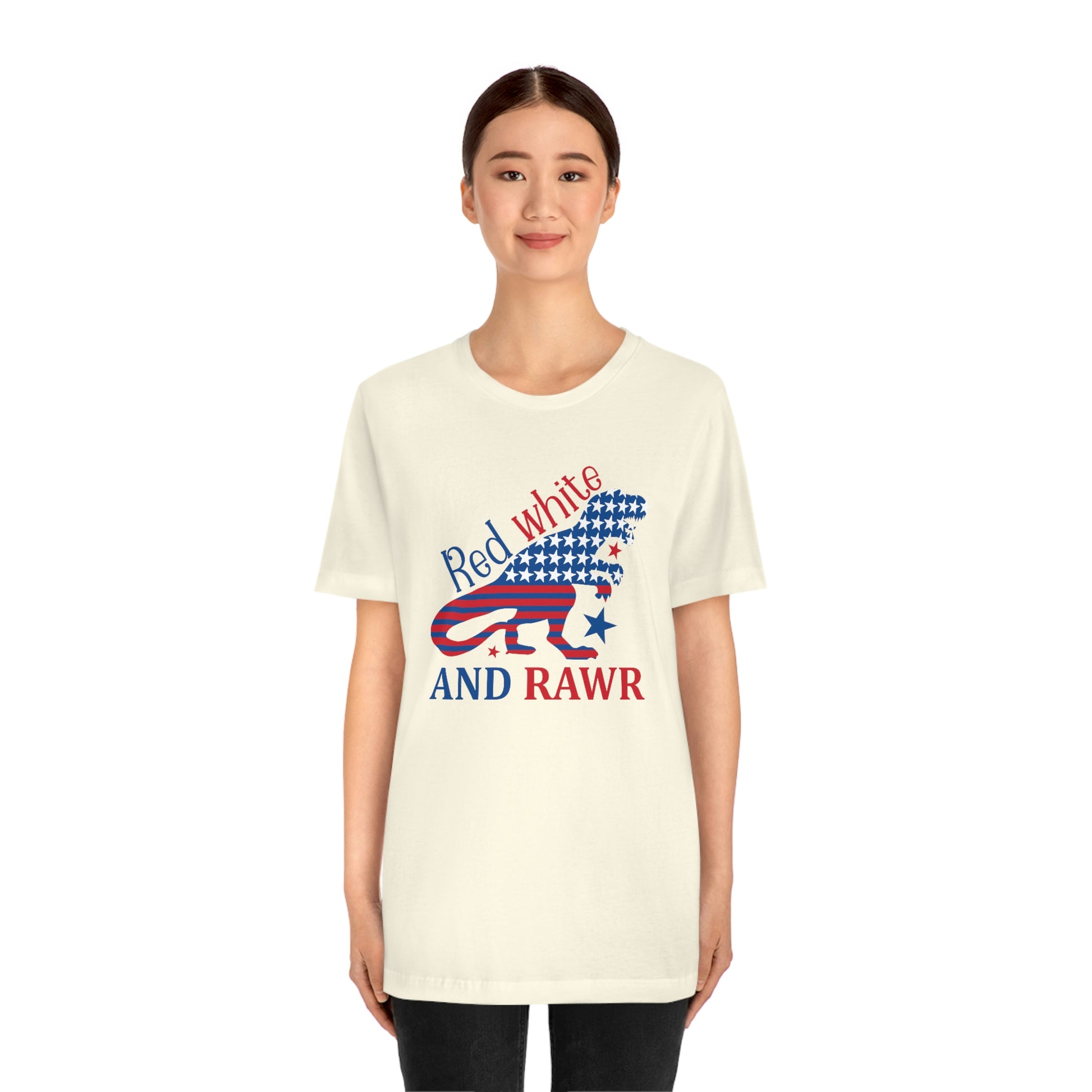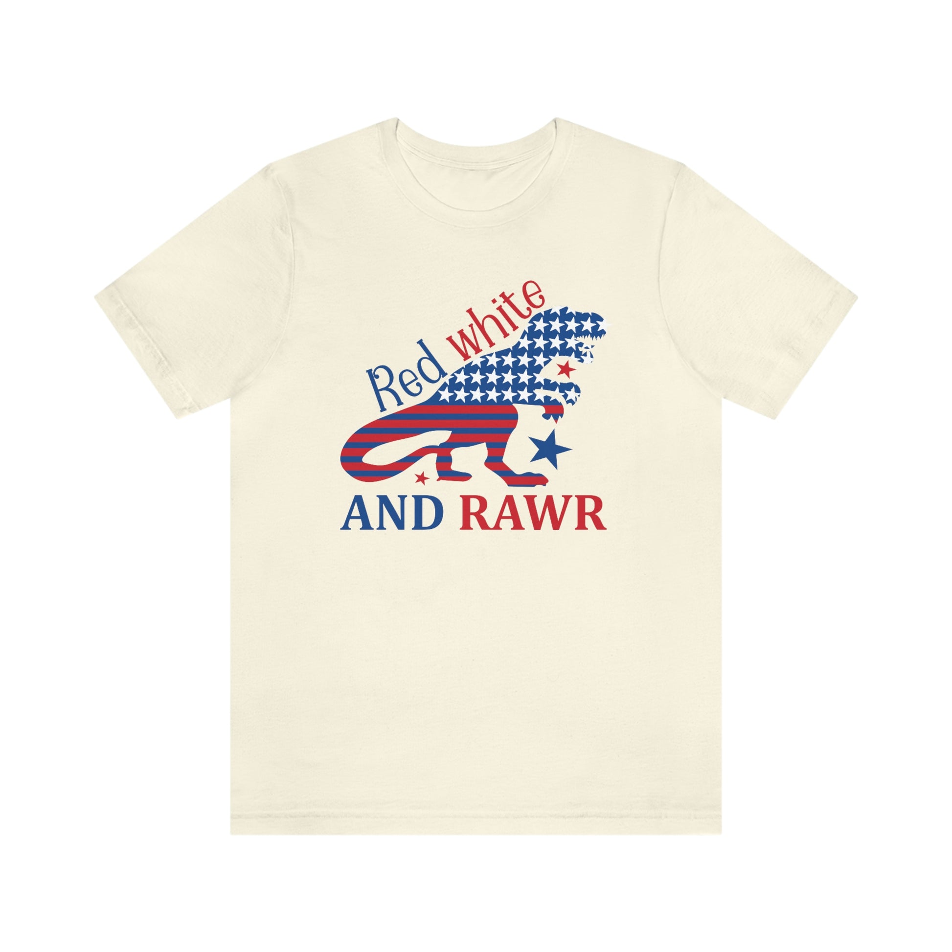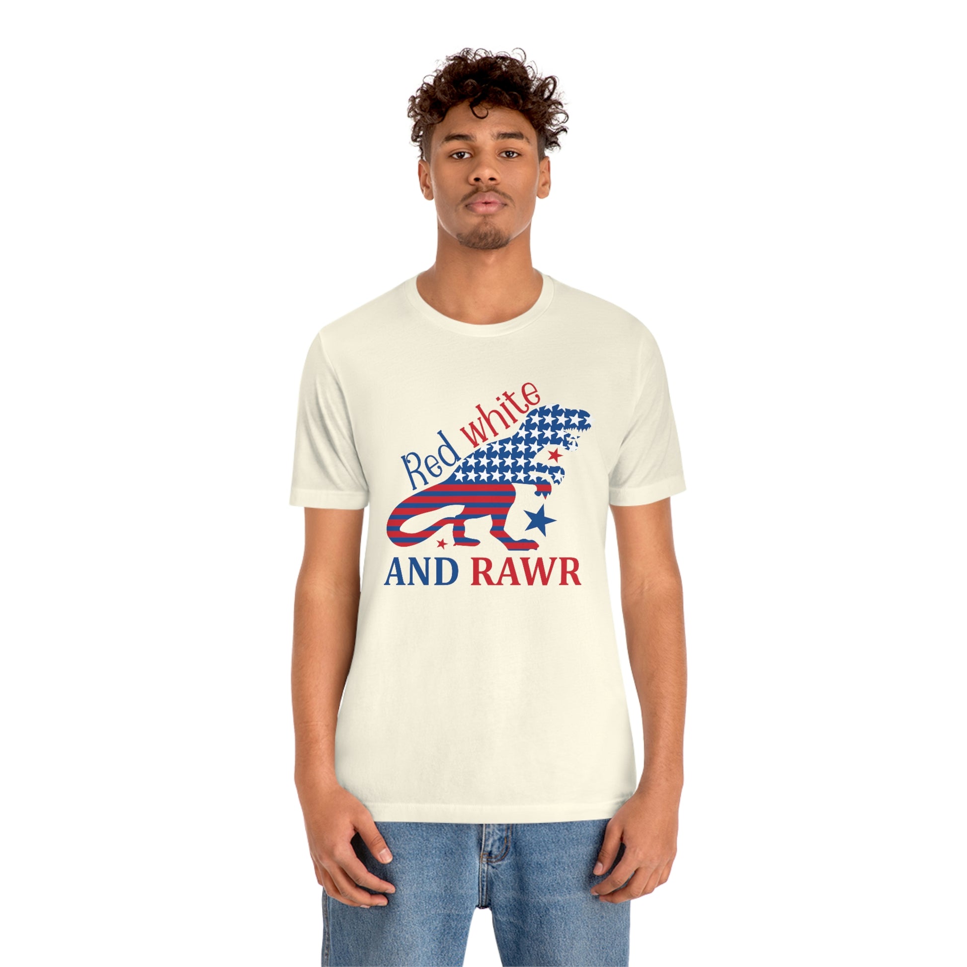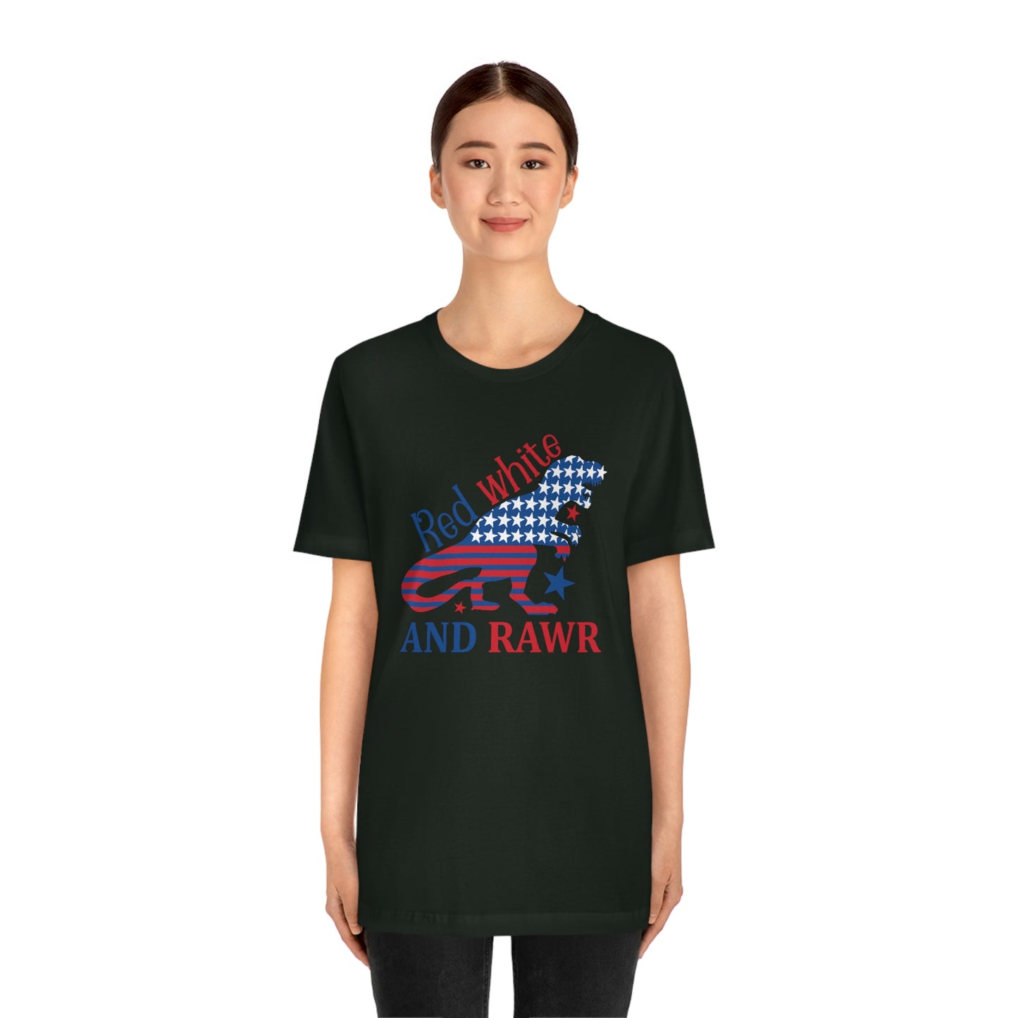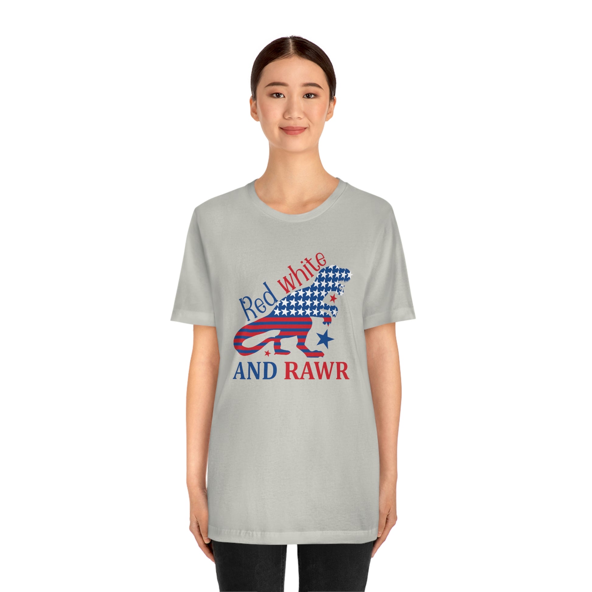 Red White Rawr Dinosaur 4th of July Unisex Jersey Short Sleeve Tee