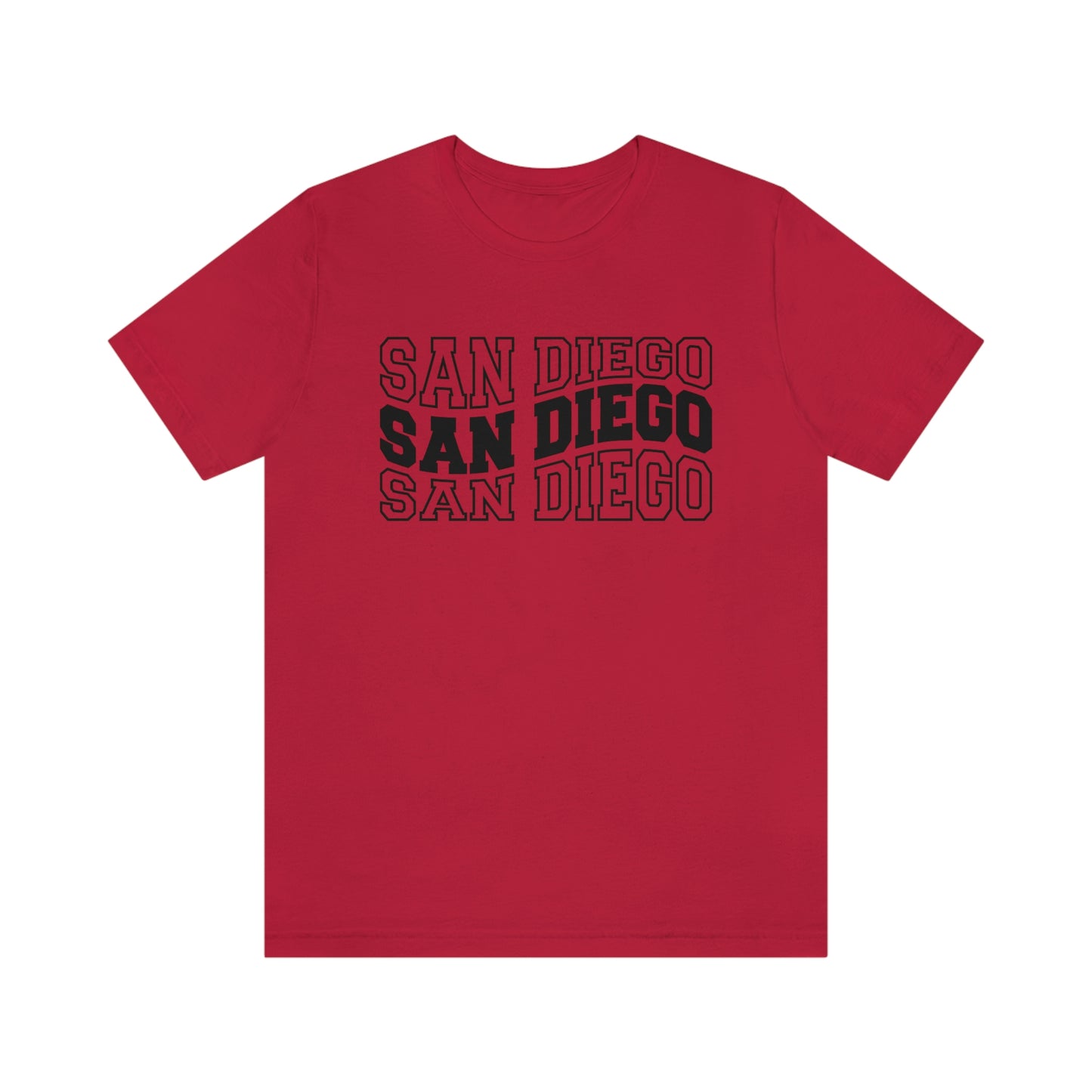 San Diego California Varsity Letters Wavy Unisex Jersey Short Sleeve Tee Tshirt T-shirt