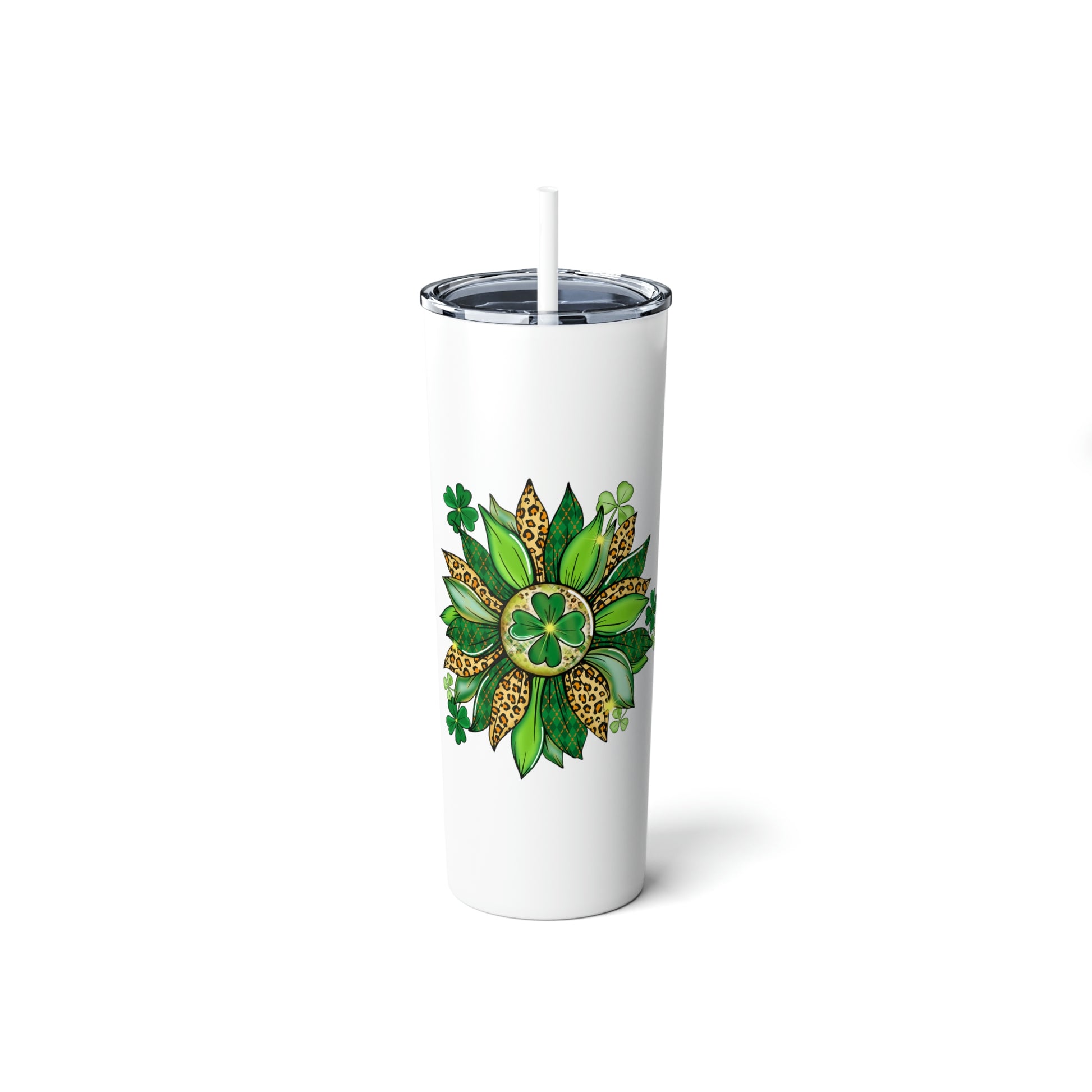 Shamrock Flower St. Patrick's Day Skinny Steel Tumbler with Straw, 20oz