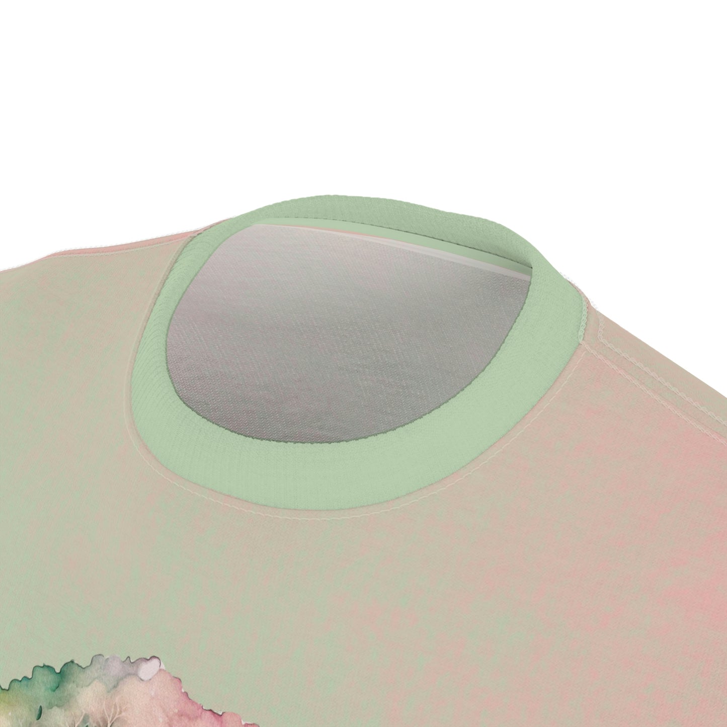 This shirt has a spring watercolor background and shows a tree decked out with spring ribbons as a maypole.