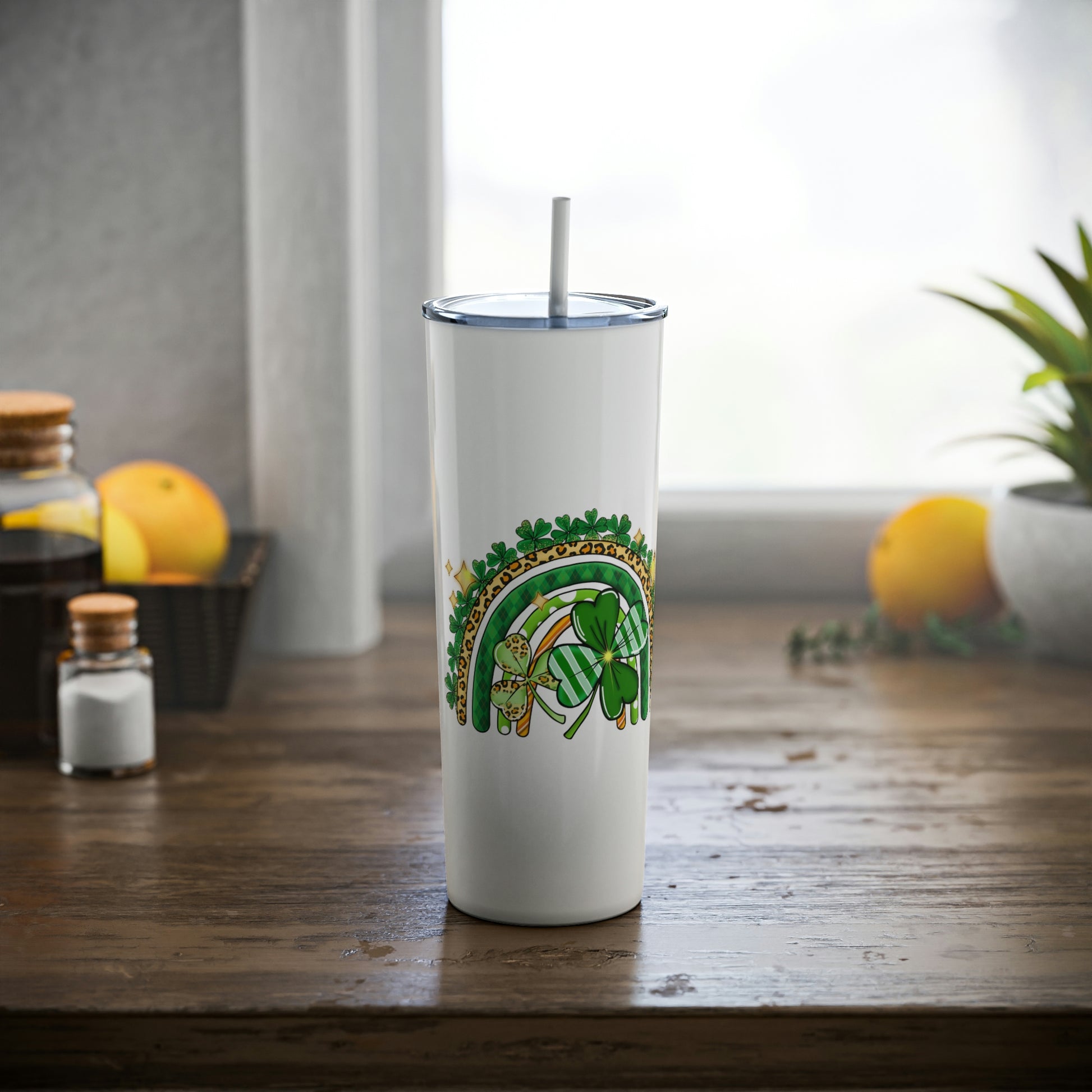 St. Patrick's Day Rainbow Skinny Steel Tumbler with Straw, 20oz