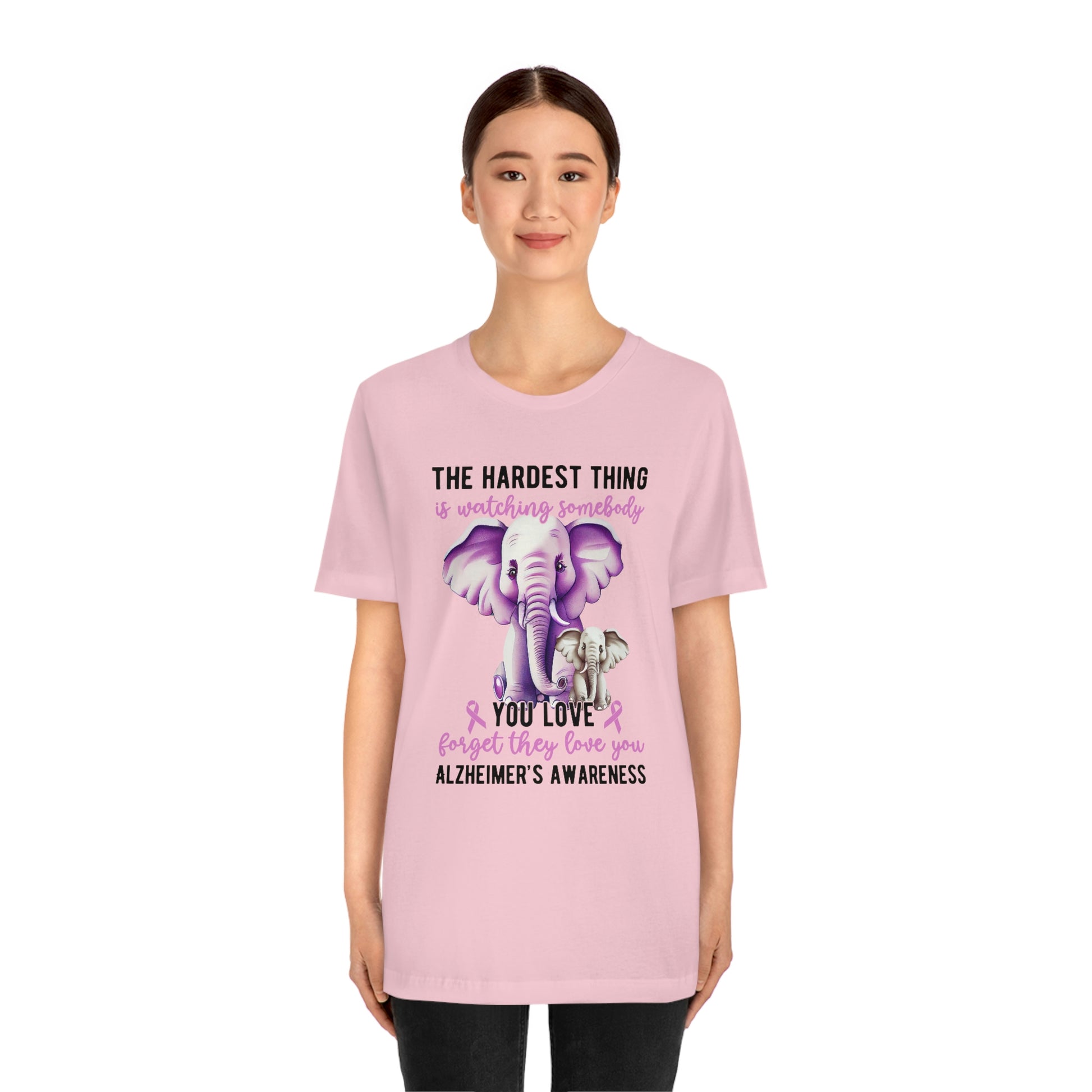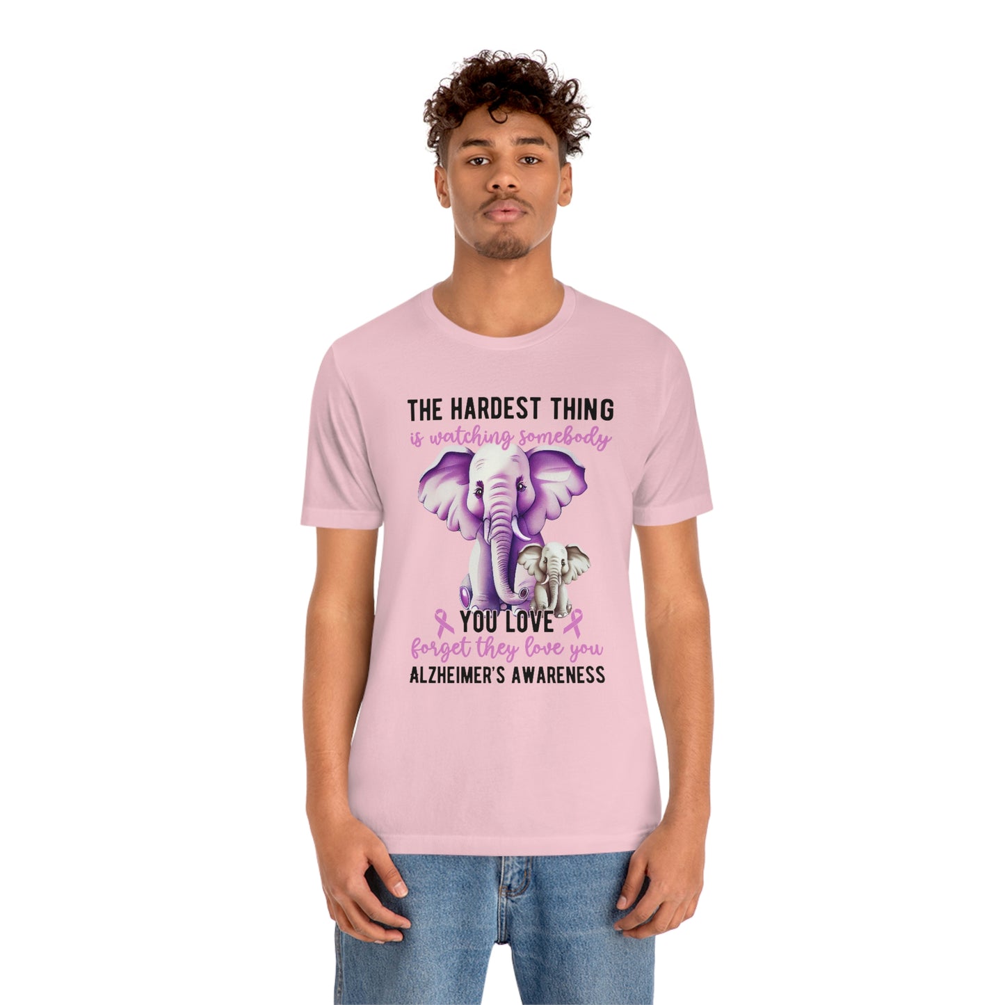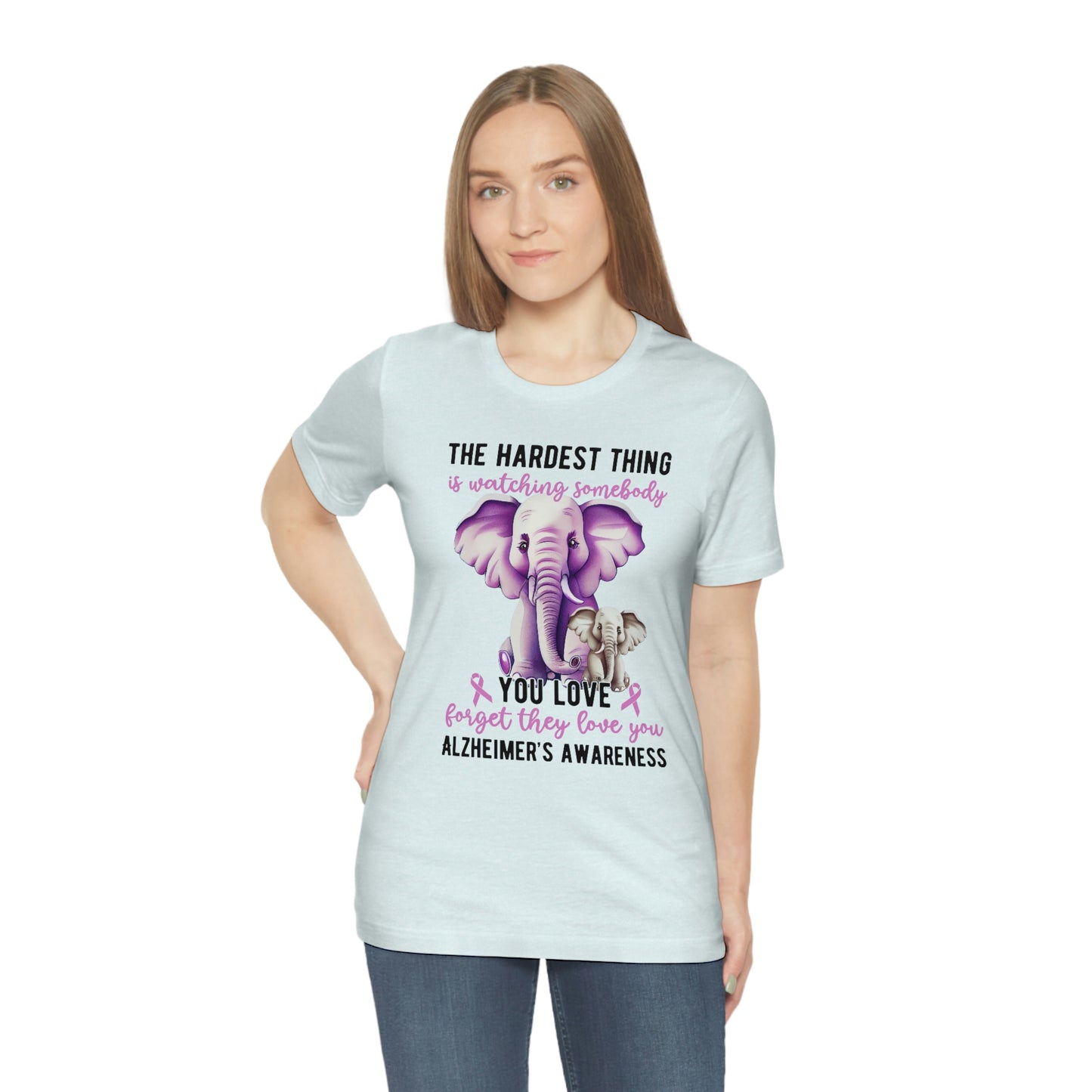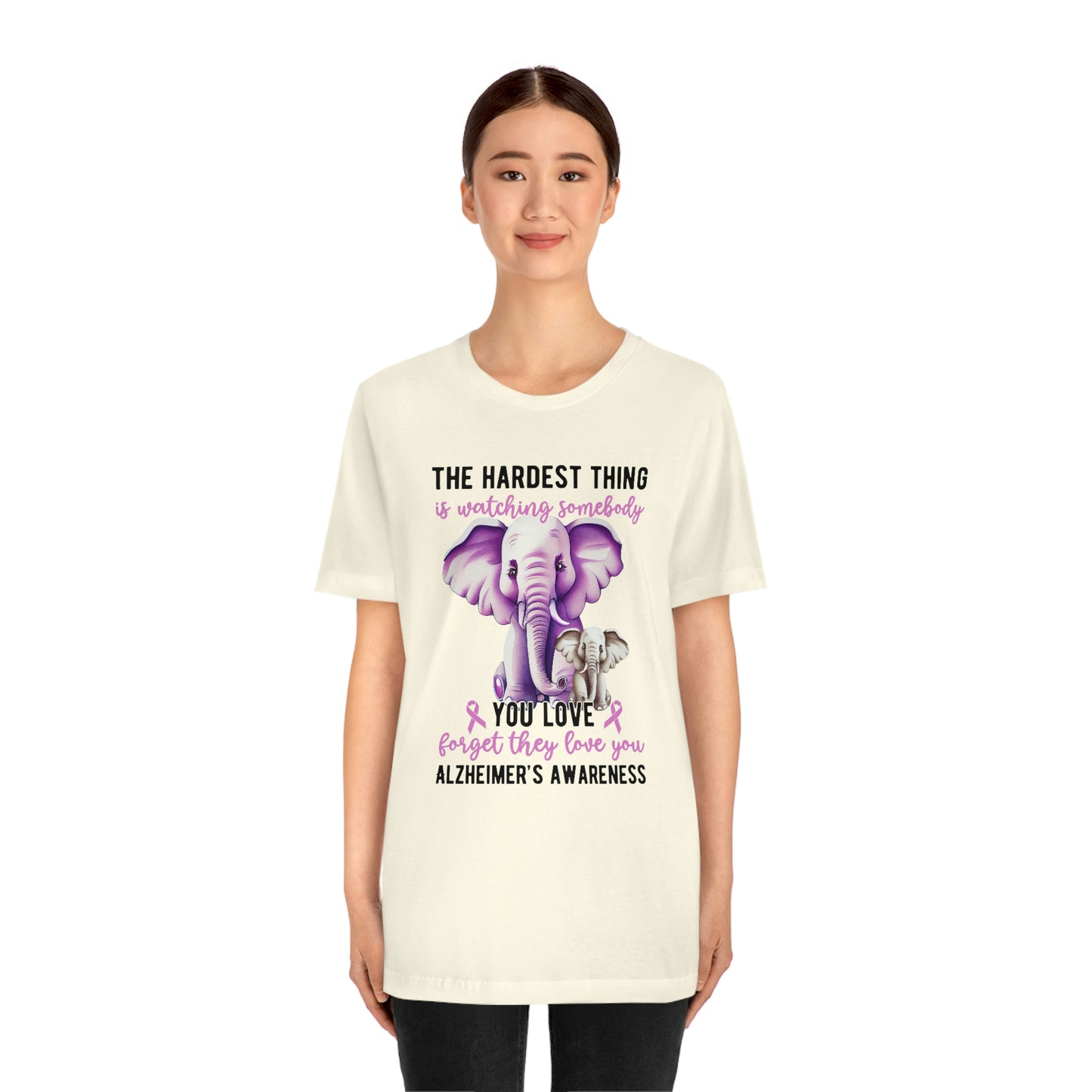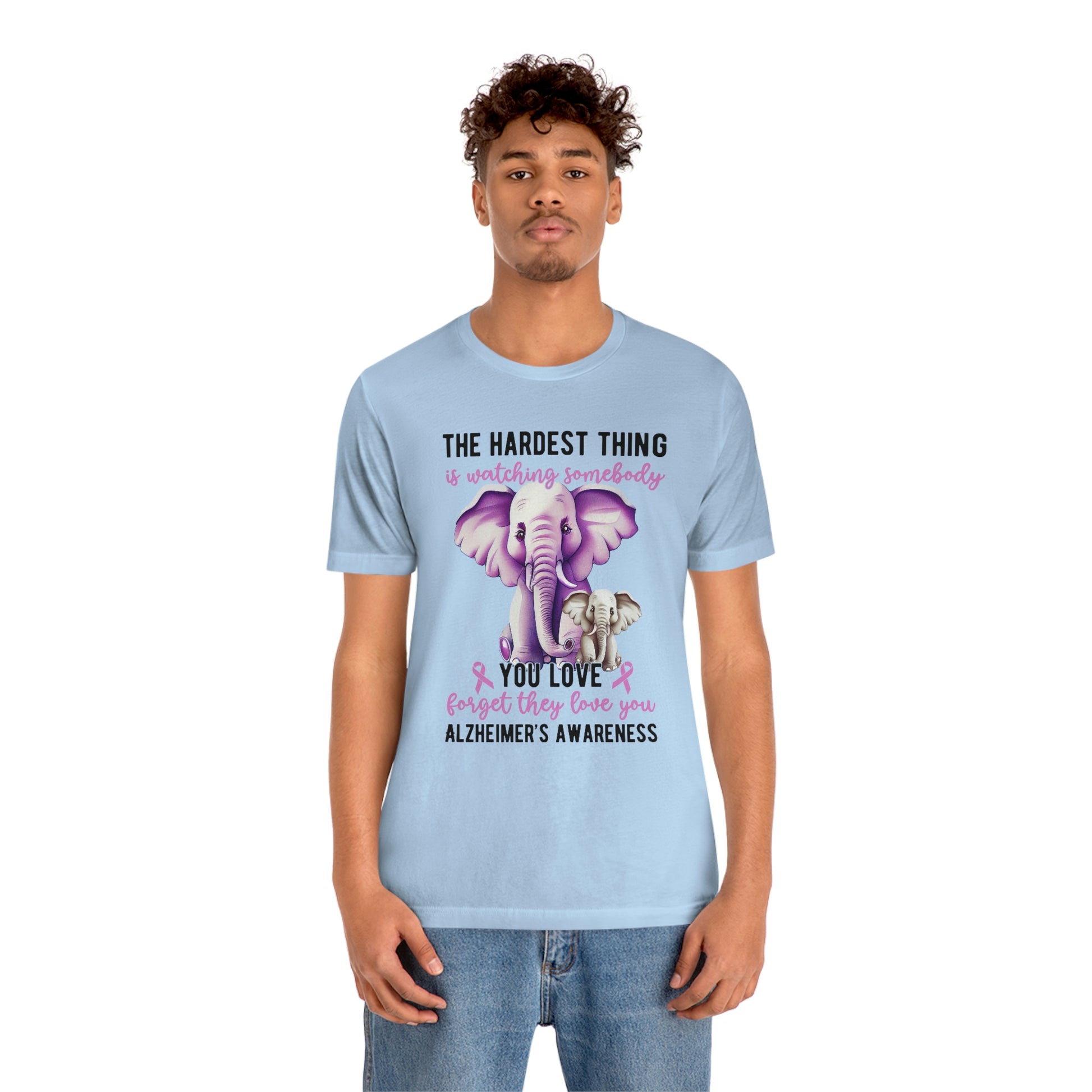 The Hardest Thing is Watching Someone You Love Forget They Love You Print Unisex Jersey Short Sleeve Tee