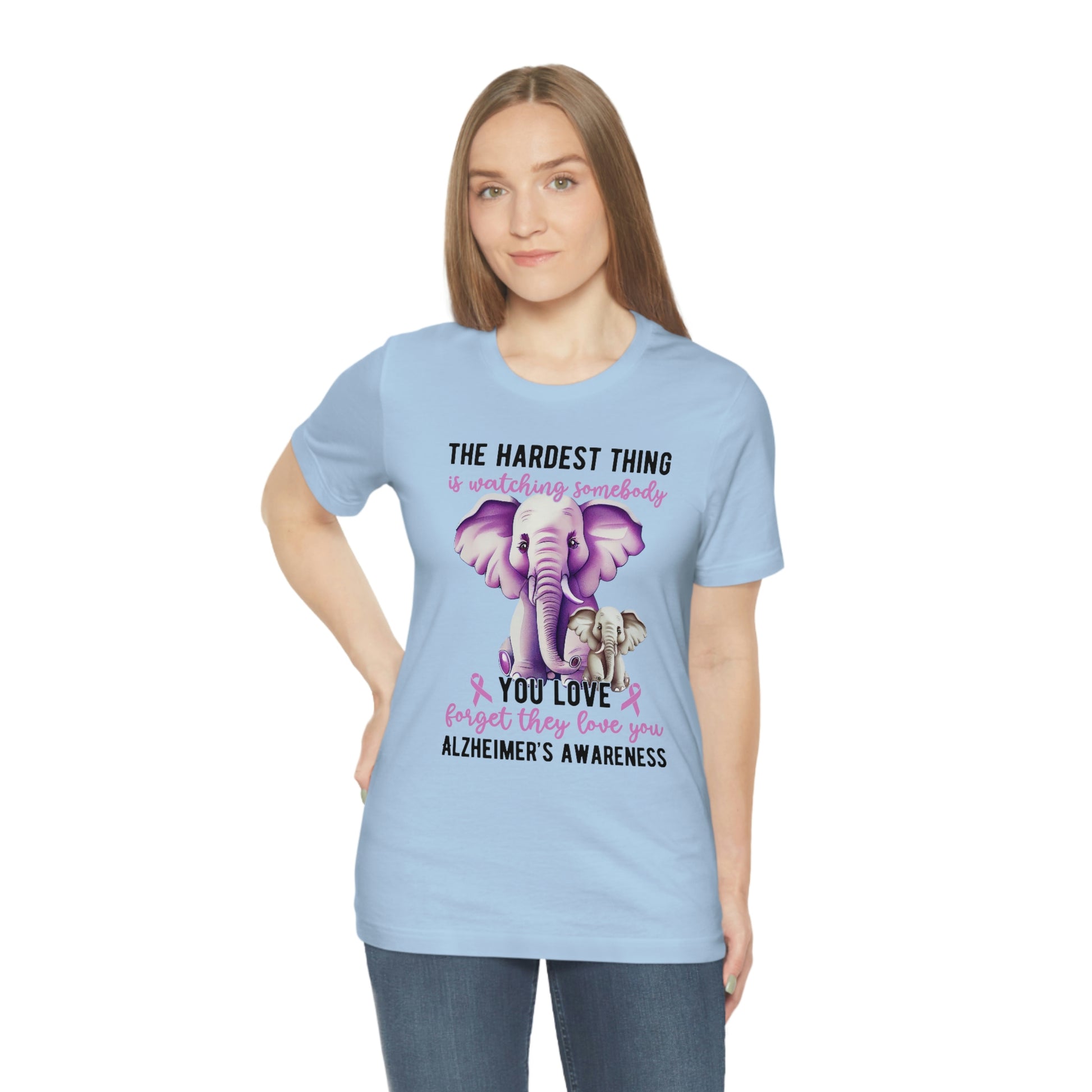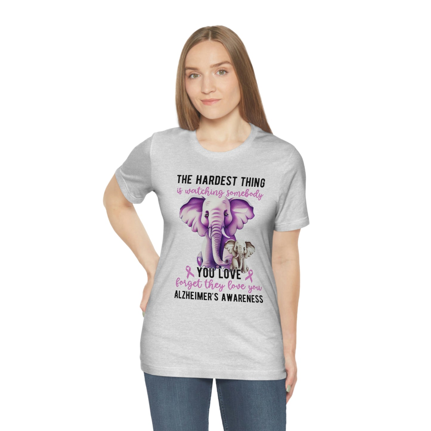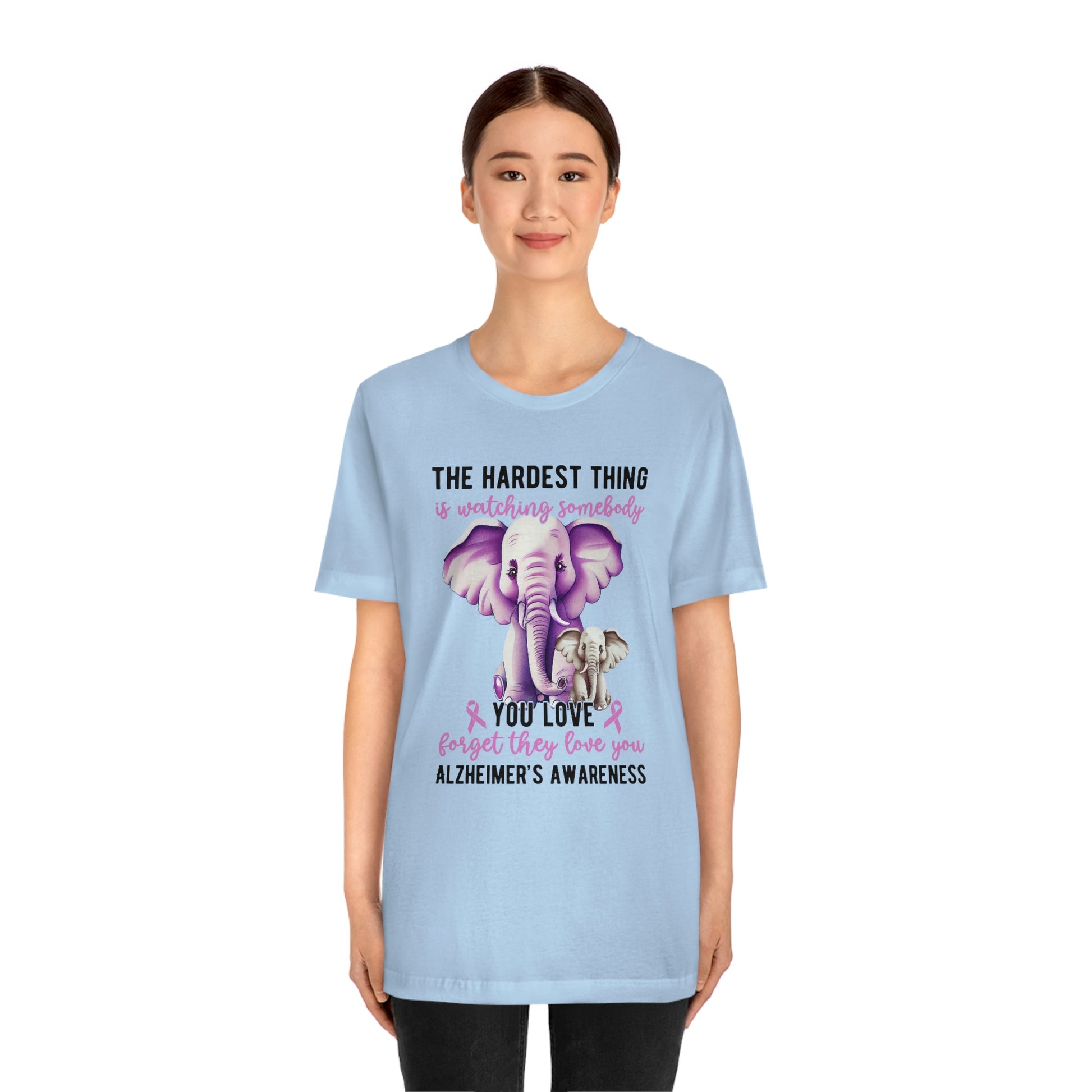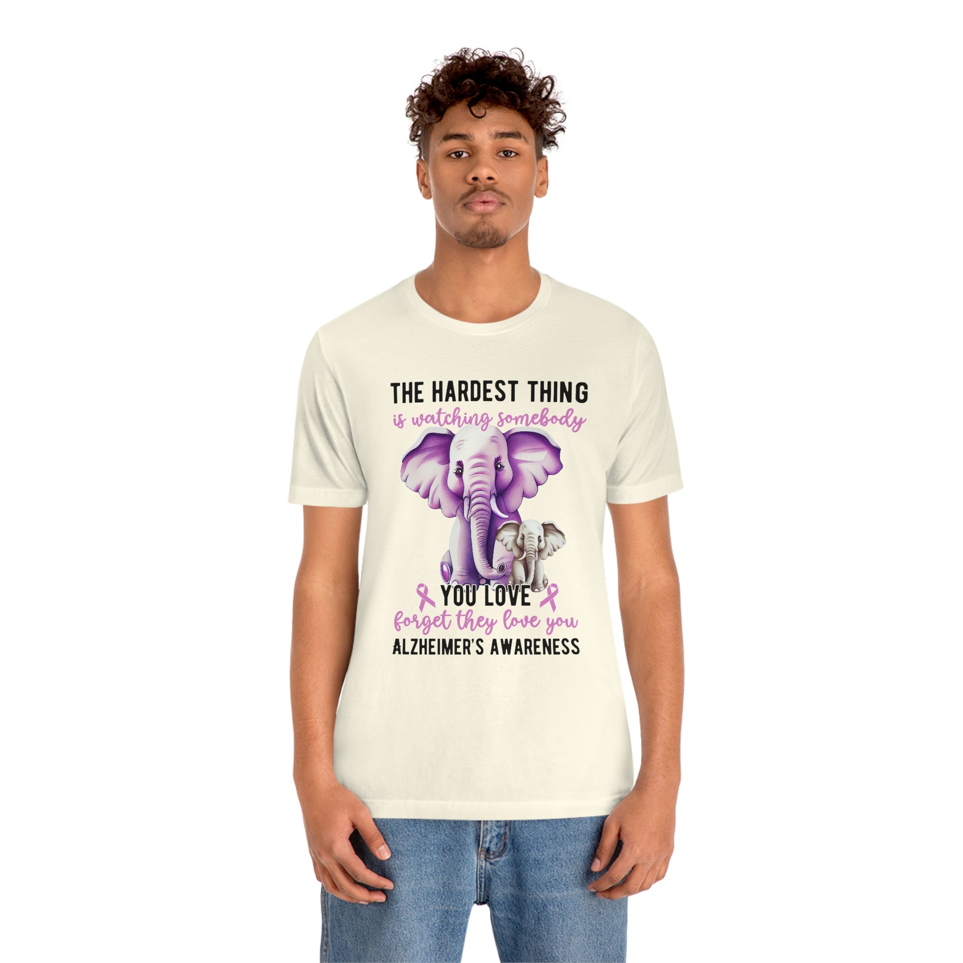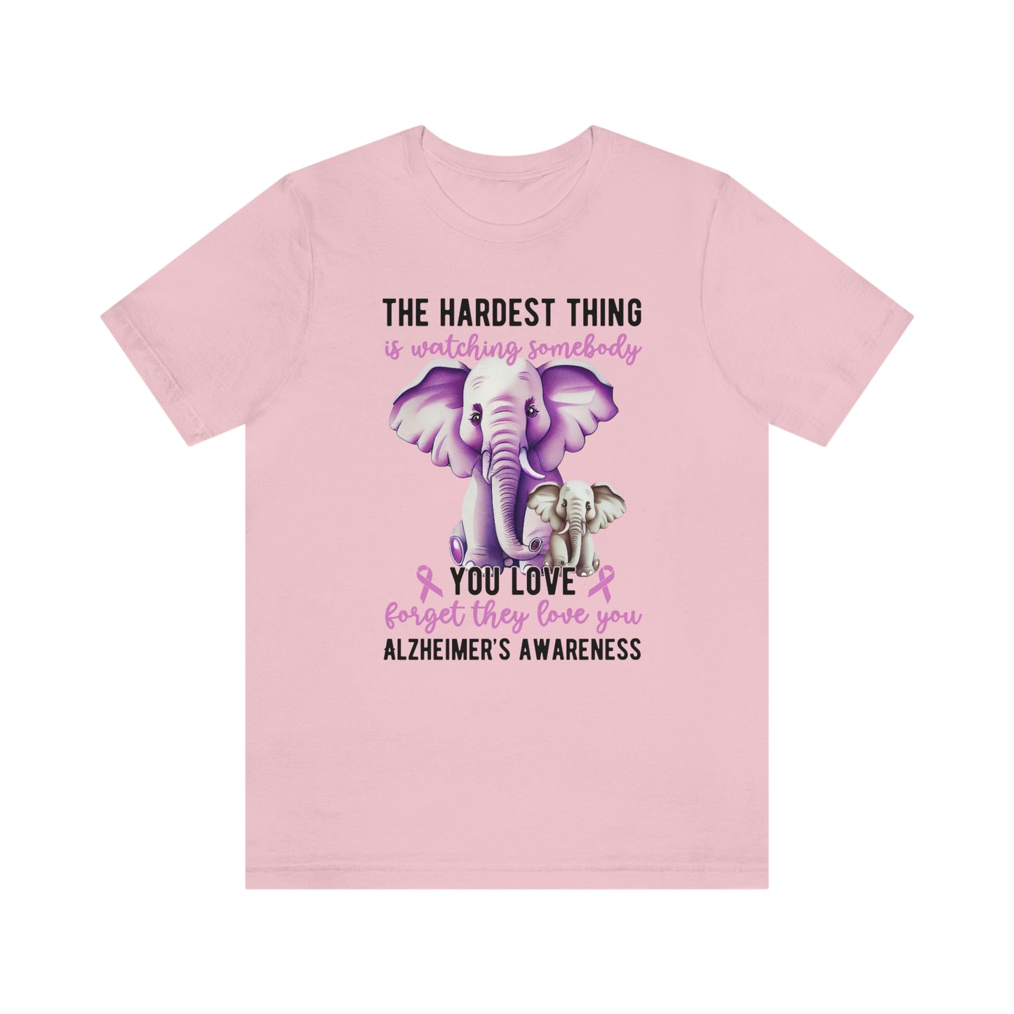 The Hardest Thing is Watching Someone You Love Forget They Love You Print Unisex Jersey Short Sleeve Tee