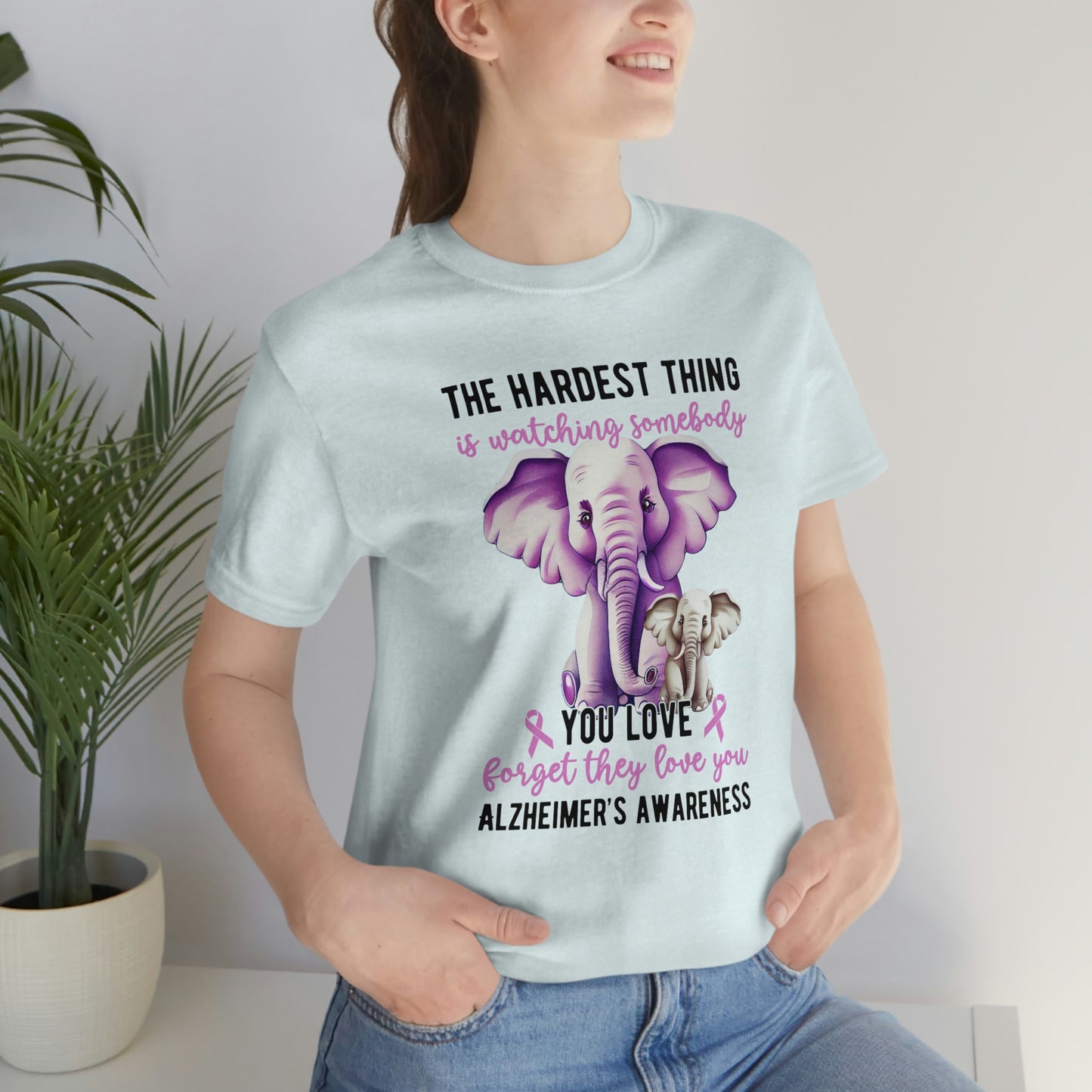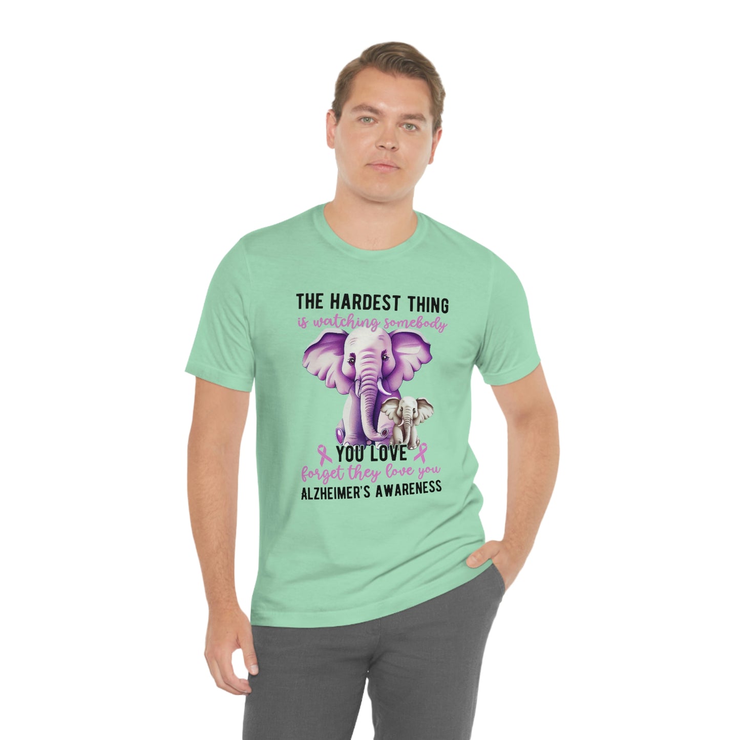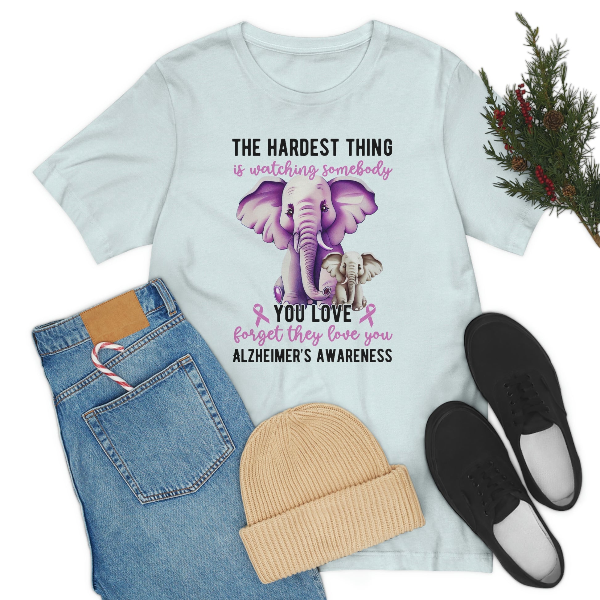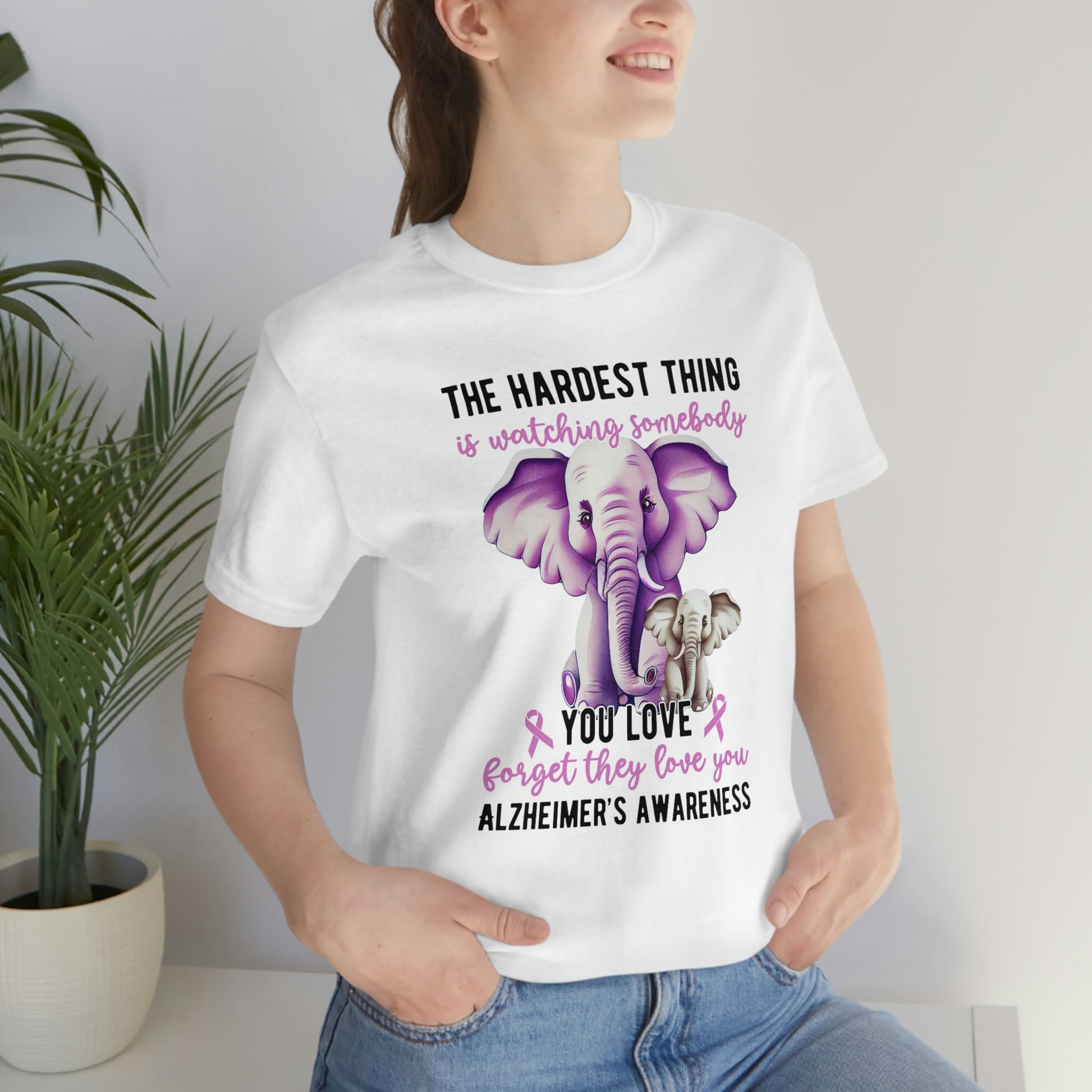 The Hardest Thing is Watching Someone You Love Forget They Love You Print Unisex Jersey Short Sleeve Tee