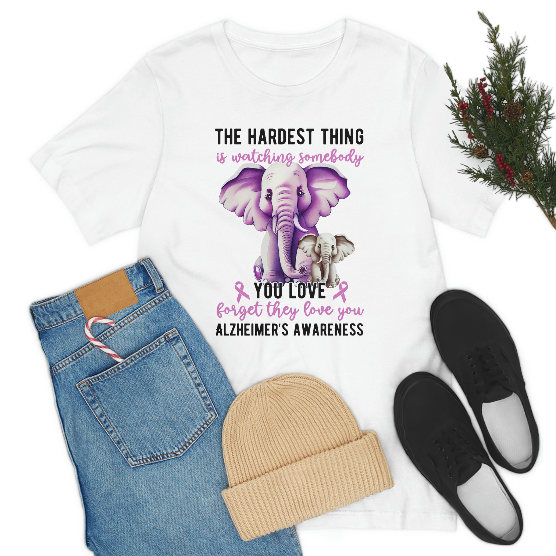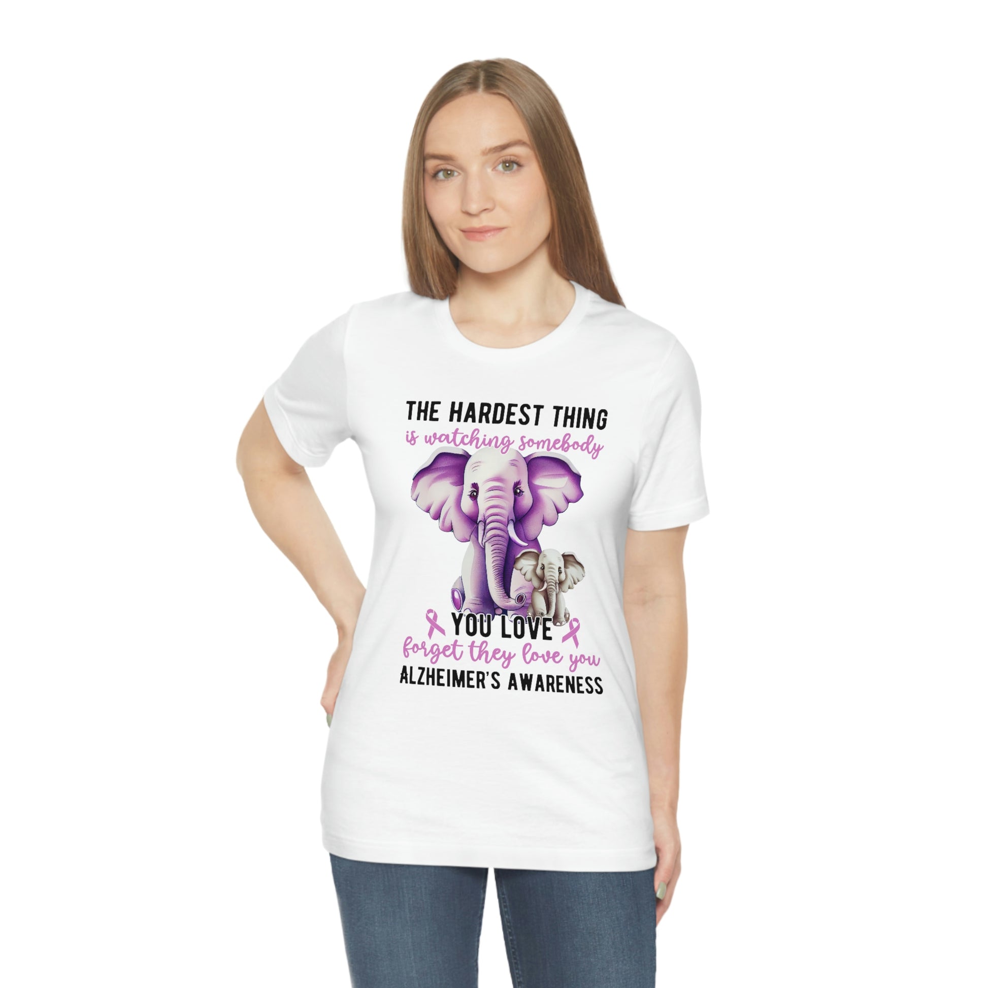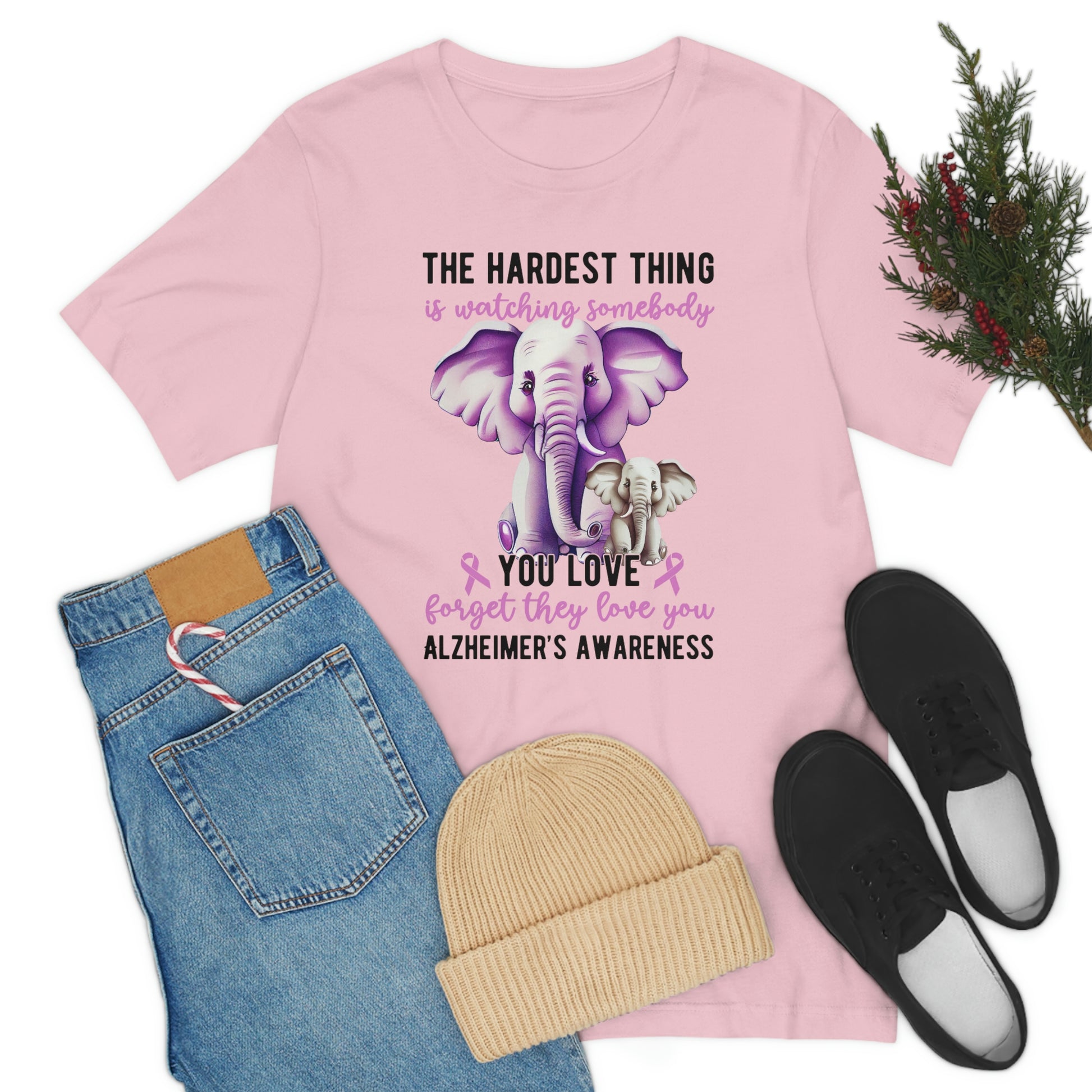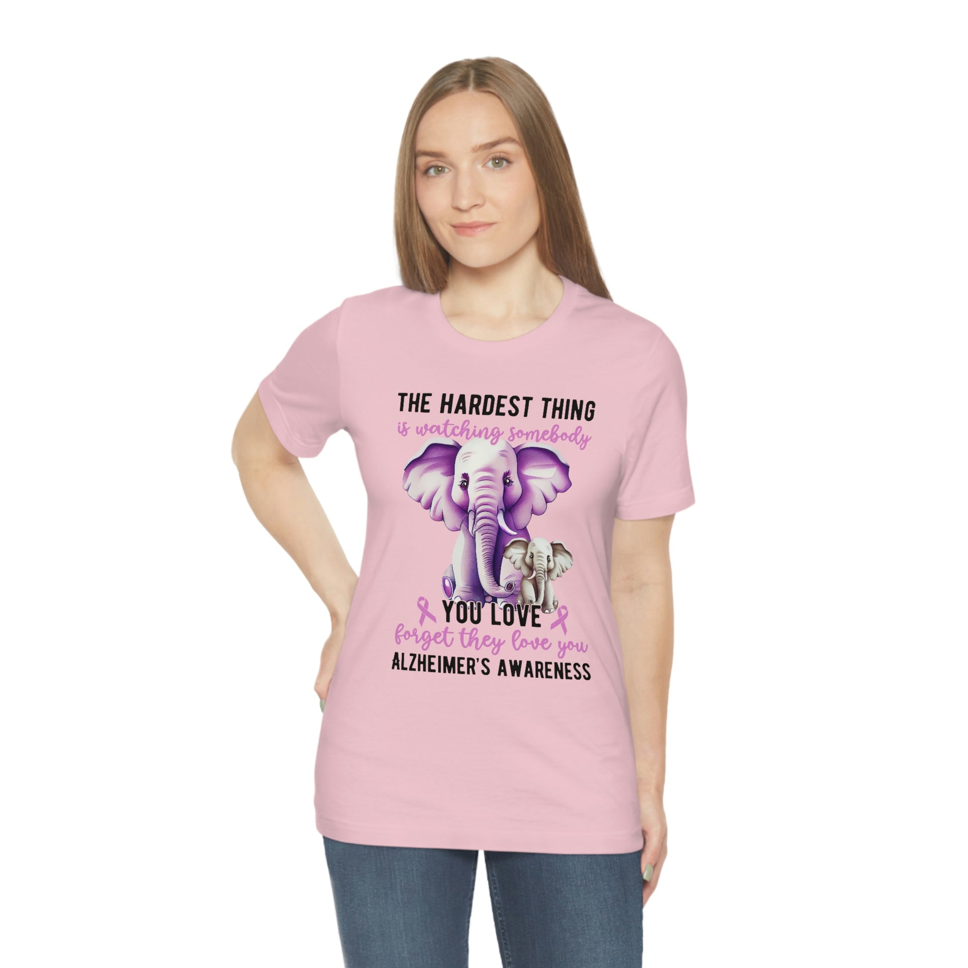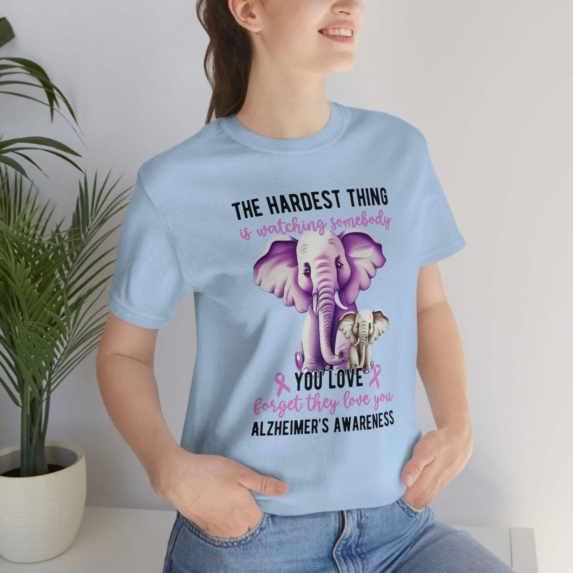 The Hardest Thing is Watching Someone You Love Forget They Love You Print Unisex Jersey Short Sleeve Tee