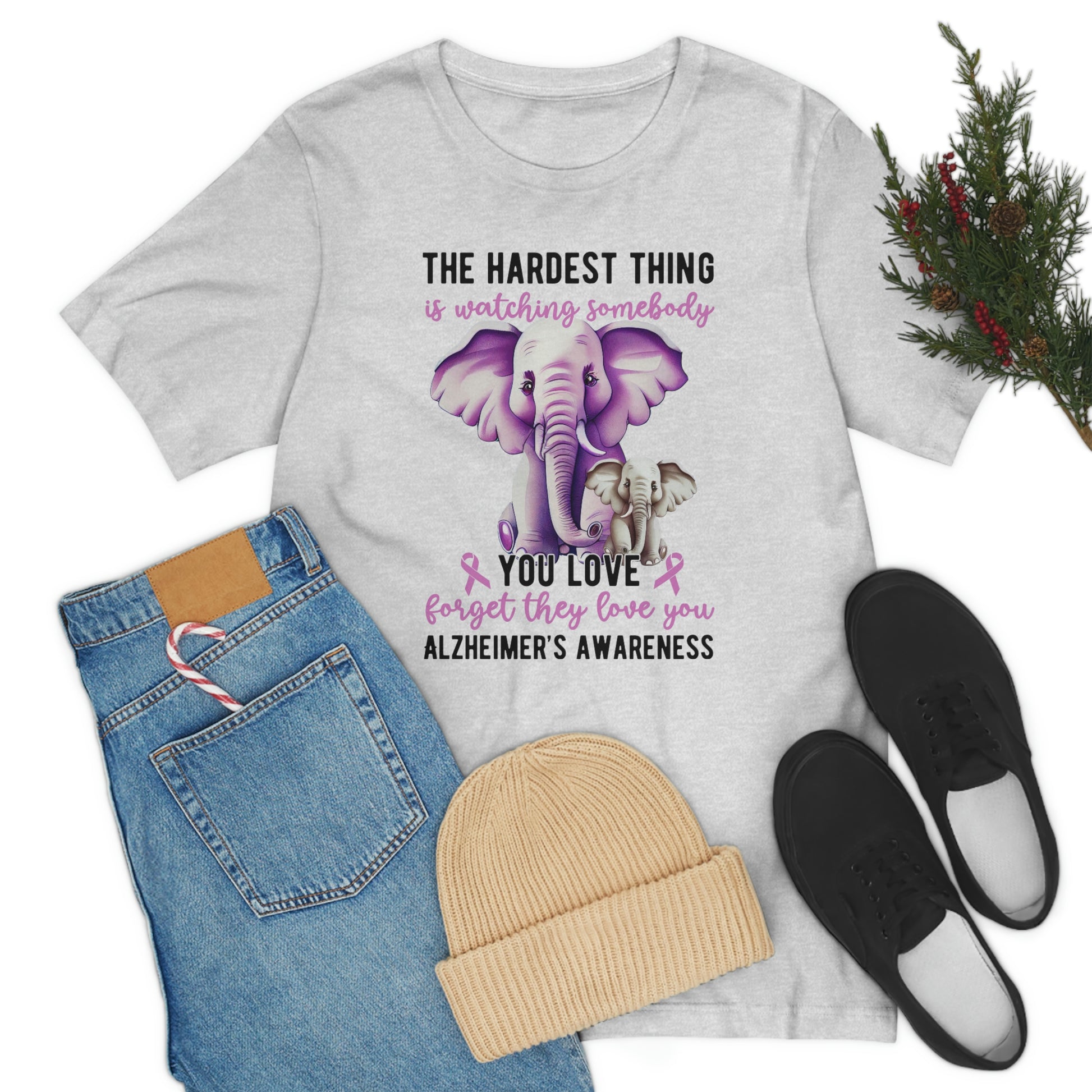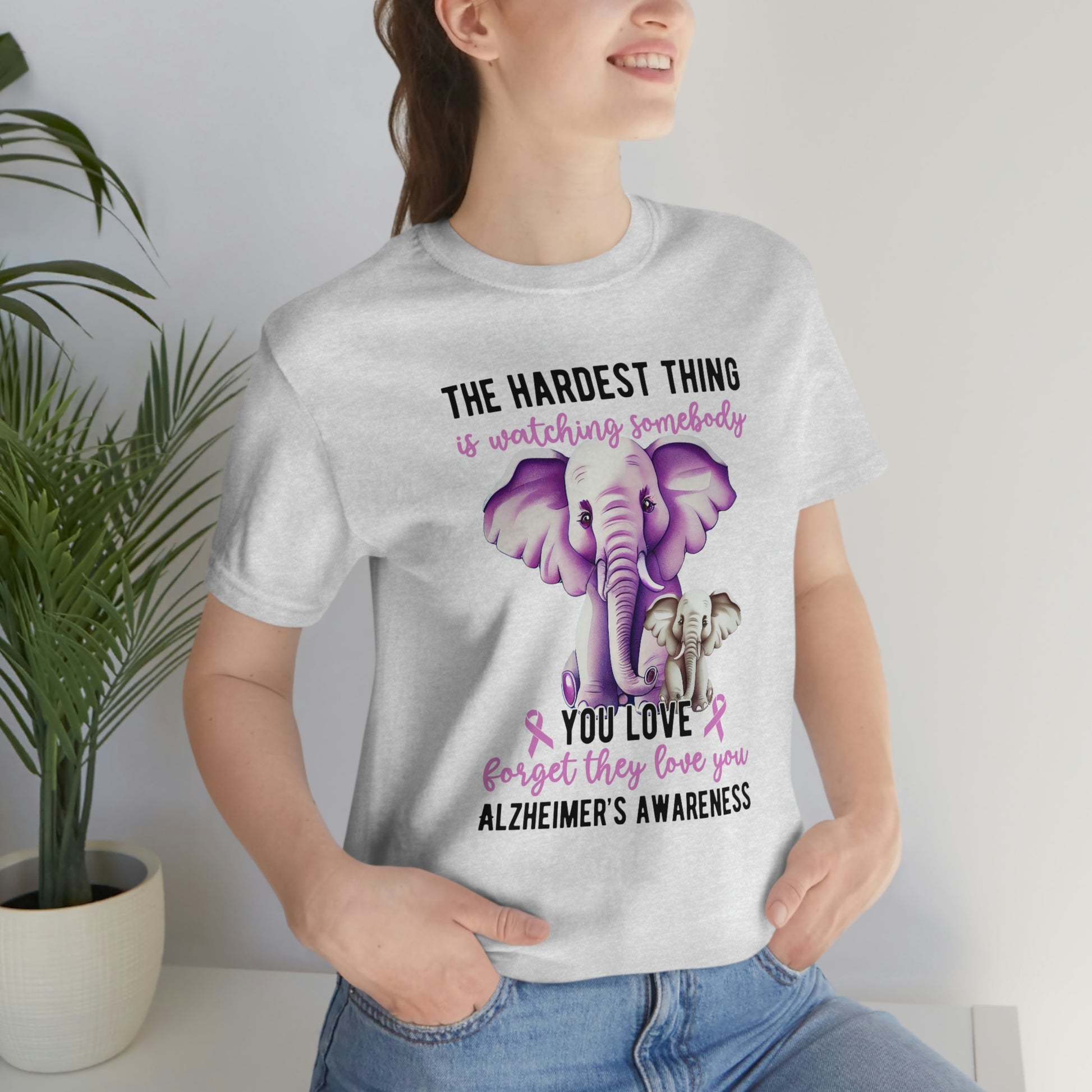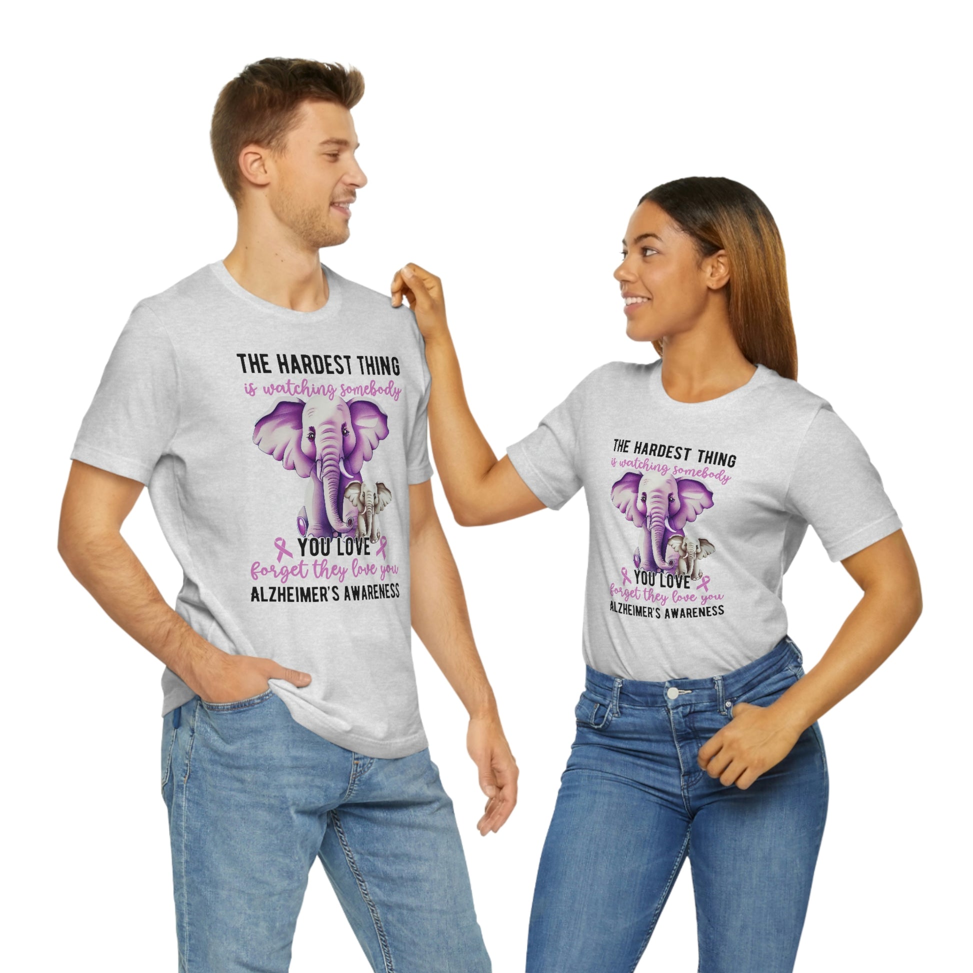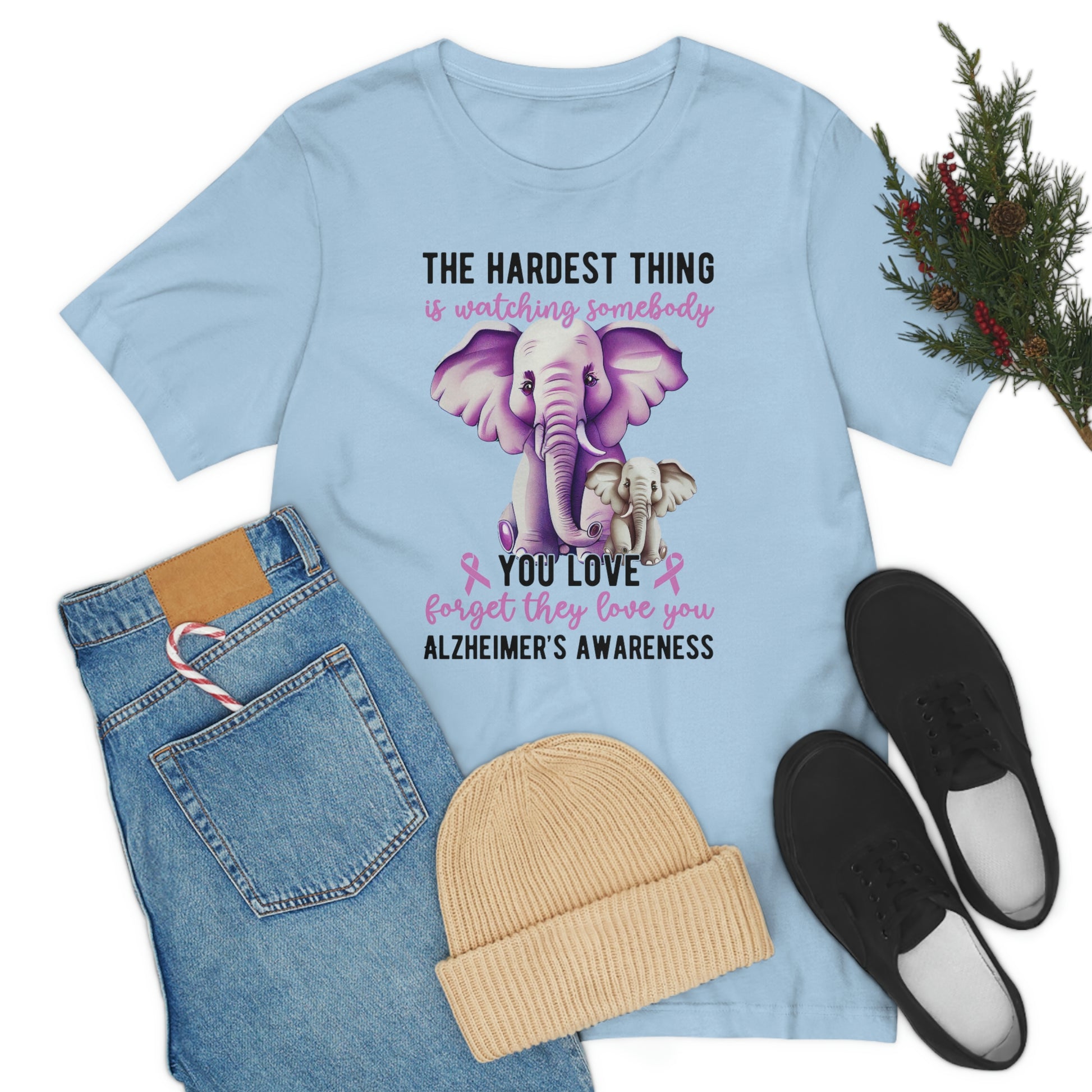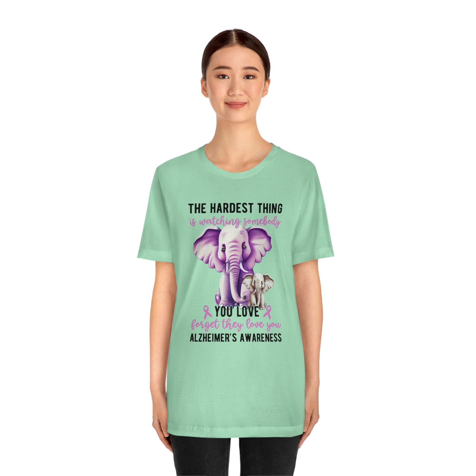 The Hardest Thing is Watching Someone You Love Forget They Love You Print Unisex Jersey Short Sleeve Tee