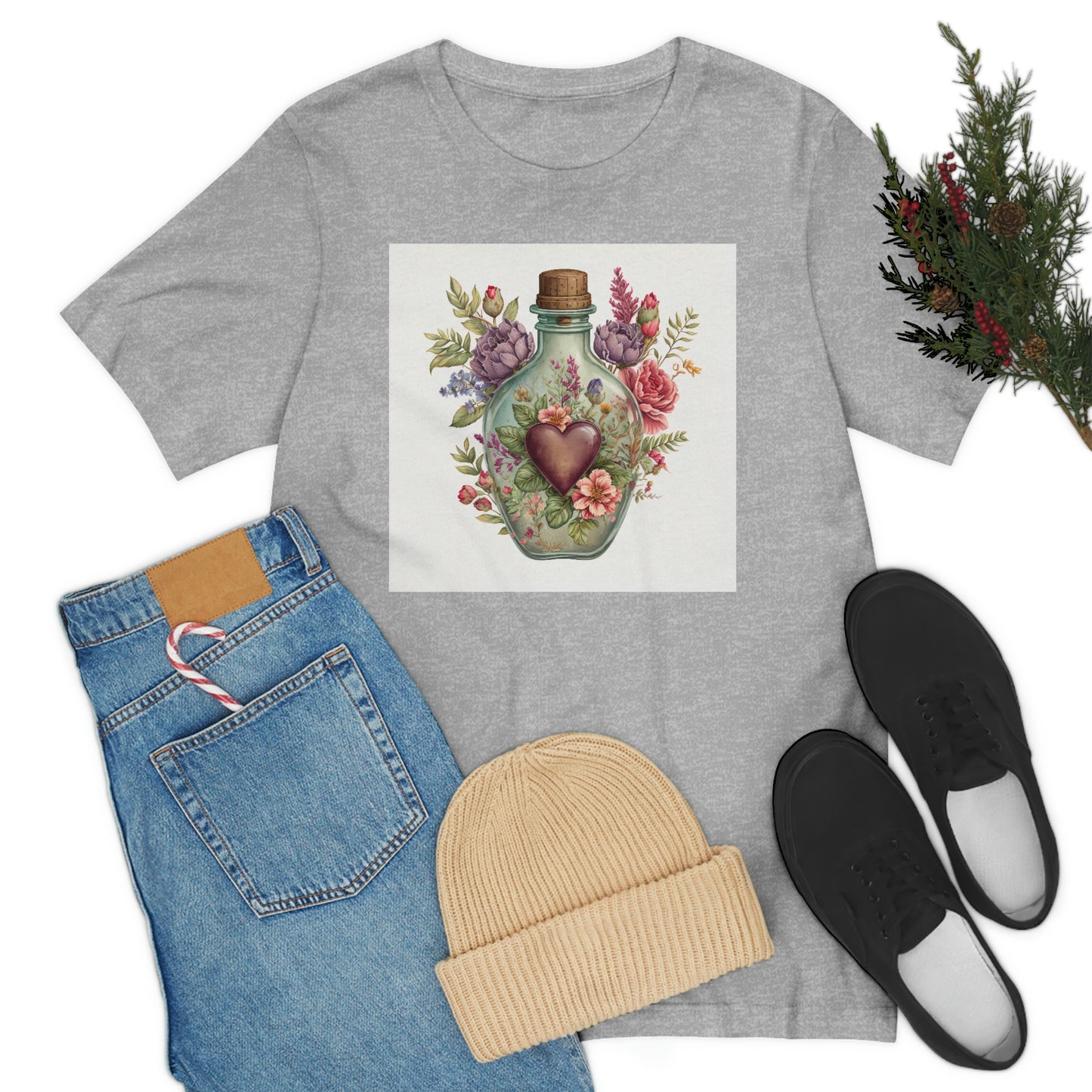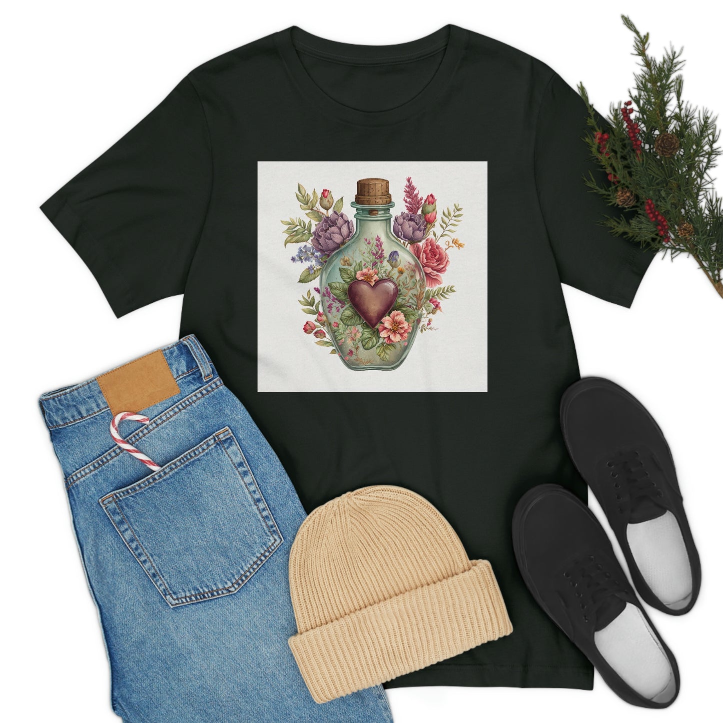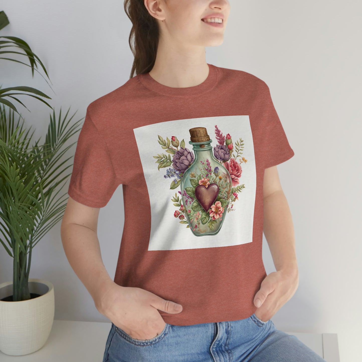 Vintage Bottle Floral Unisex Jersey Short Sleeve Tee