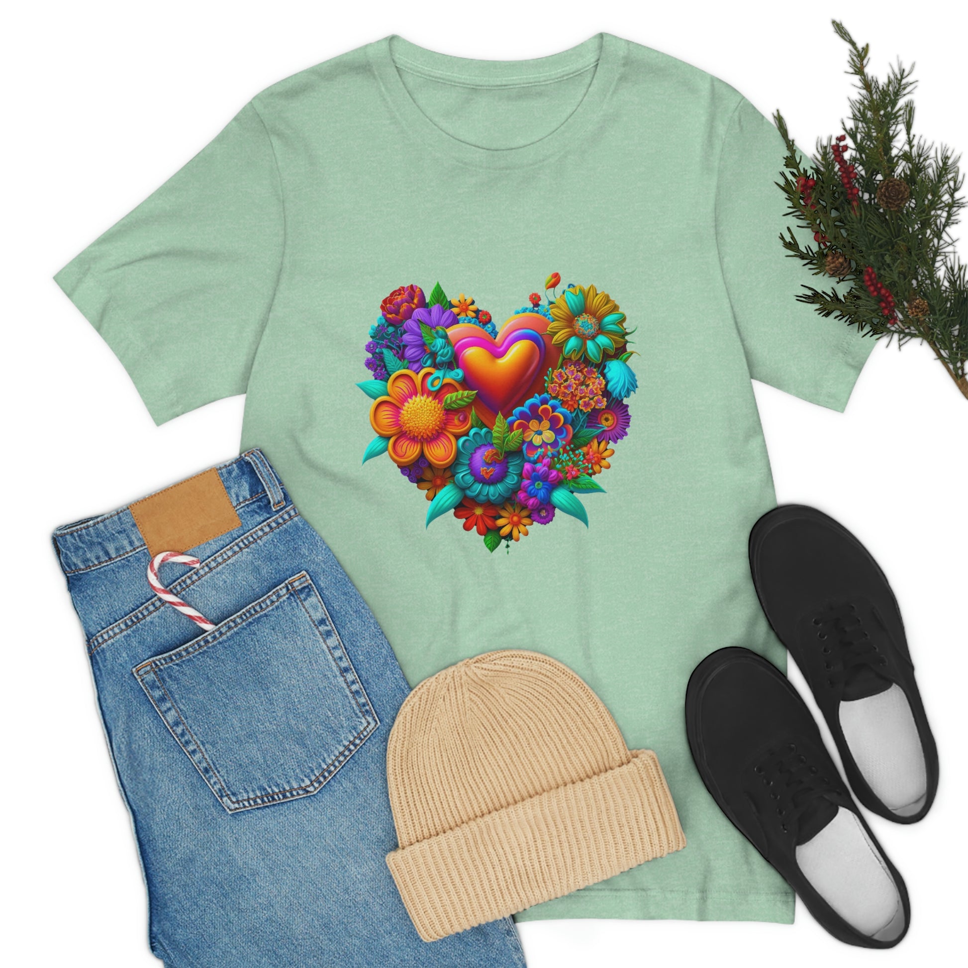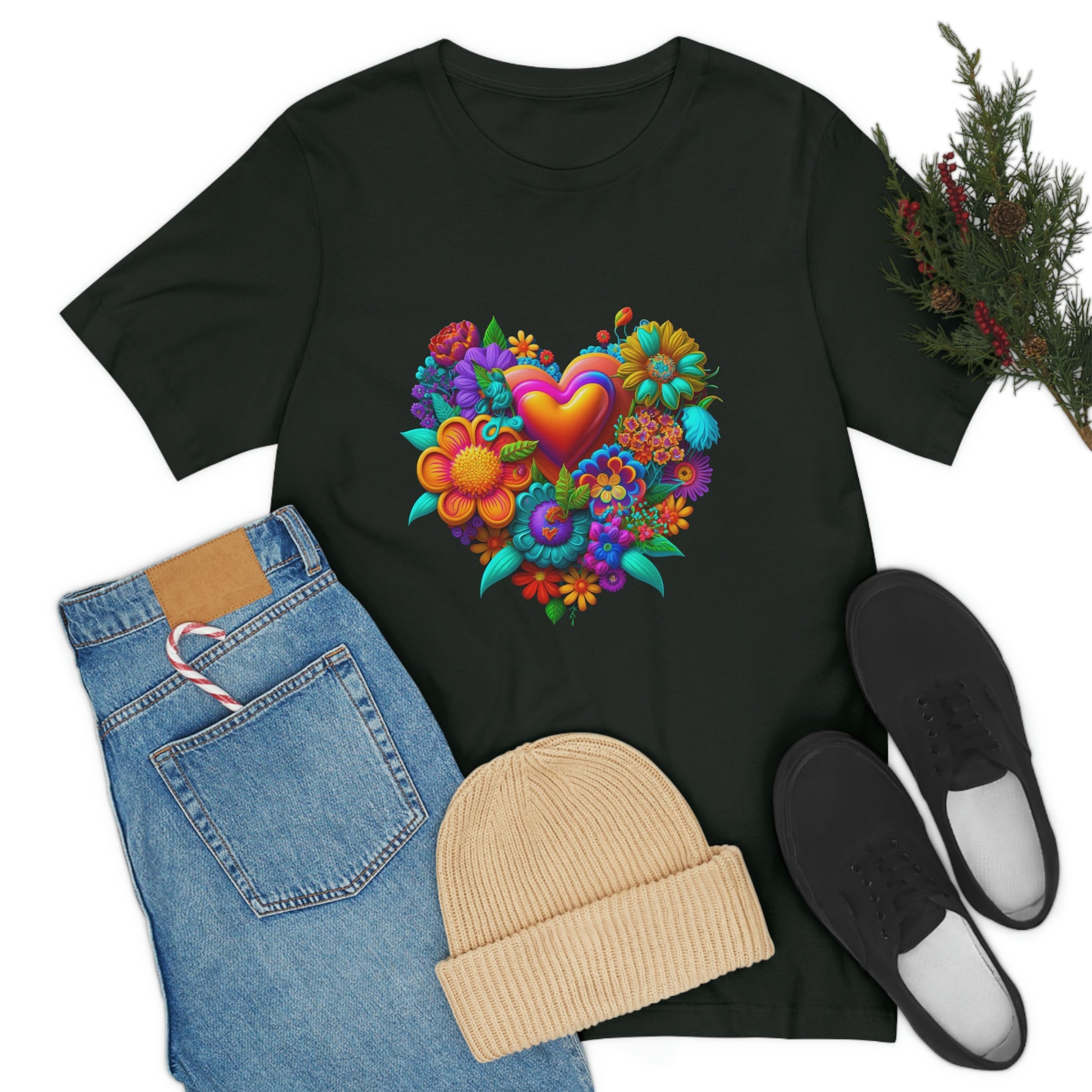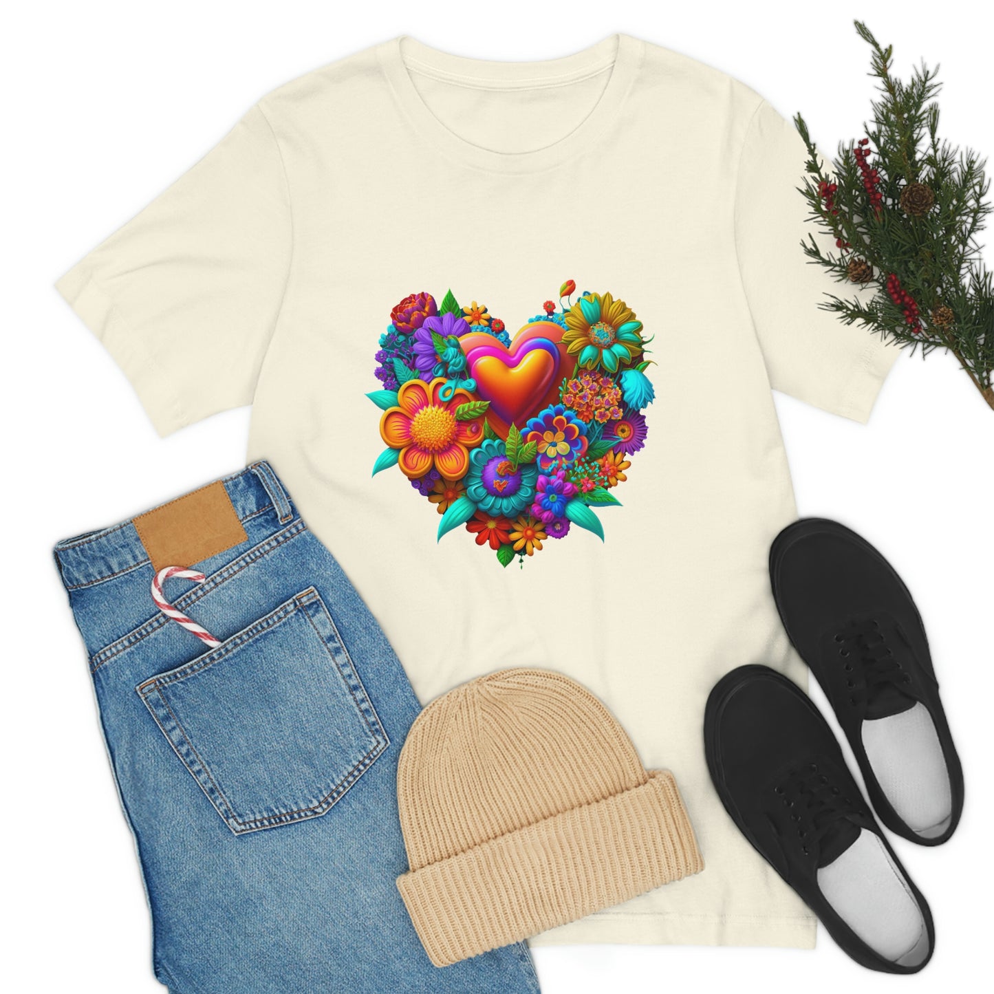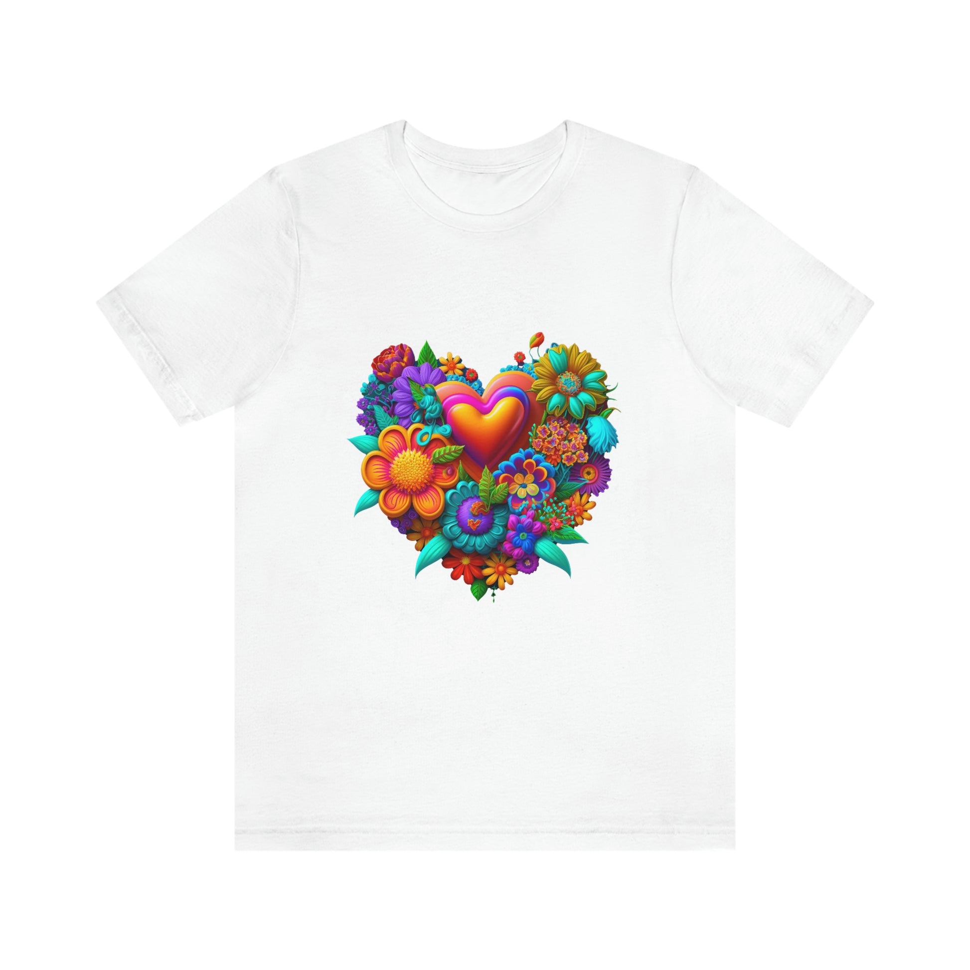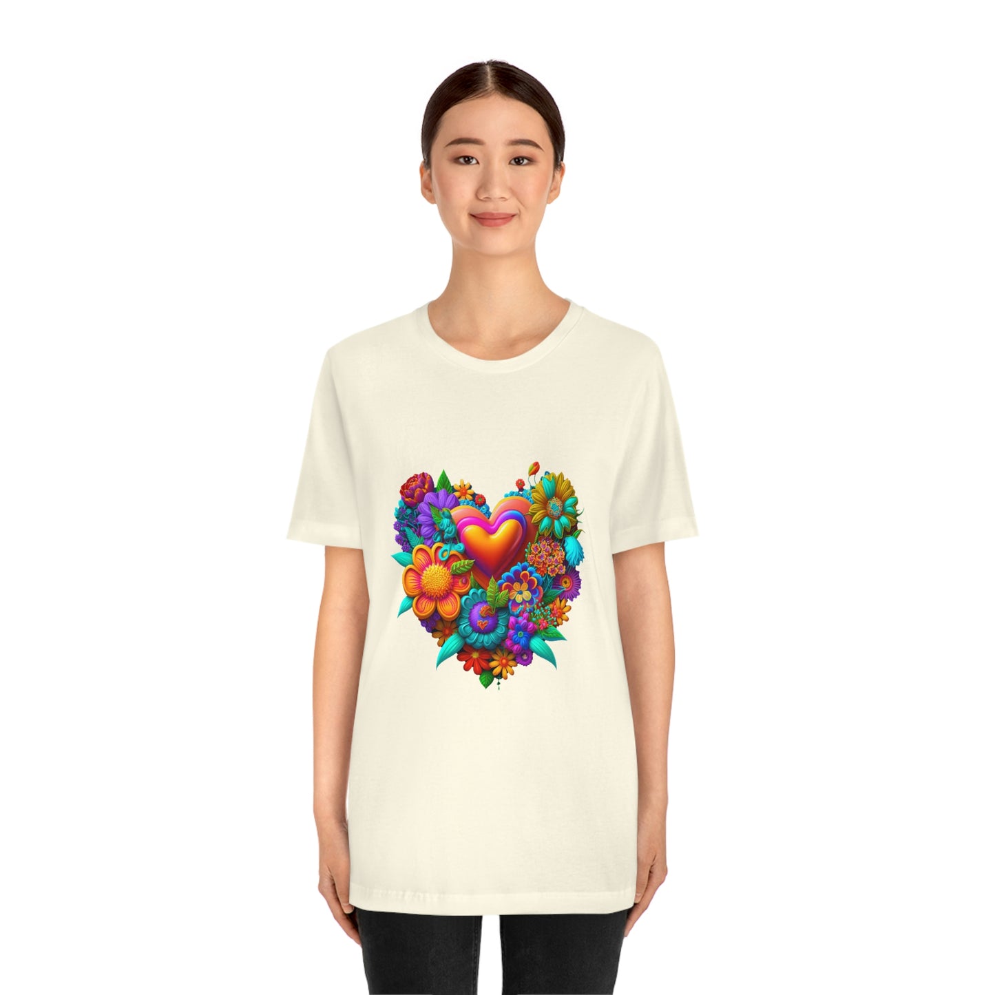 Bright Floral Heart Unisex Jersey Short Sleeve Tee