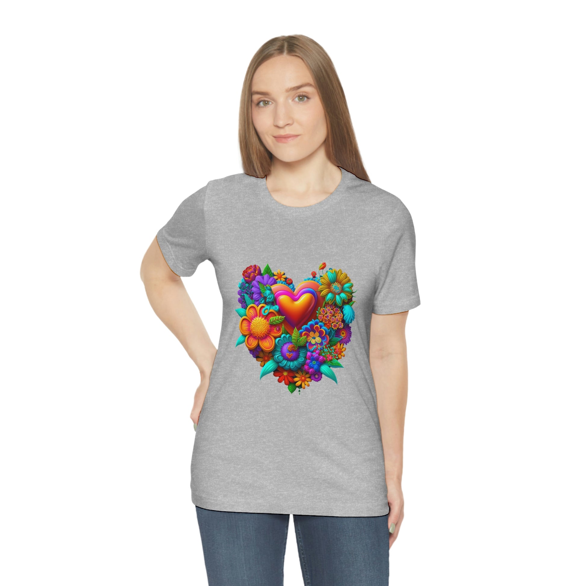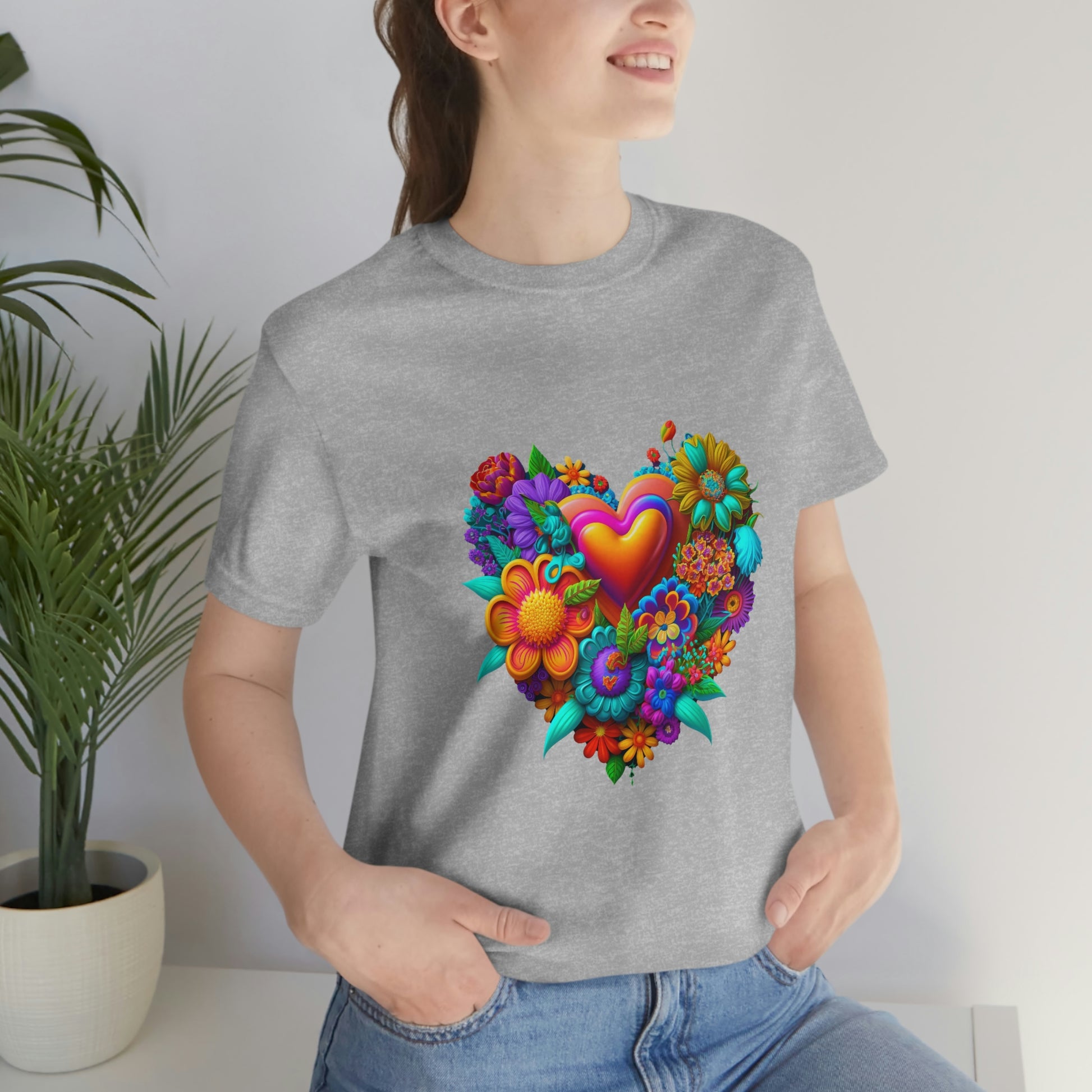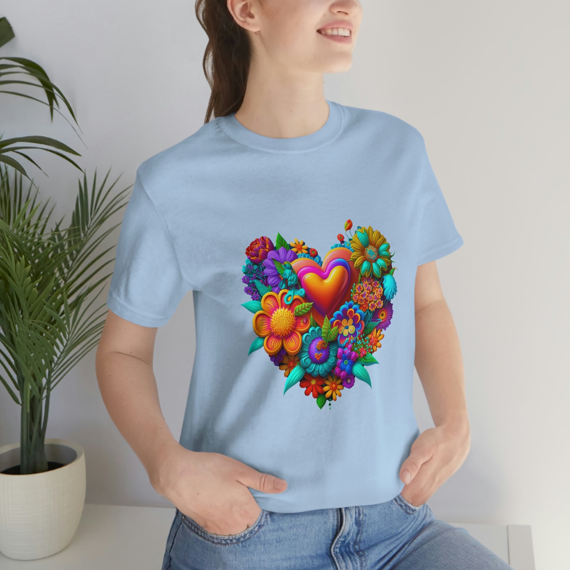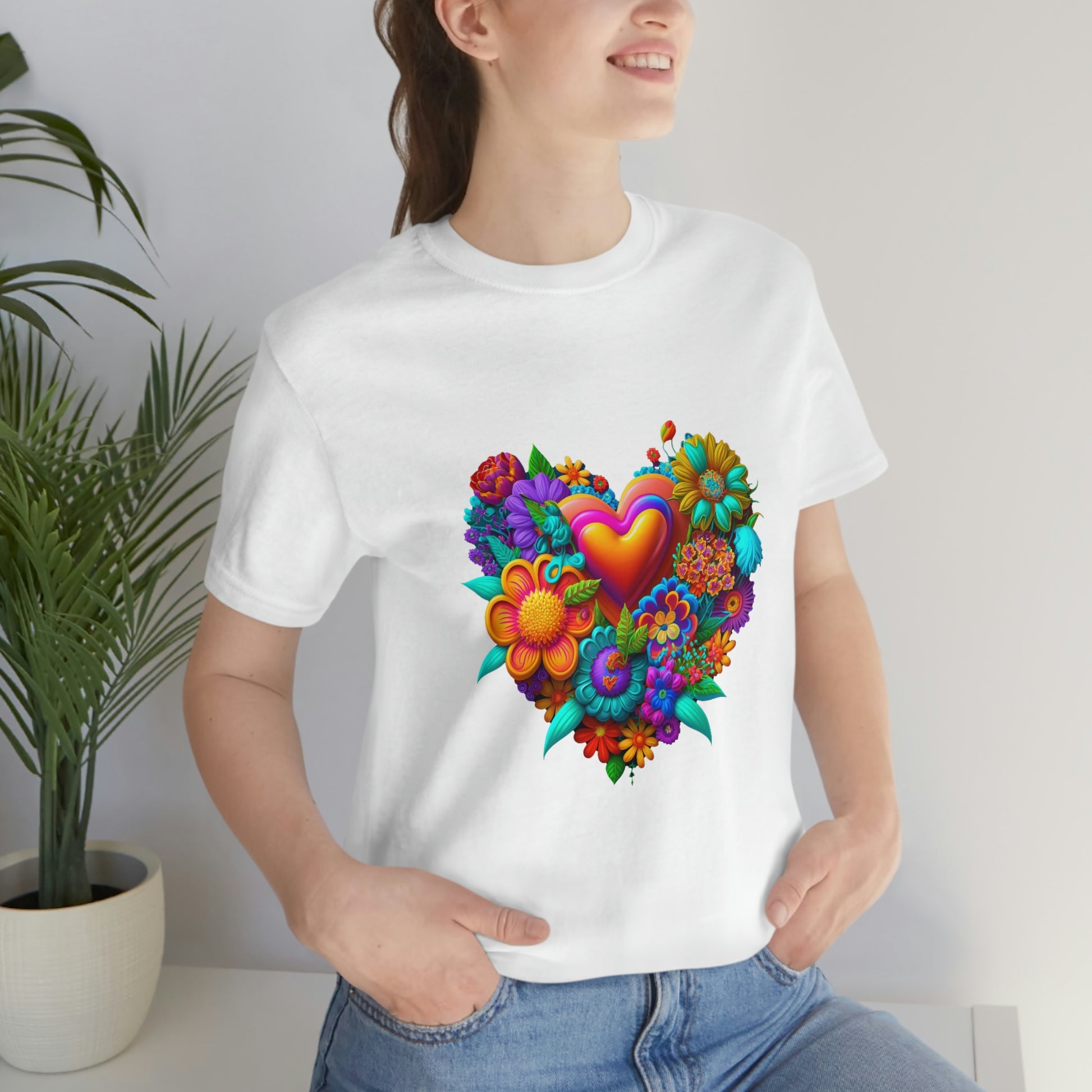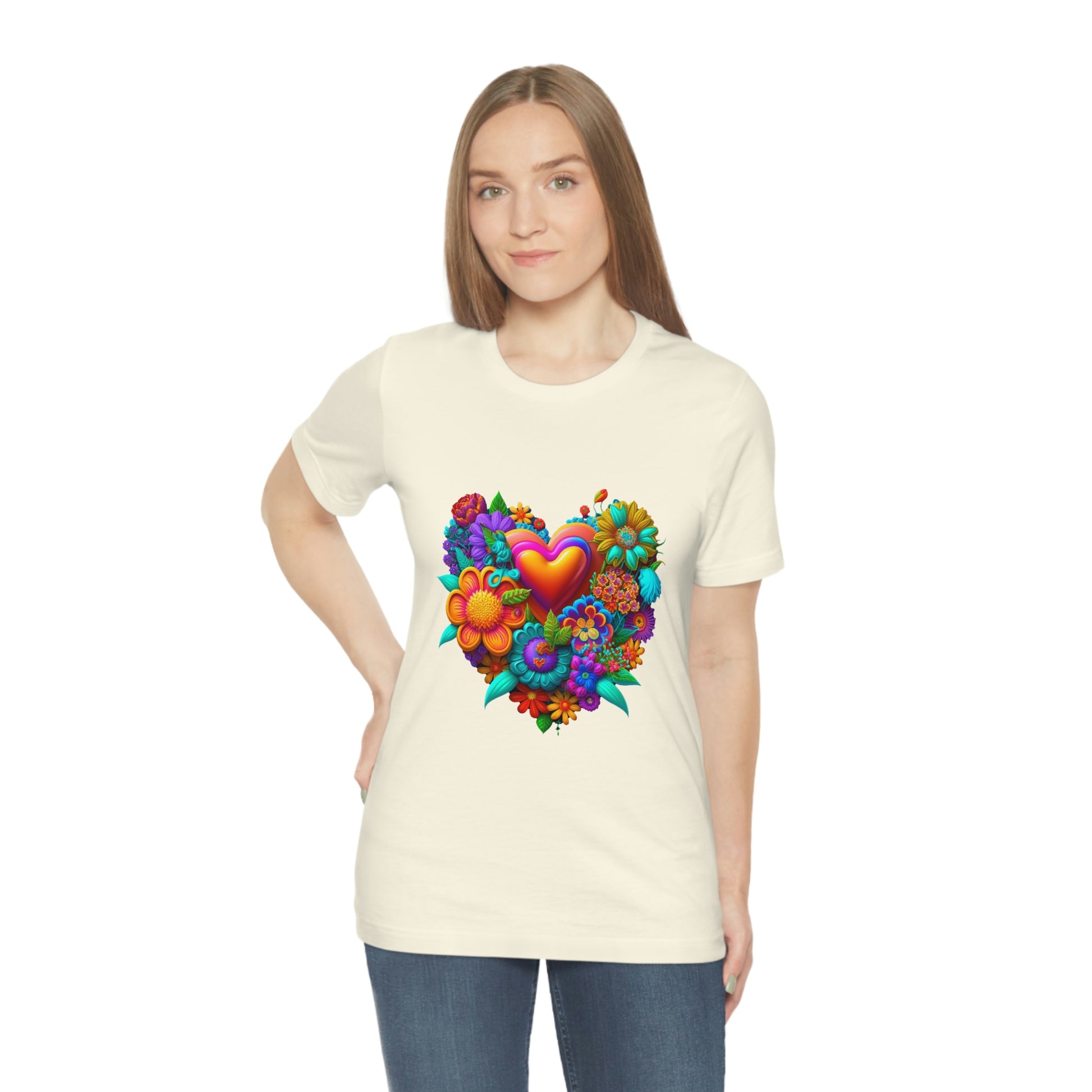 Bright Floral Heart Unisex Jersey Short Sleeve Tee
