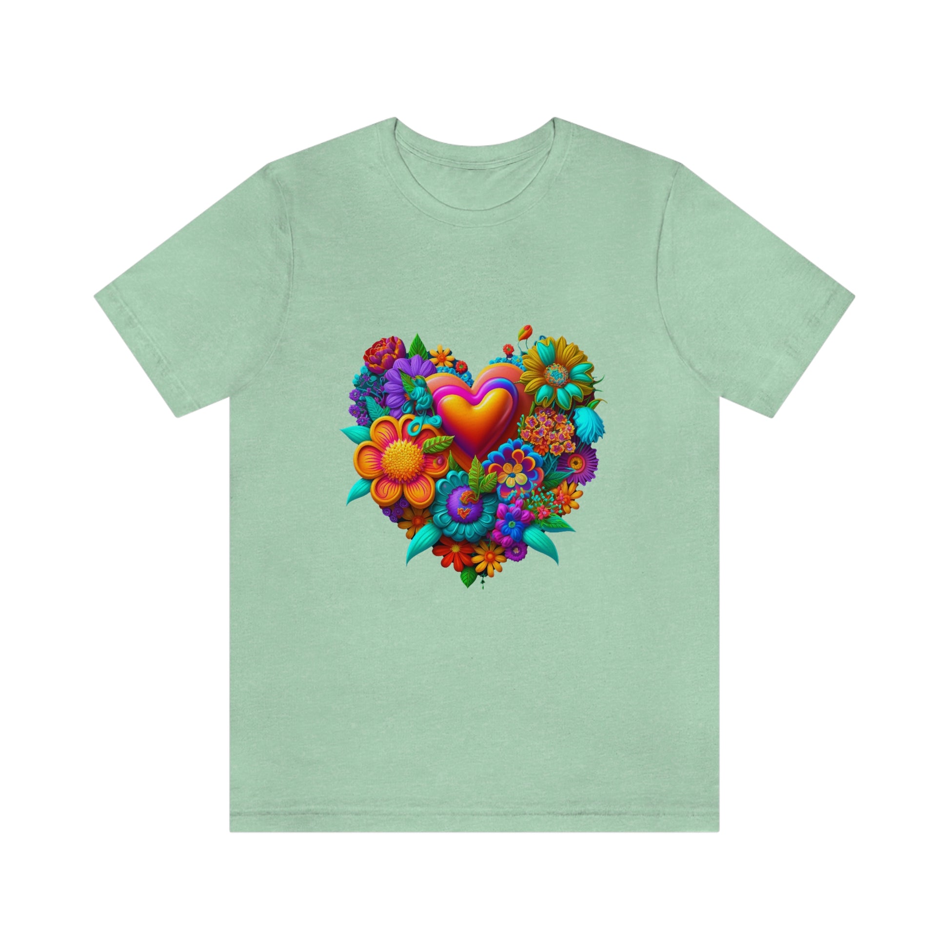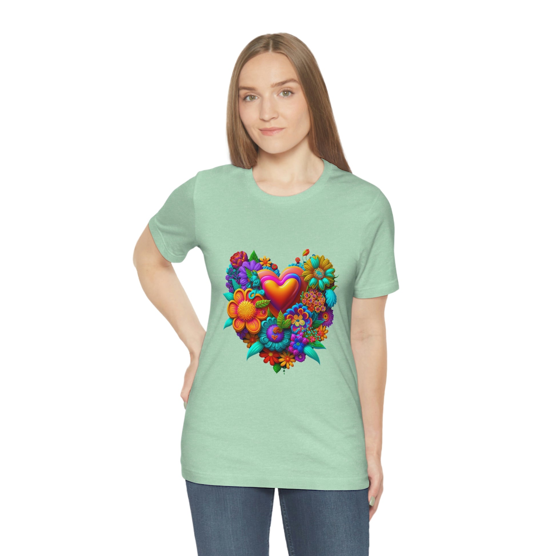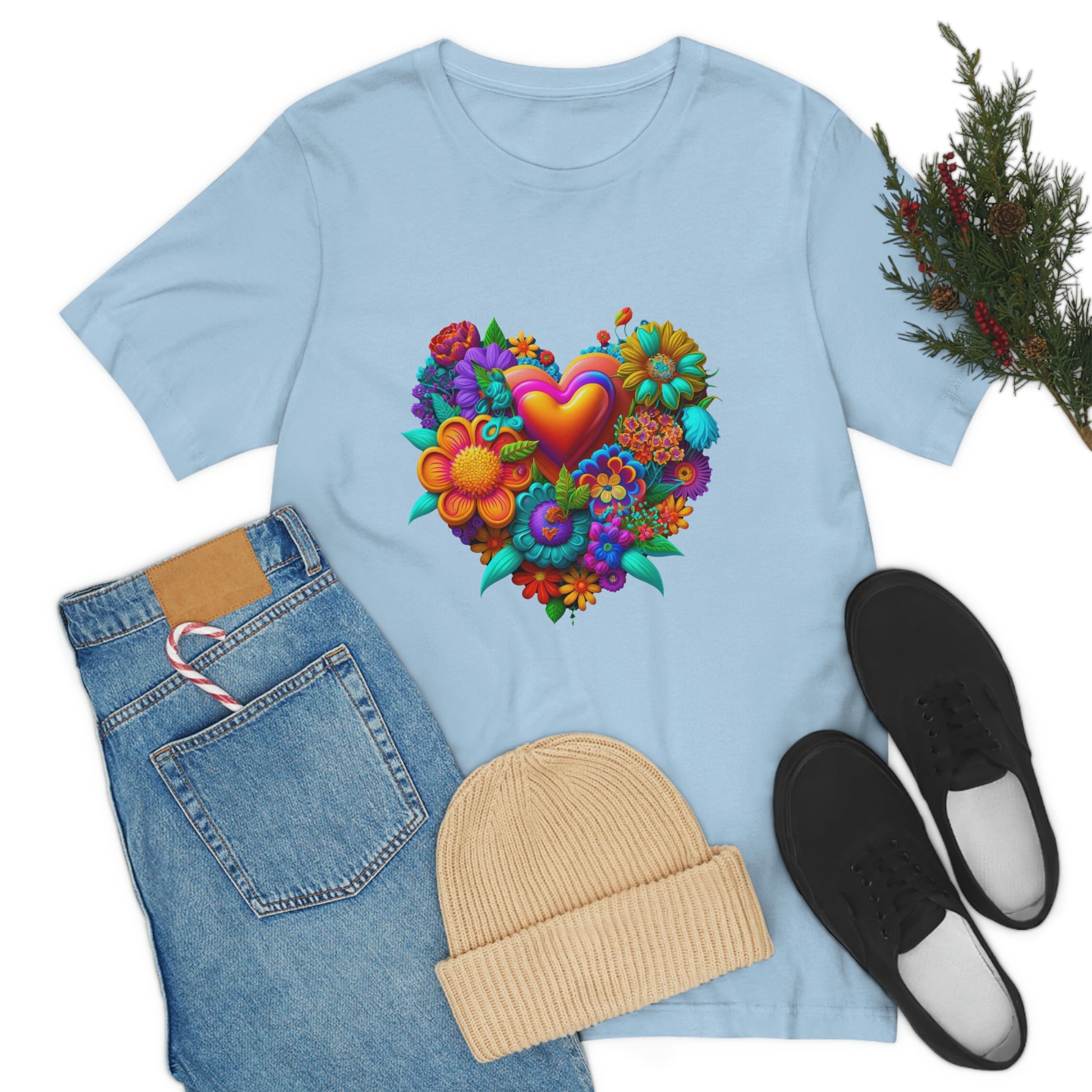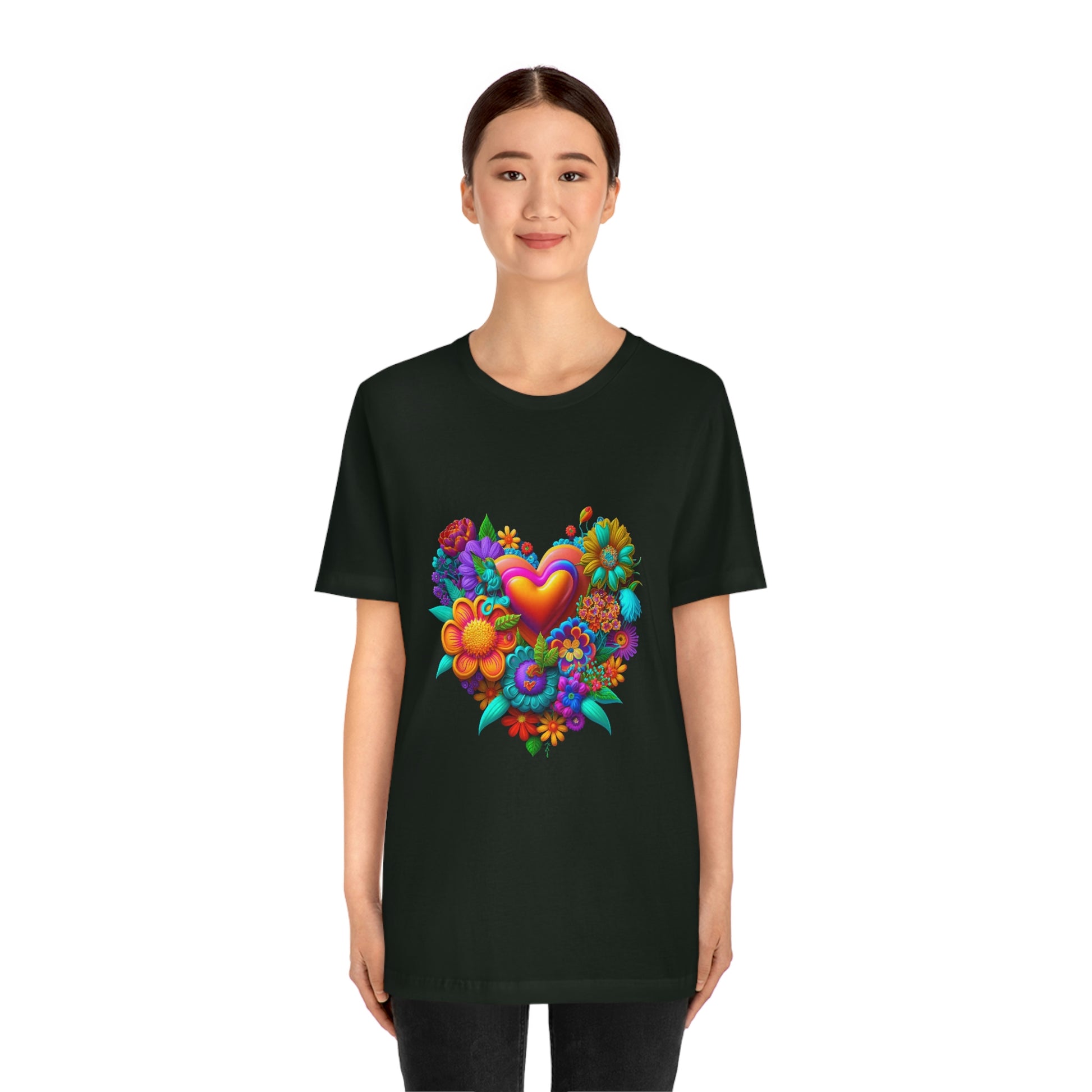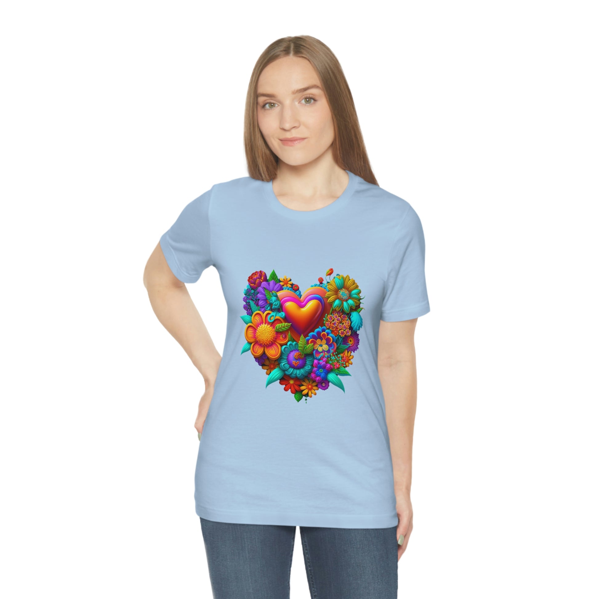 Bright Floral Heart Unisex Jersey Short Sleeve Tee