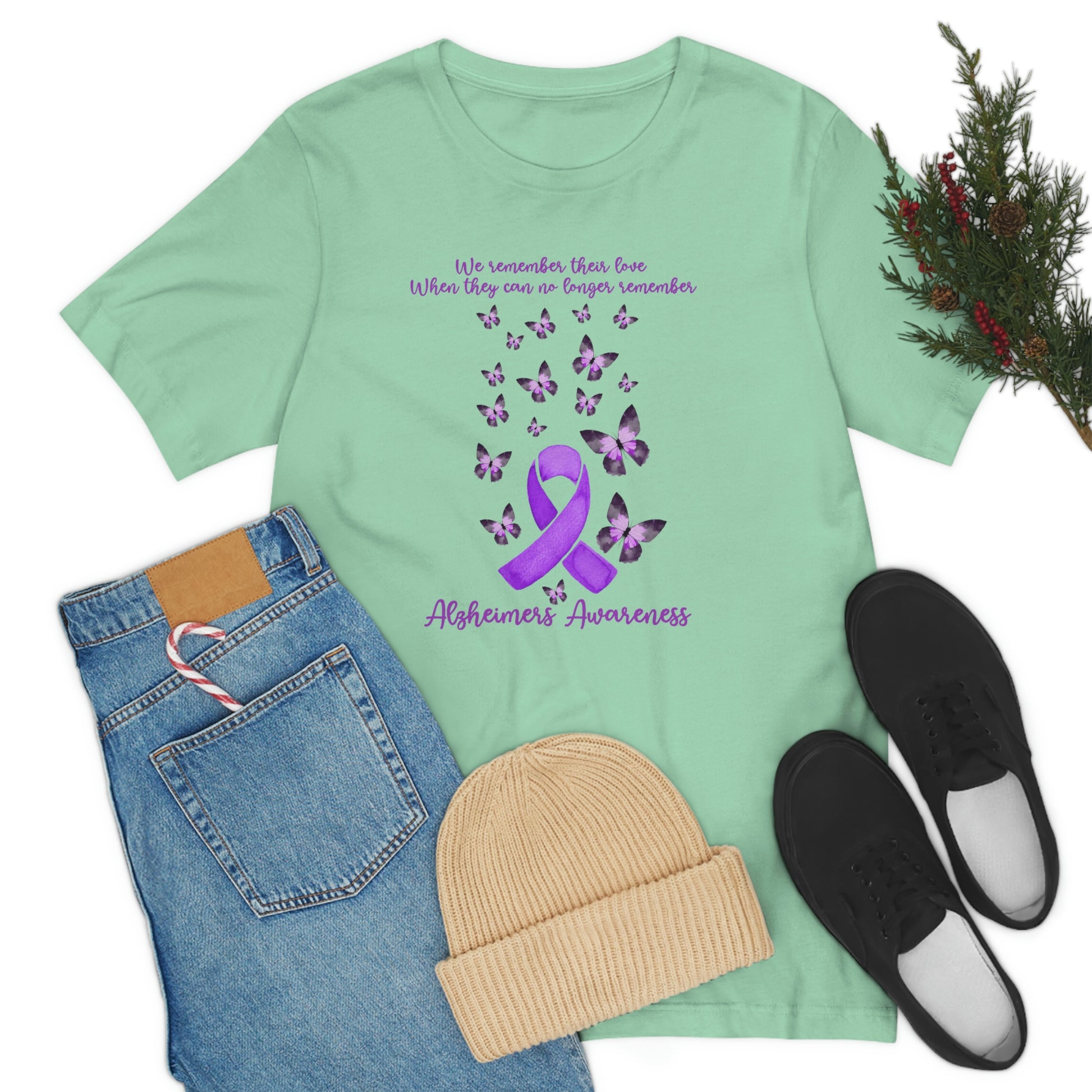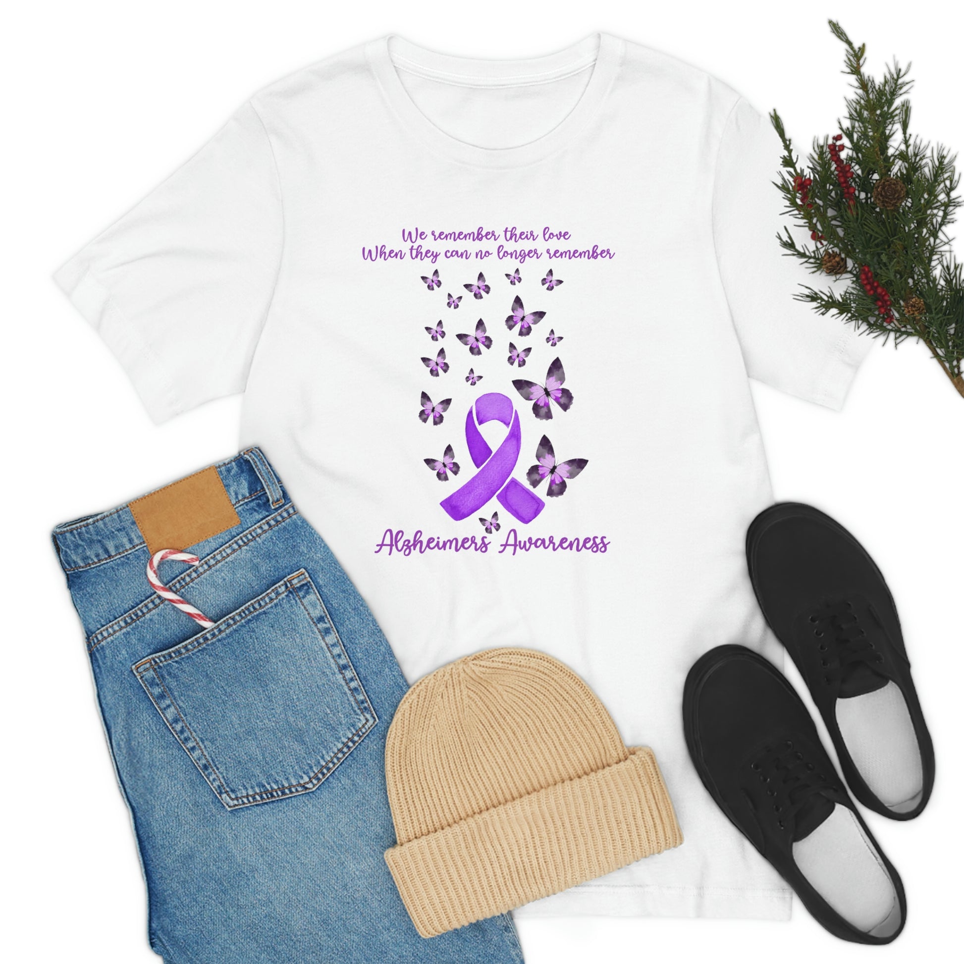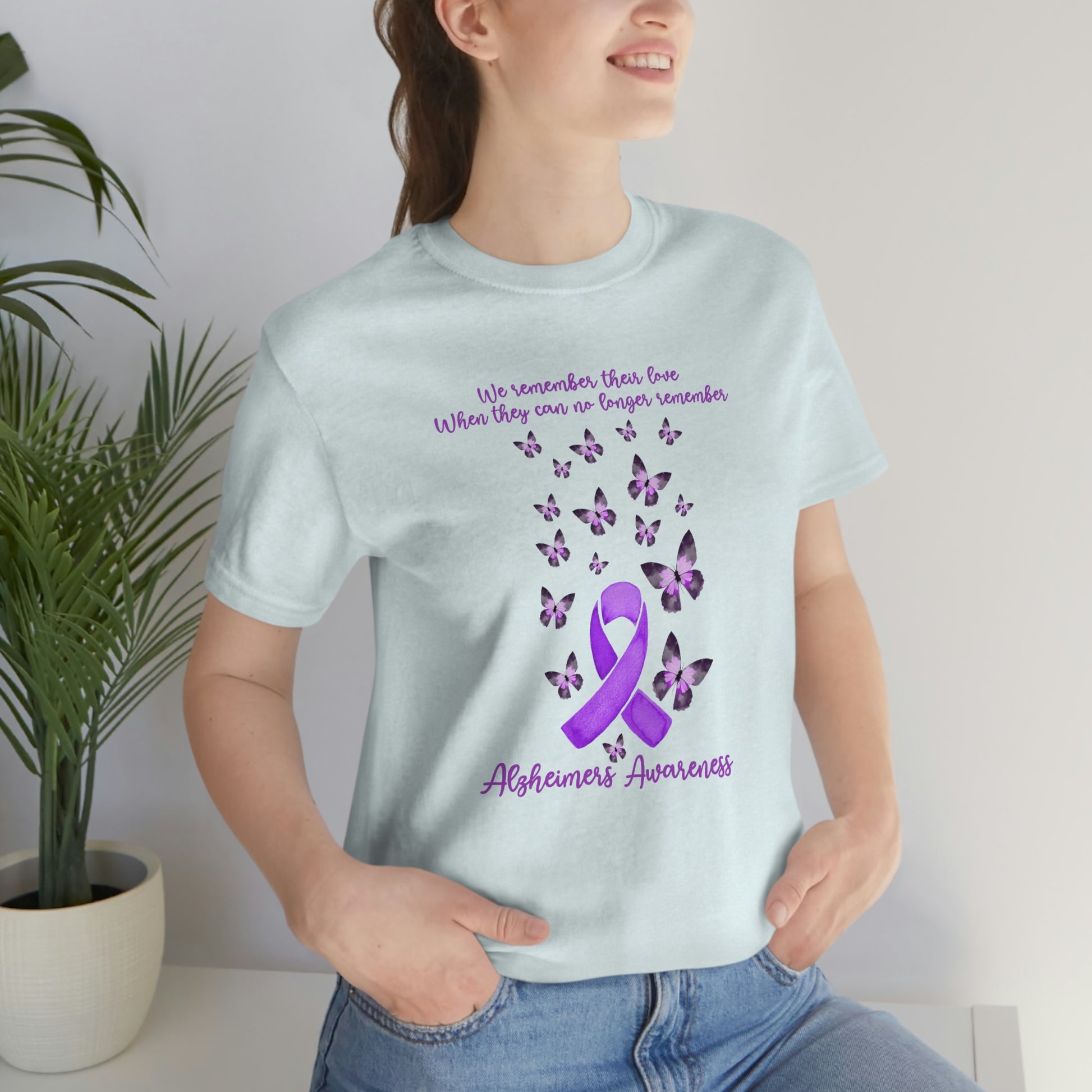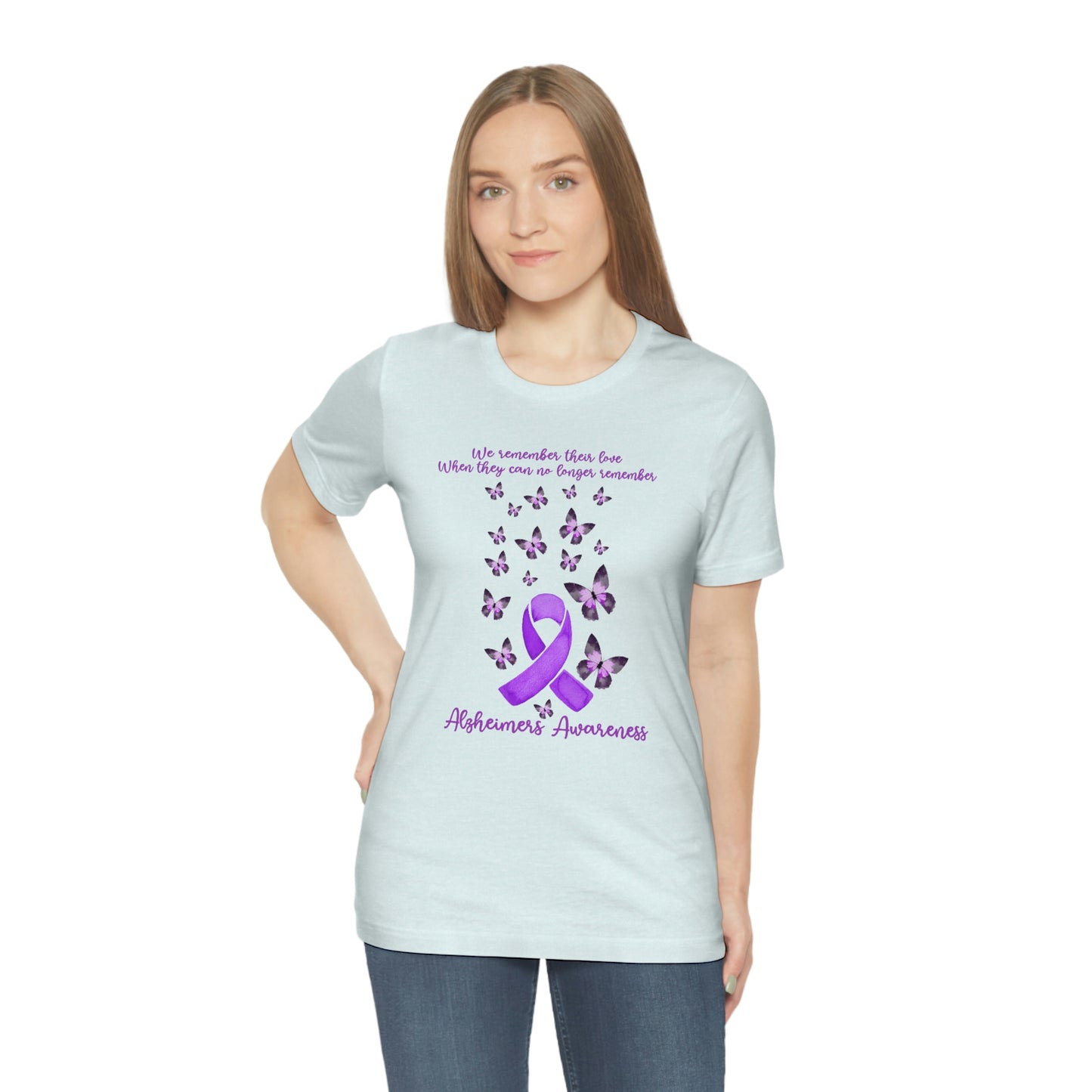 We Remember Their Love When They Can No Longer Remember Alzheimer's Awareness Print Unisex Jersey Short Sleeve Tee