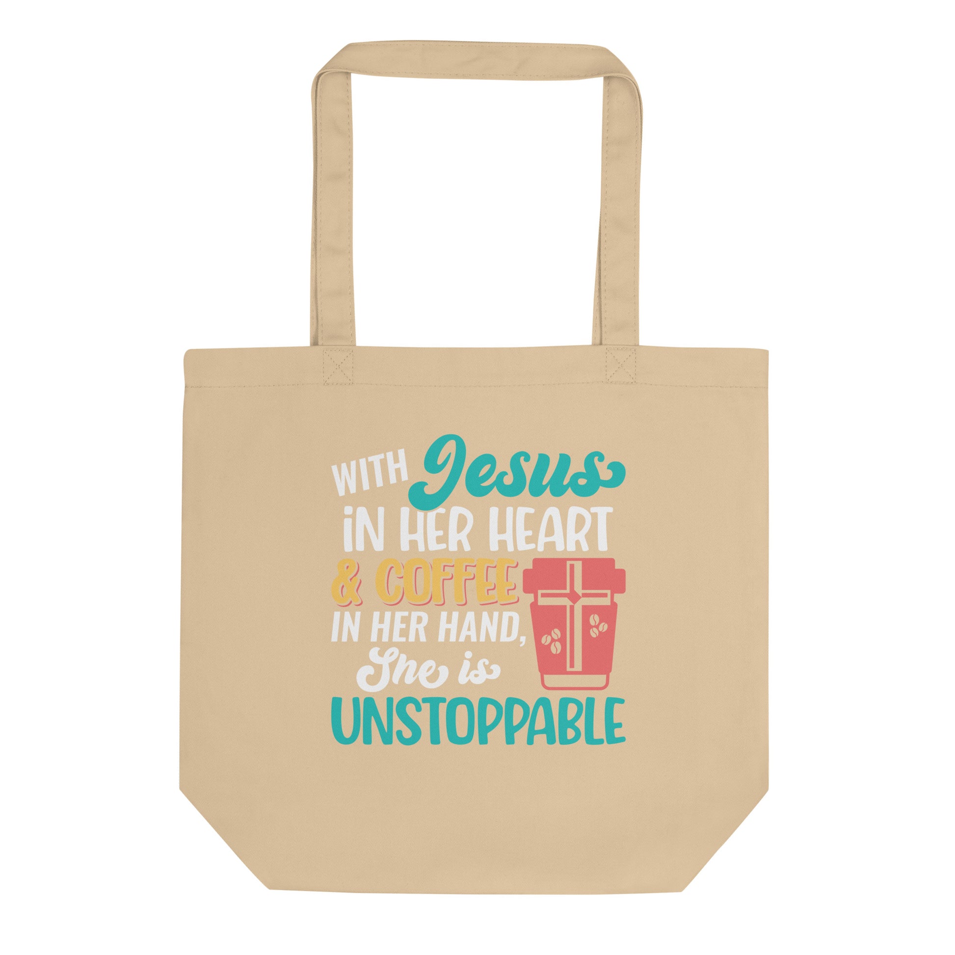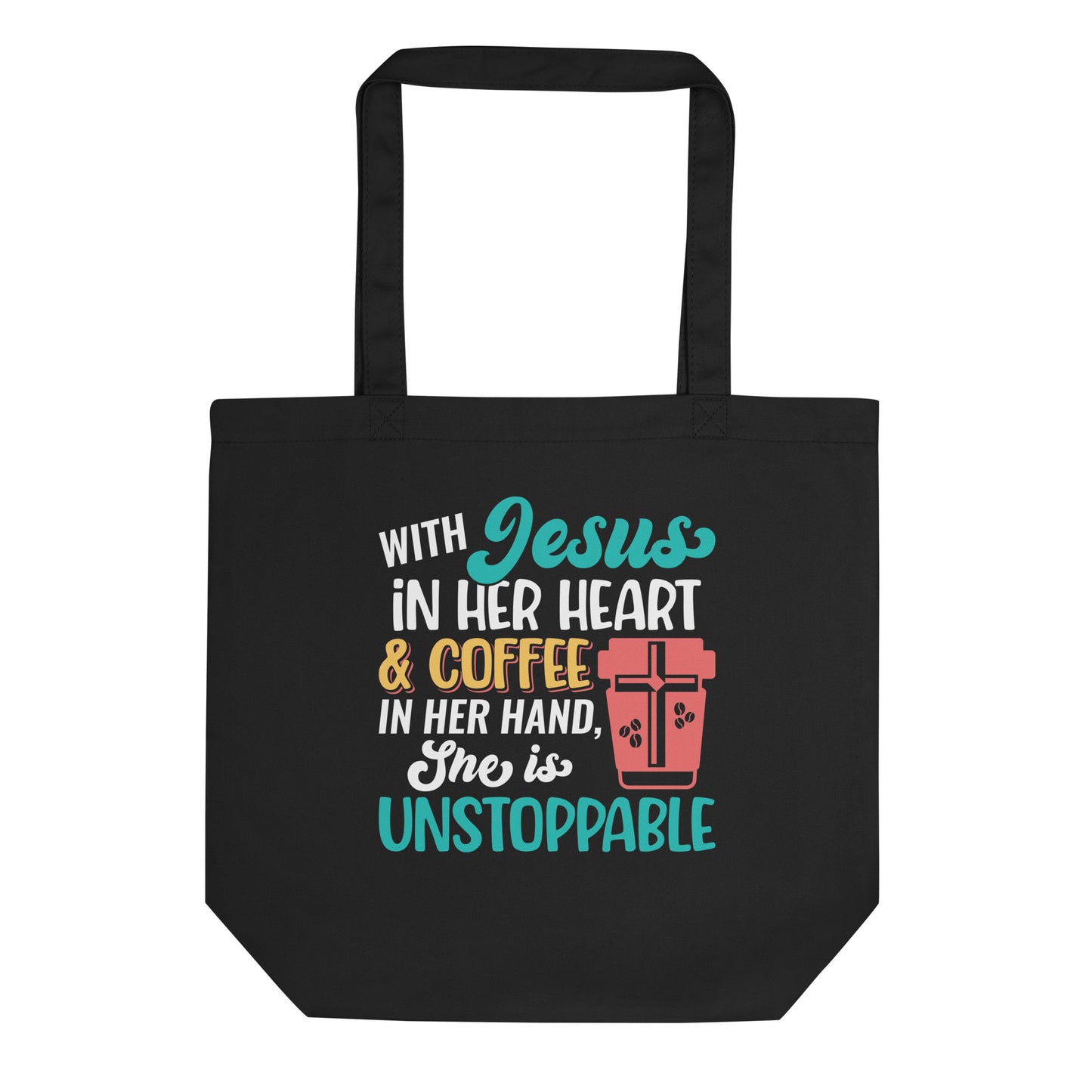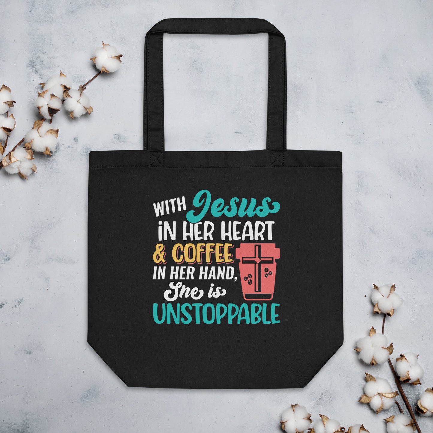 With Jesus in Her Heart & Coffee in Her Cup She is Unstoppable Eco Tote Bag