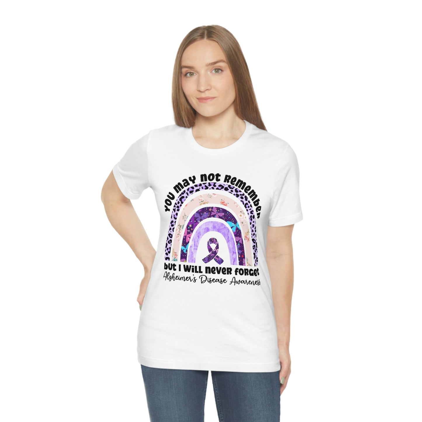 You May Not Remember But I Will Never Forget Alzheimer's Print Unisex Jersey Short Sleeve Tee